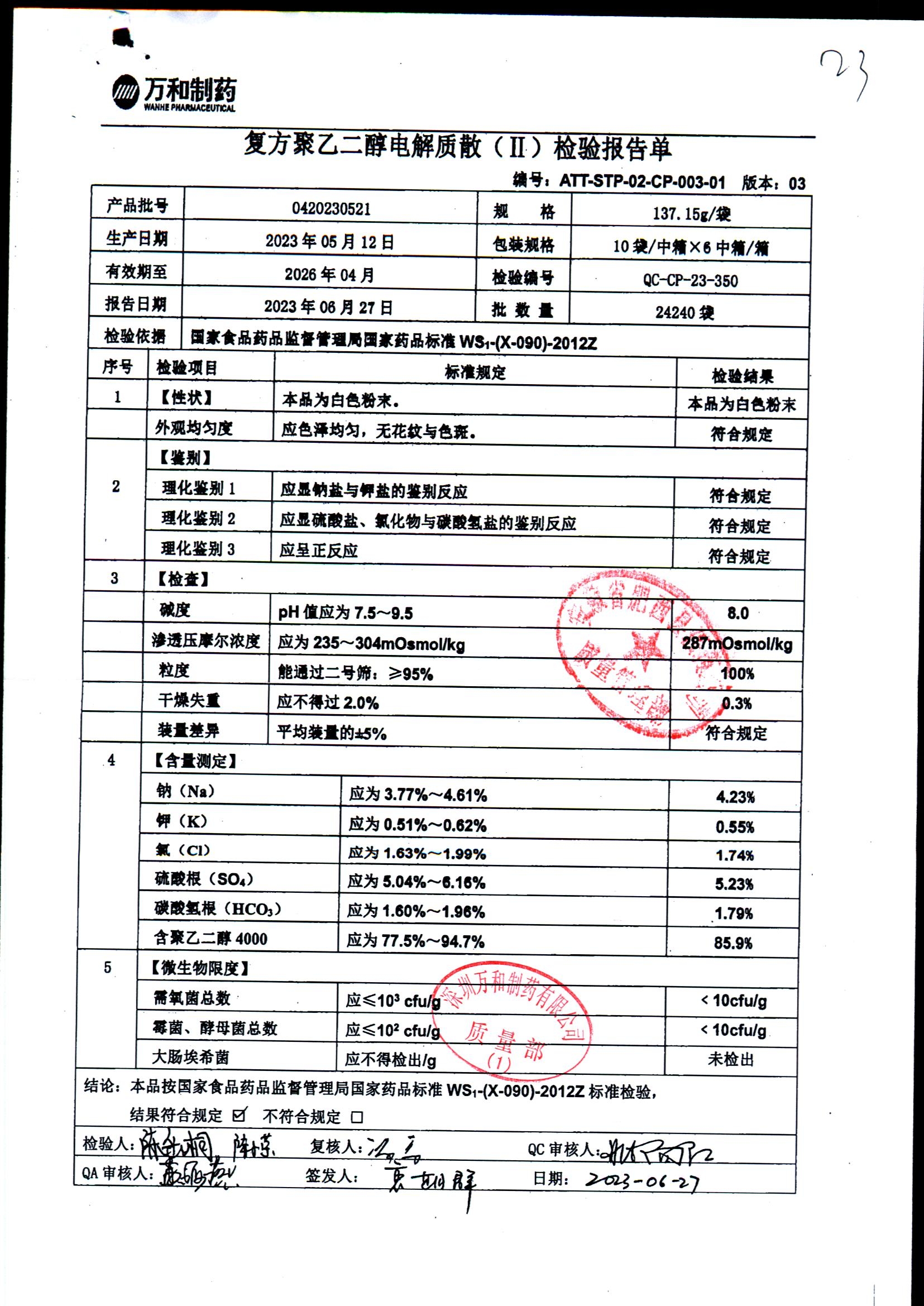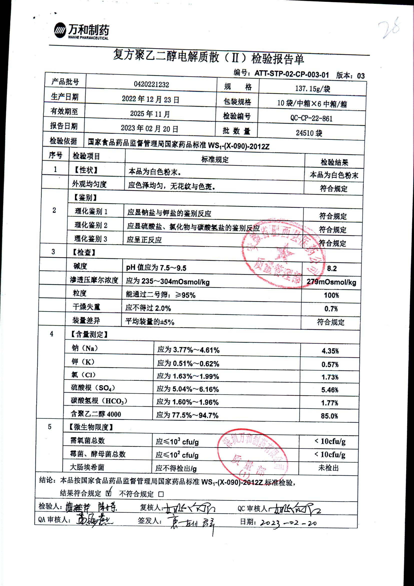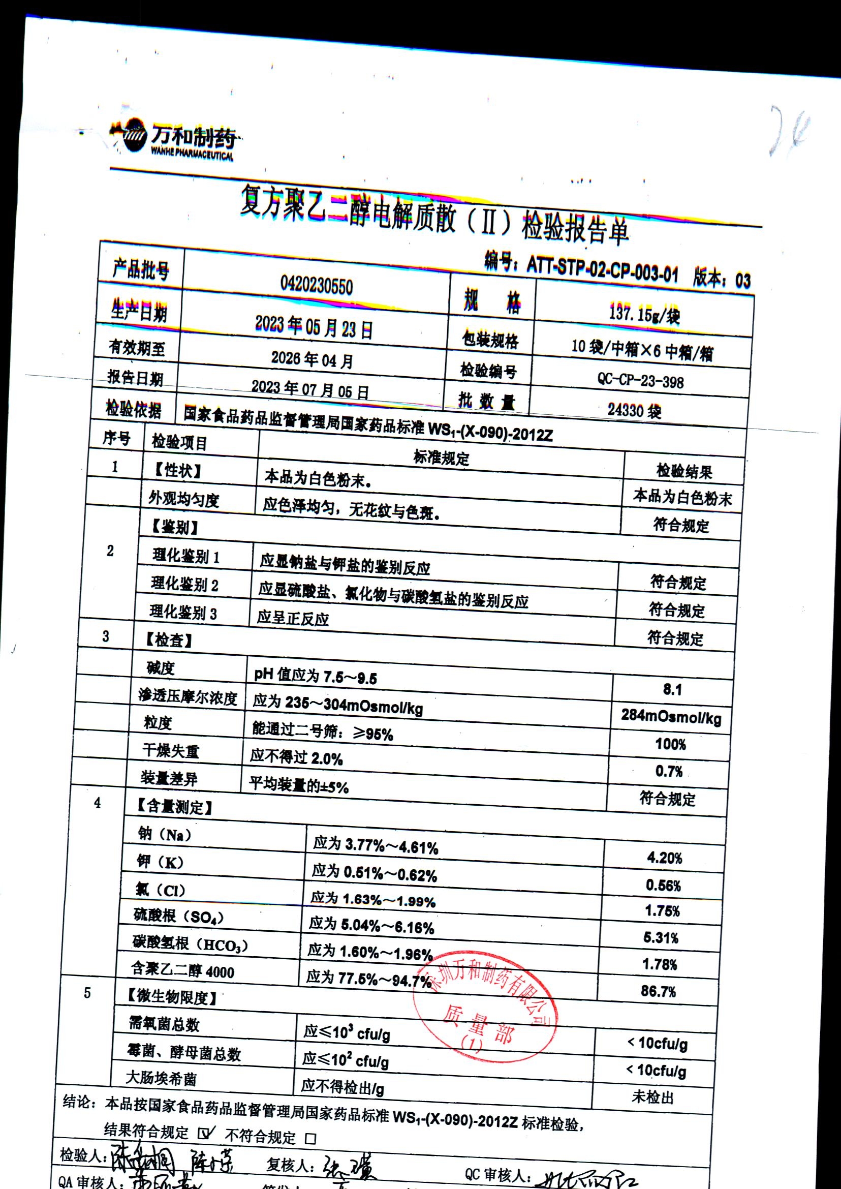 复方聚乙二醇电解质散(II) | 137.15g*10袋 | 0420230304 | 查看详情 |