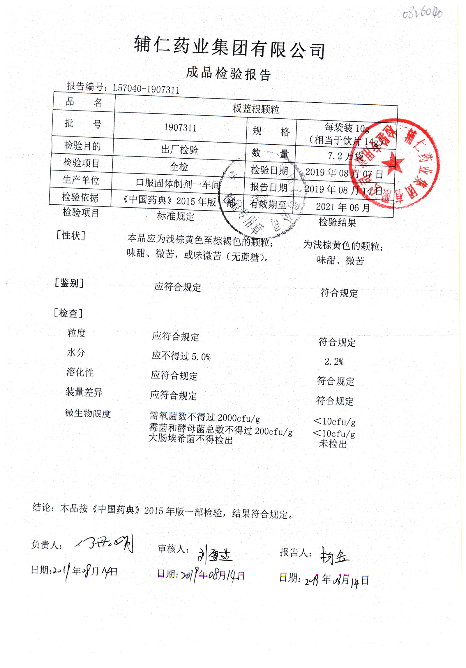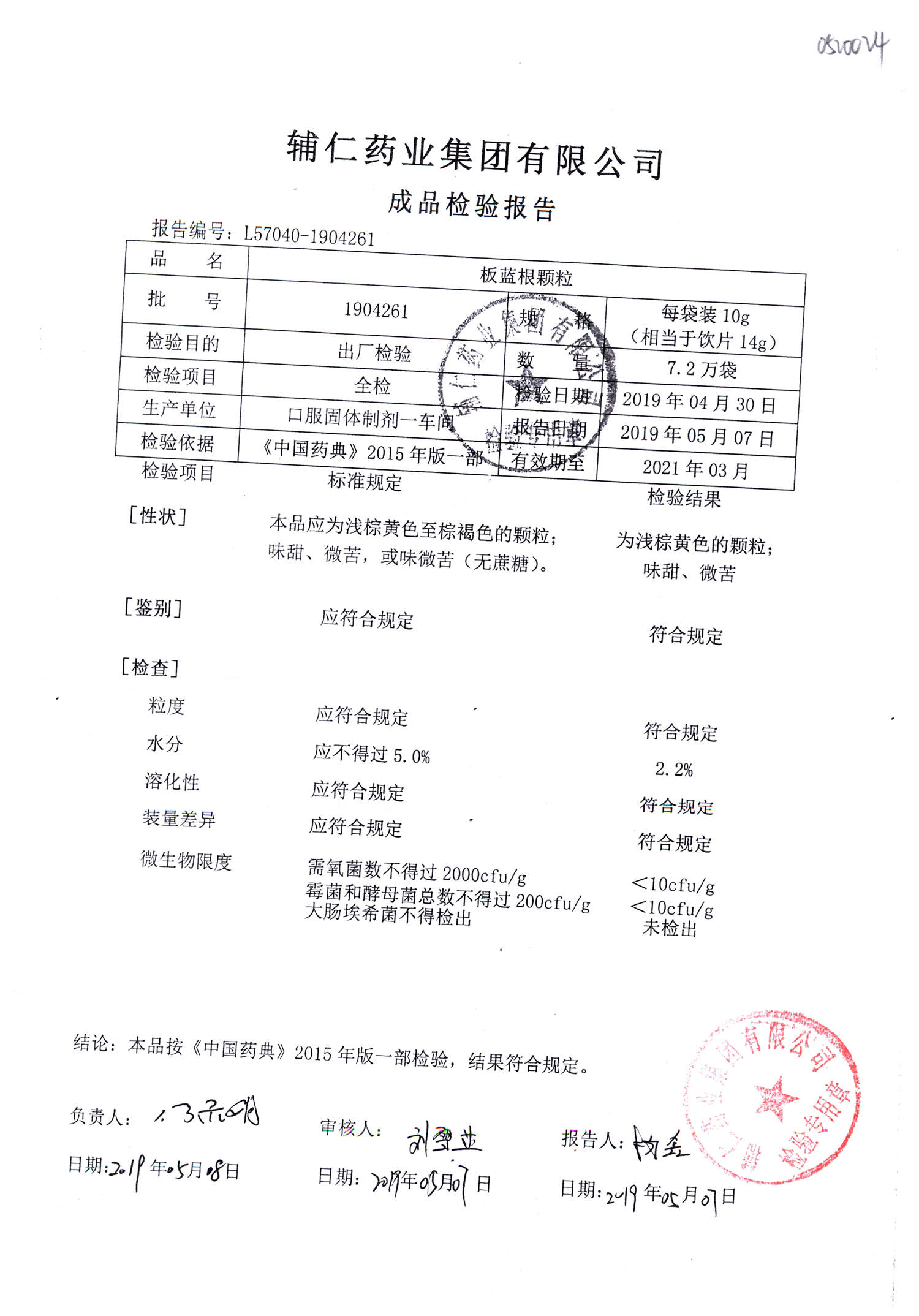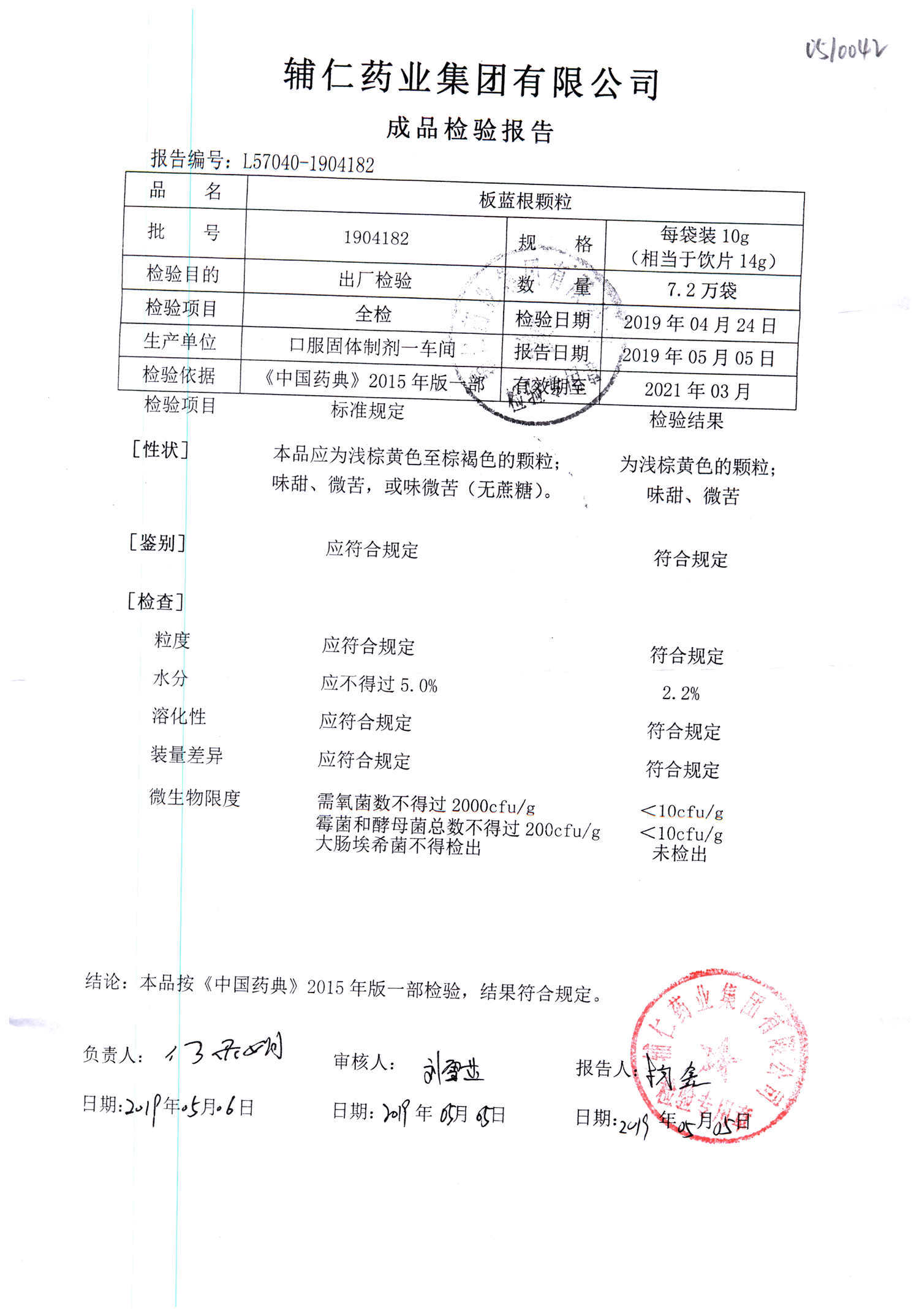 板蓝根颗粒 | 10g | 1904182 | 查看详情 |