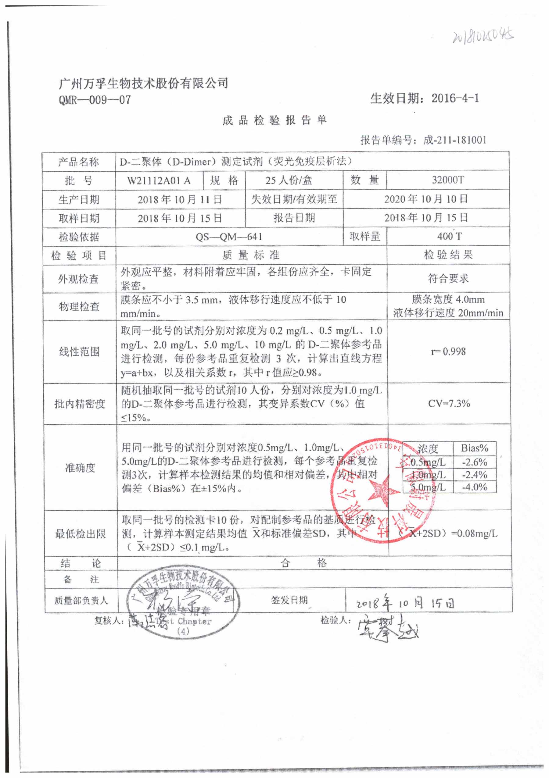 D-二聚体测定试剂 | 25人份/盒 | W21112B0AA | 查看详情 |