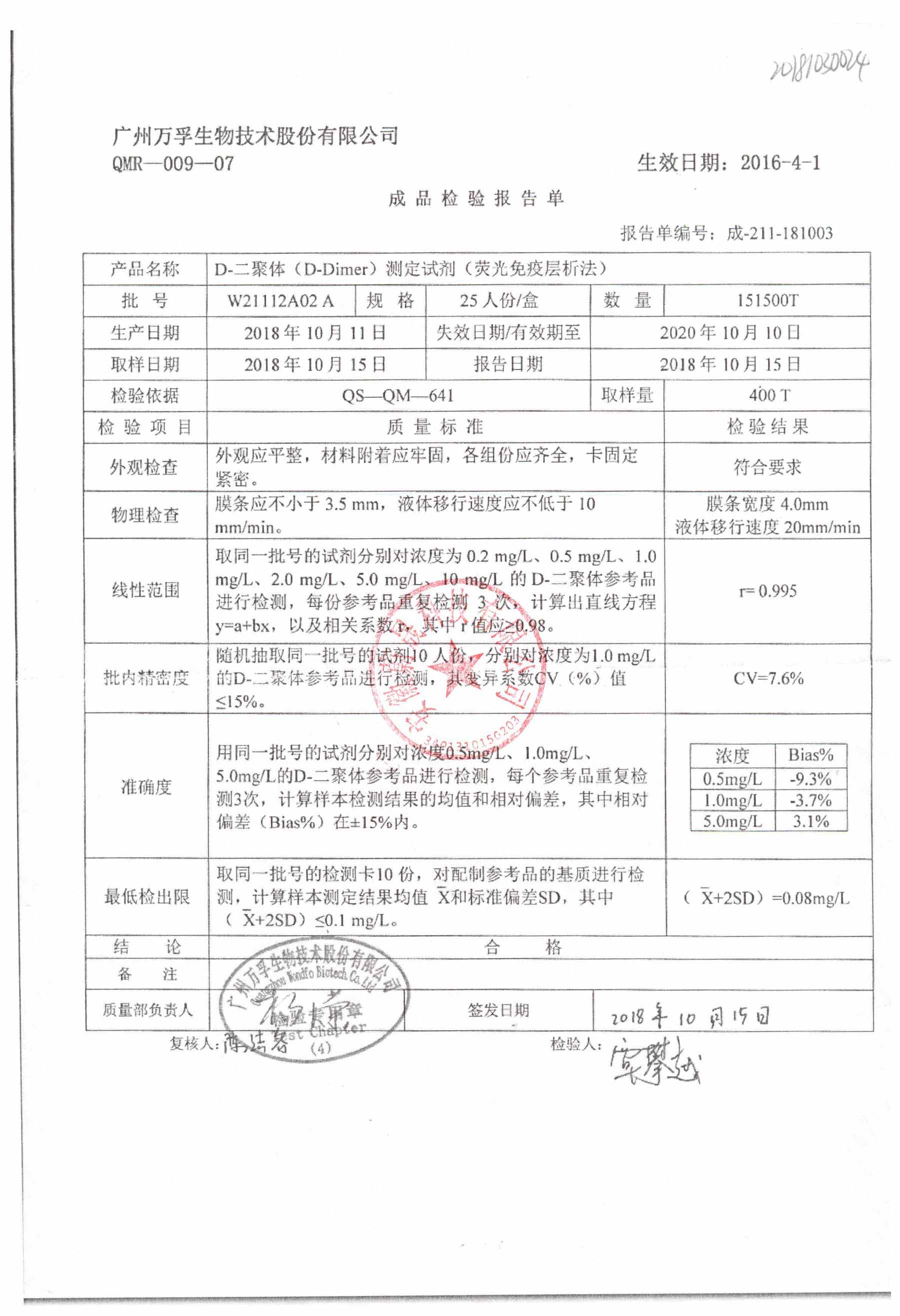 D-二聚体测定试剂 | 25人份/盒 | W21112A02 A | 查看详情 |