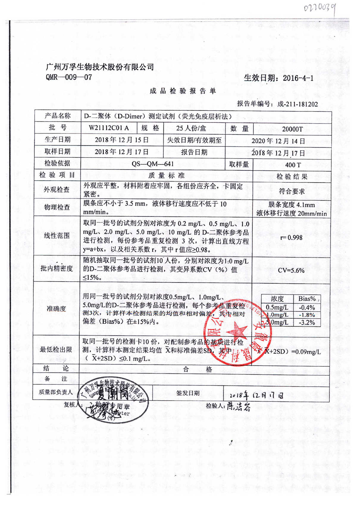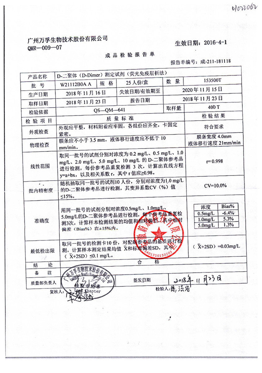 D-二聚体测定试剂 | 25人份/盒 | W21112B06A | 查看详情 |