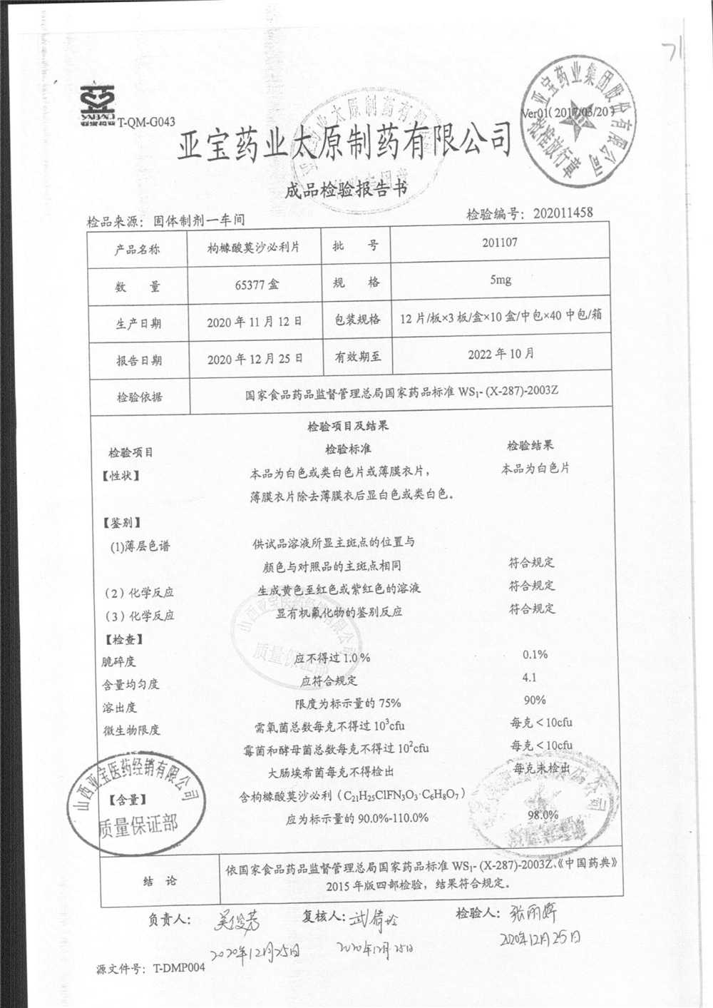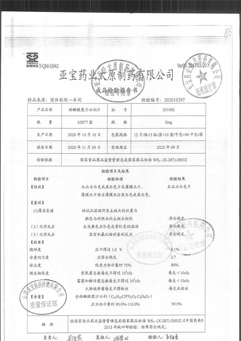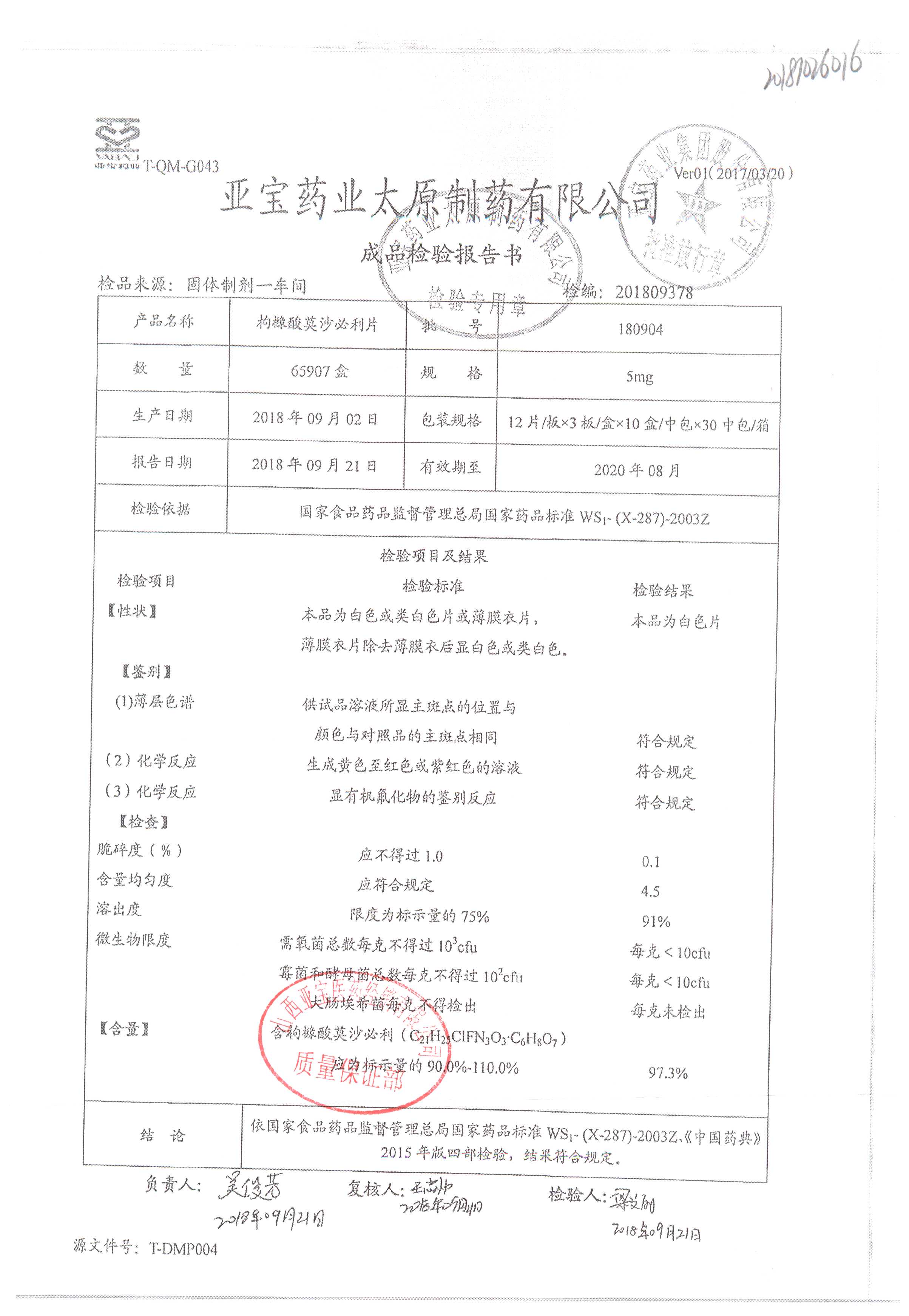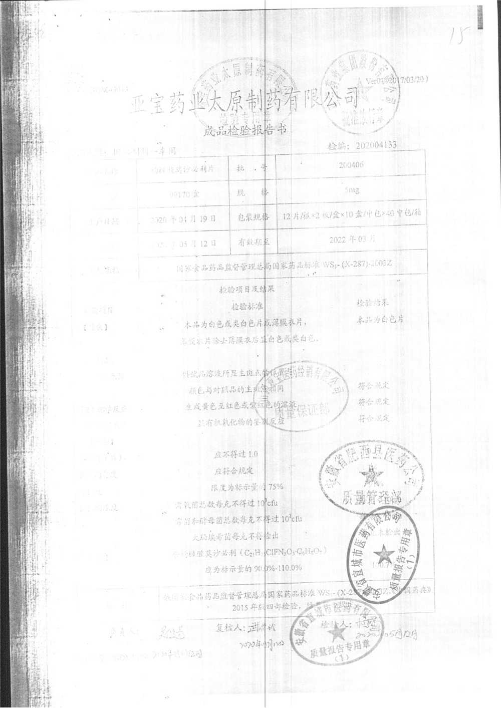 名称 | 规格 | 批号 | 药检报告 |