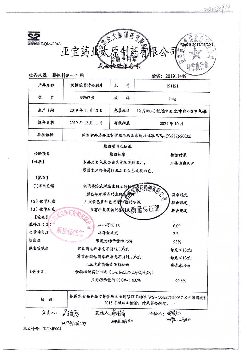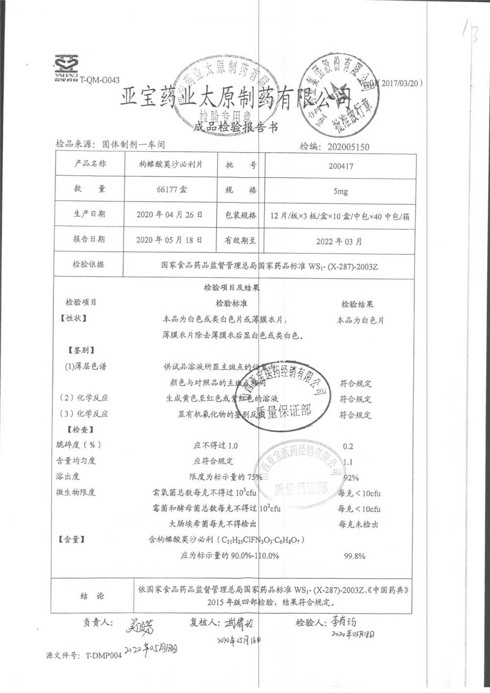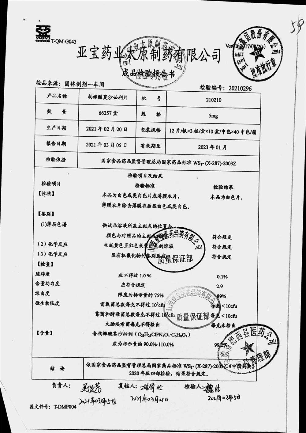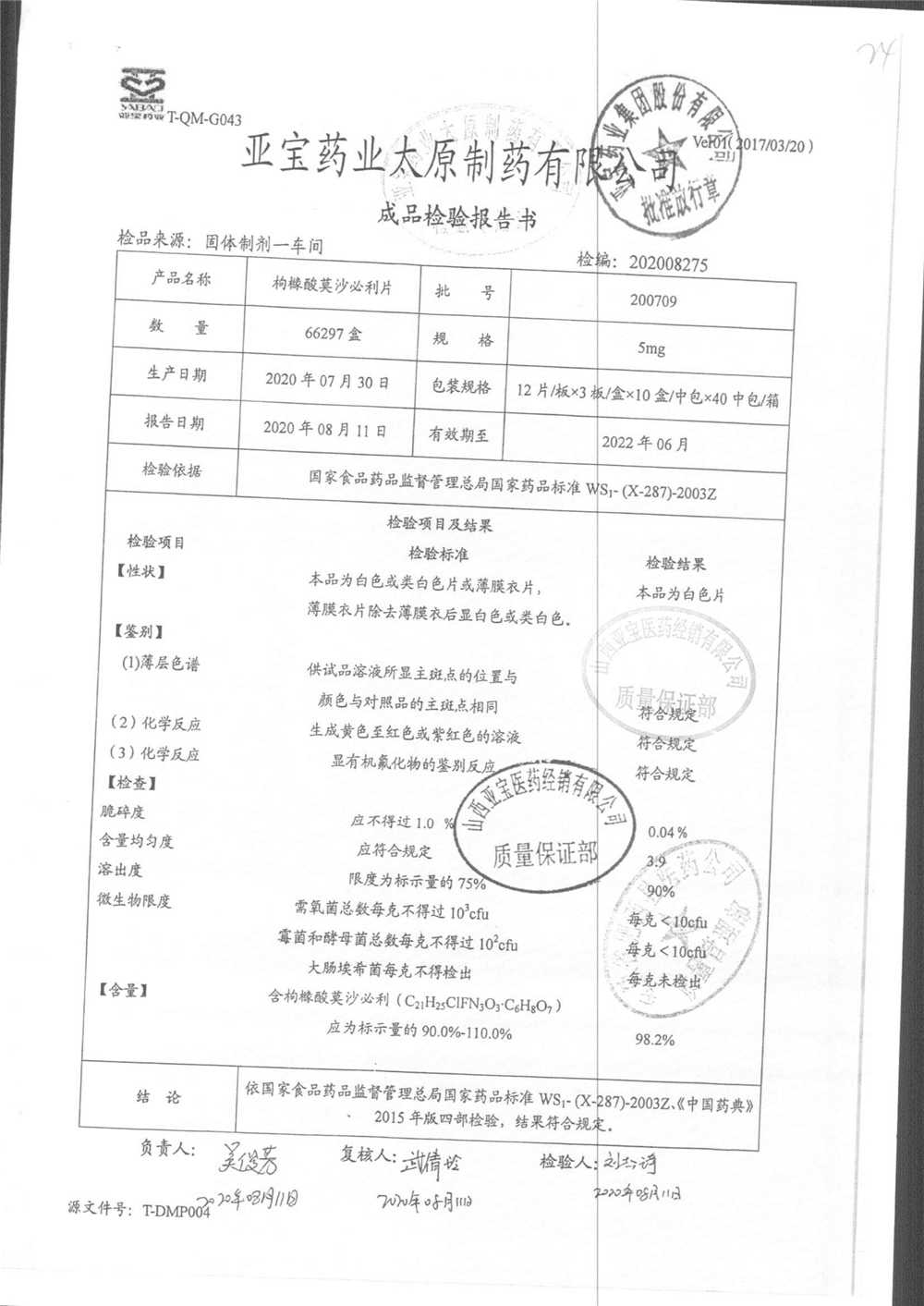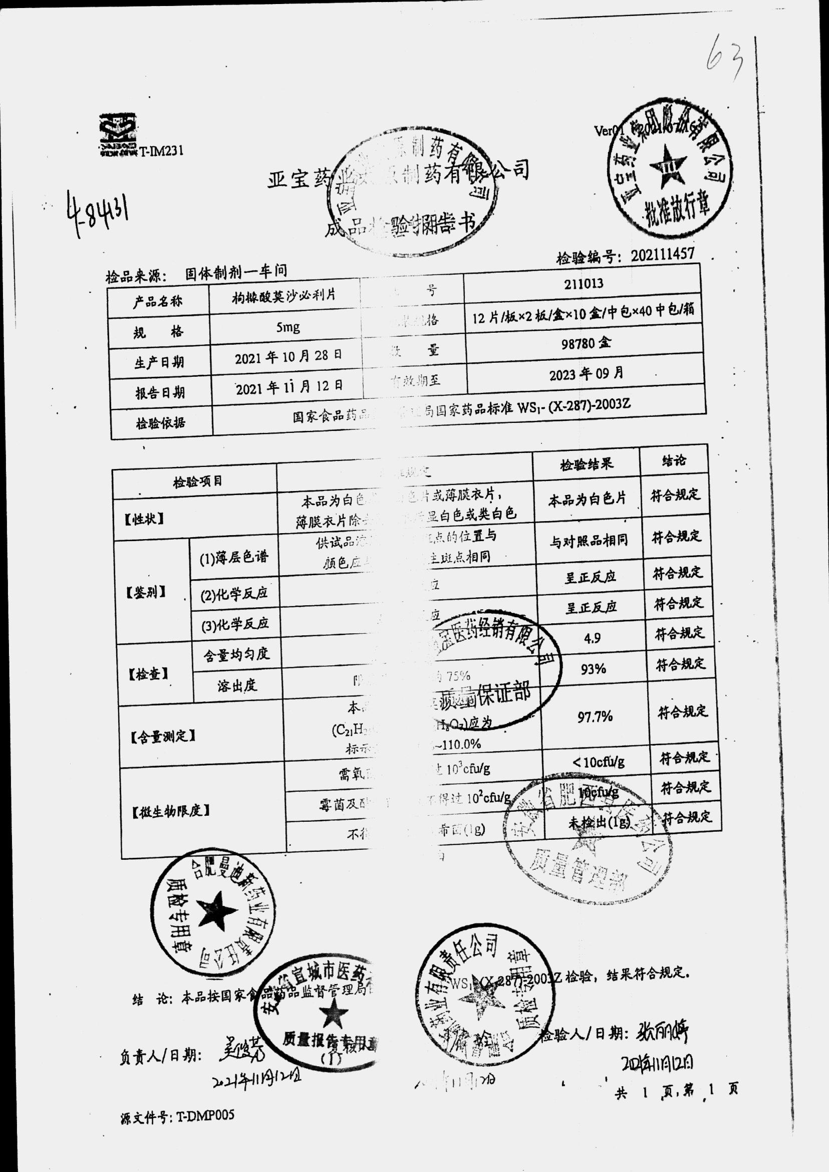 名称 | 规格 | 批号 | 药检报告 |