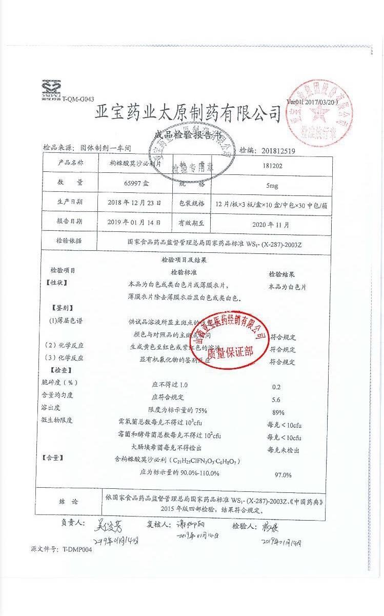 枸橼酸莫沙必利片 | 5mg*36片 | 190718 | 查看详情 |