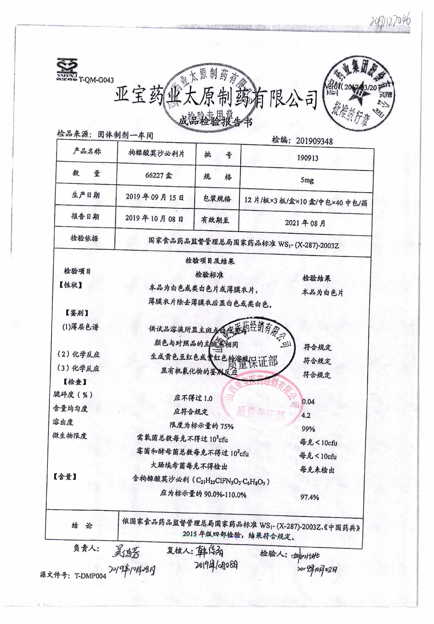 枸橼酸莫沙必利片 | 5mg*36片 | 190913 | 查看详情 |