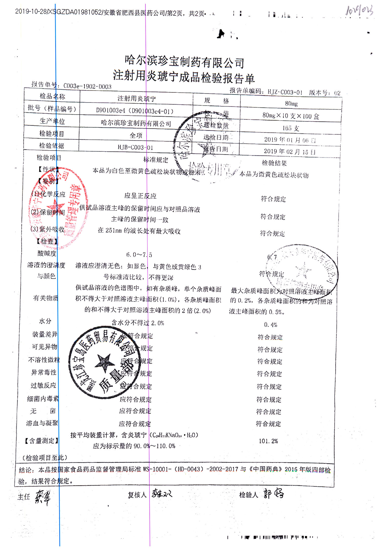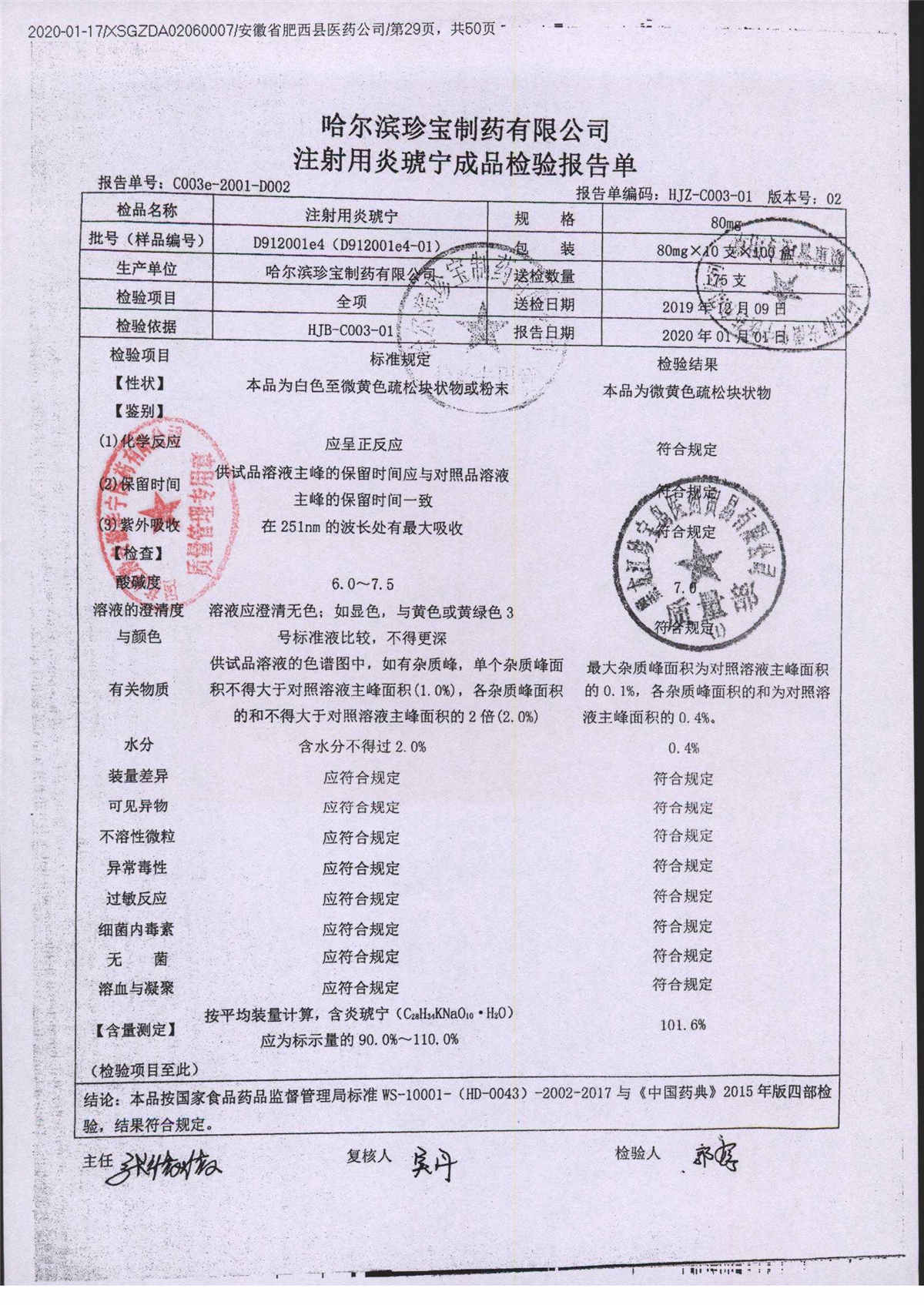 注射用炎琥宁 | 80mg | E811024e4 | 查看详情 |