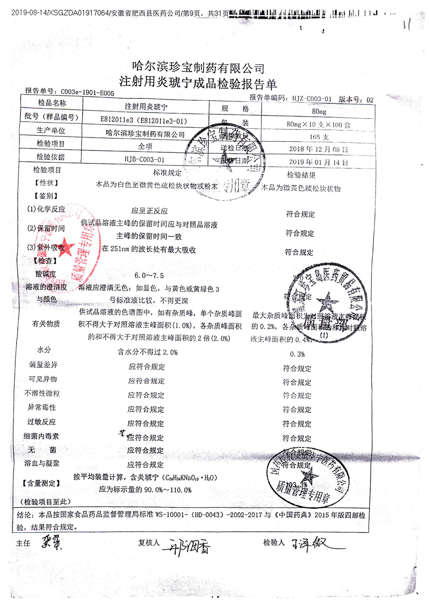 注射用炎琥宁 | 80mg | E812011e3 | 查看详情 |