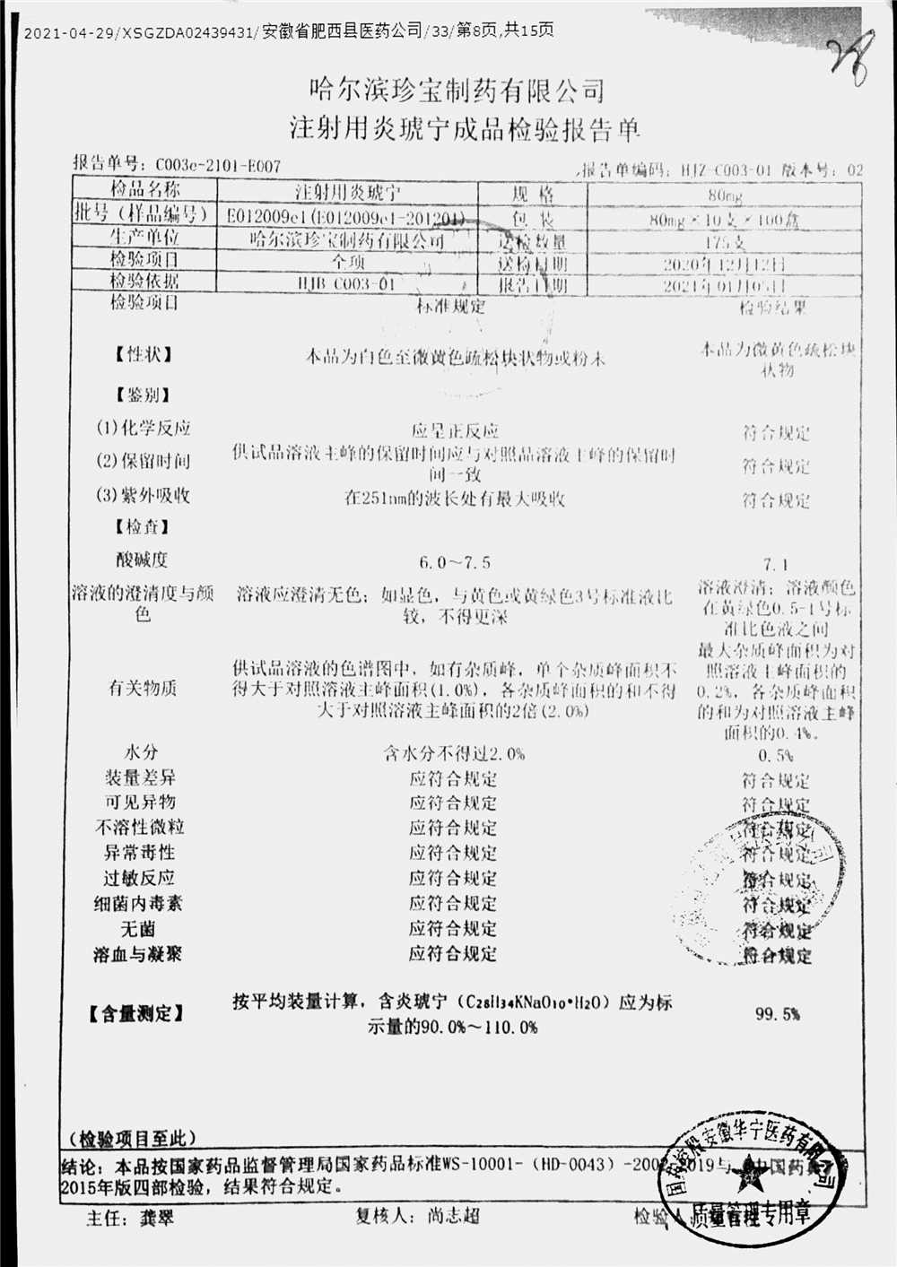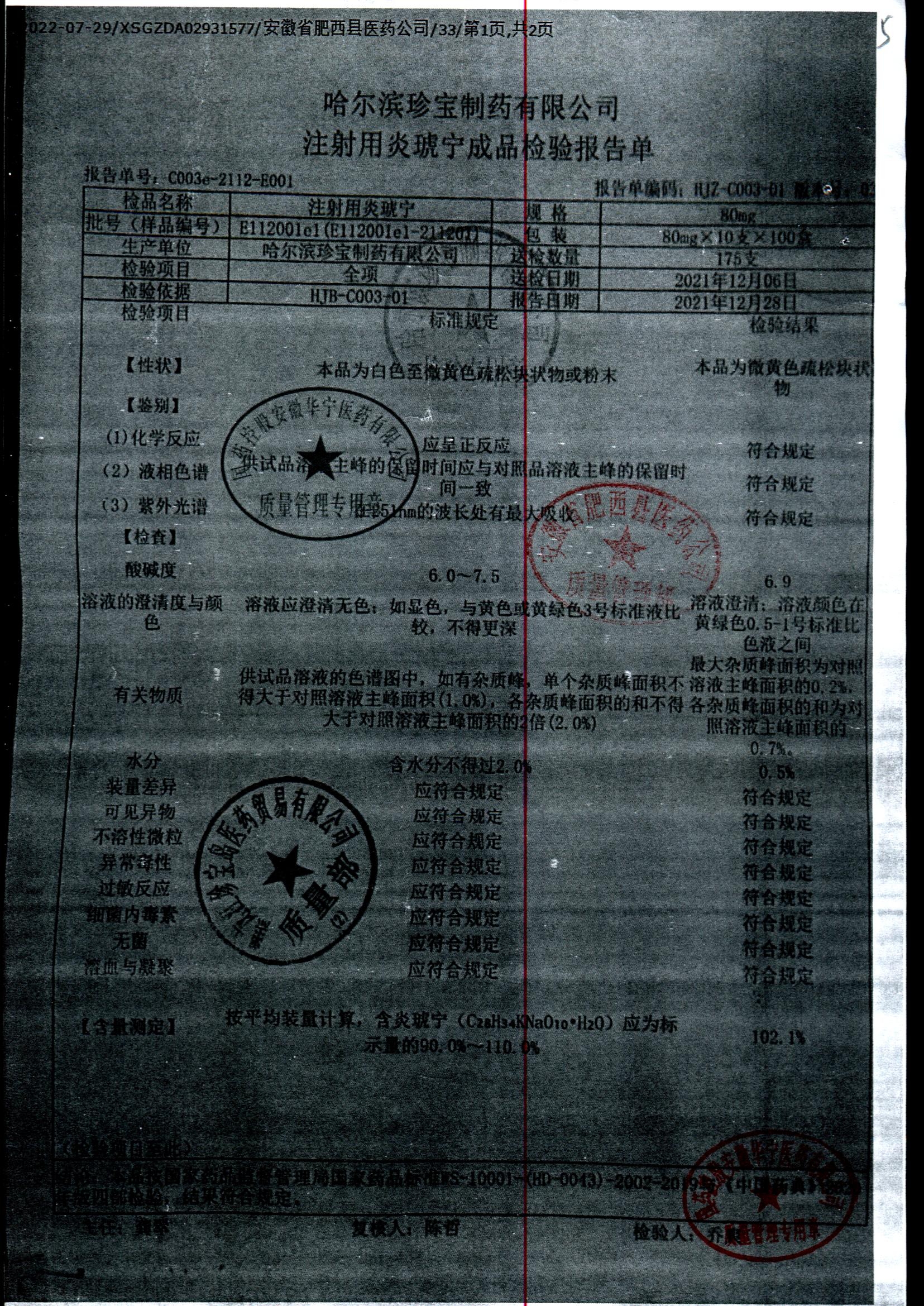注射用炎琥宁 | 80mg | E112001e1(E112001e1-211201) | 查看详情 |