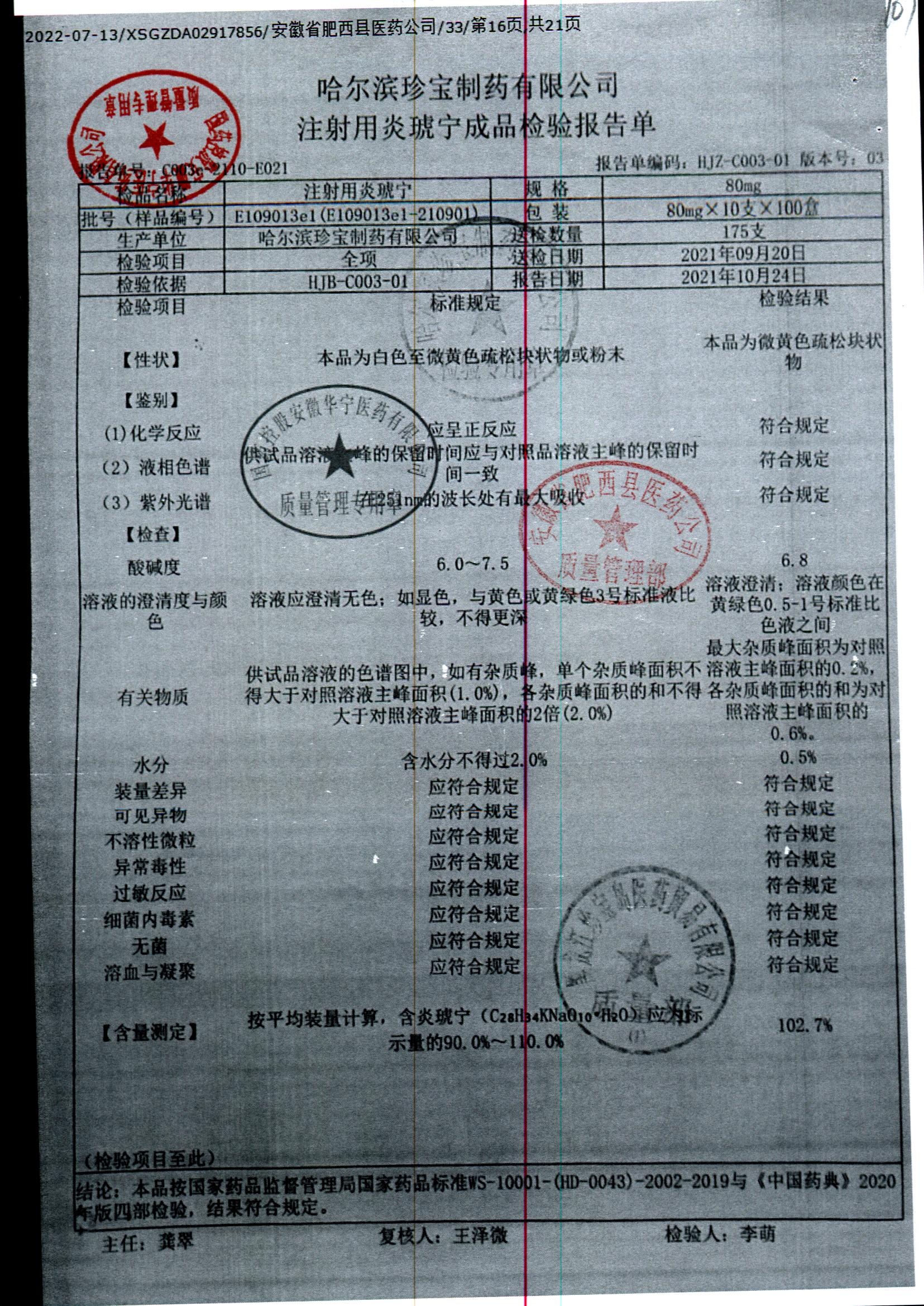 注射用炎琥宁 | 80mg | F211009E1 | 查看详情 |