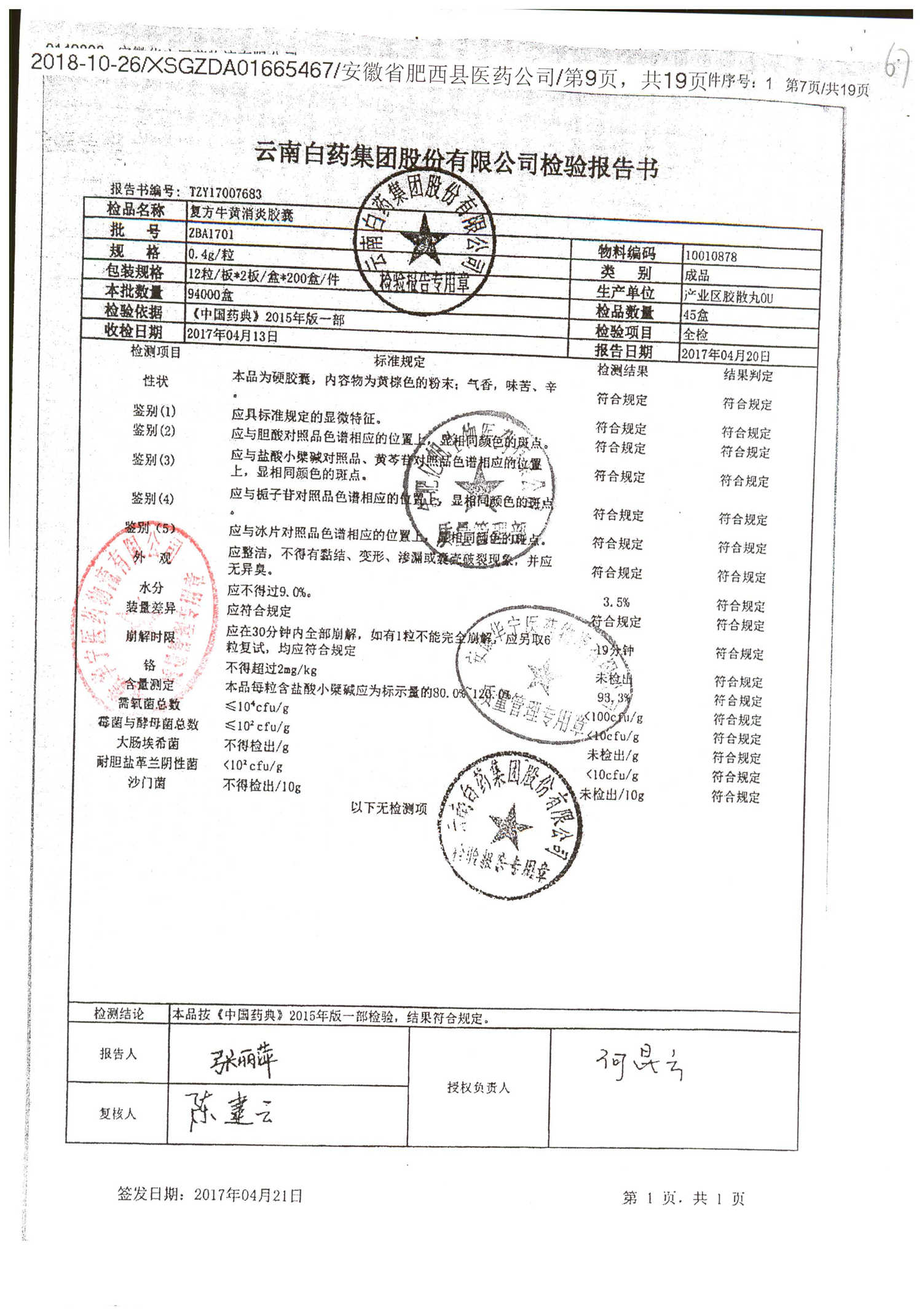药检报告