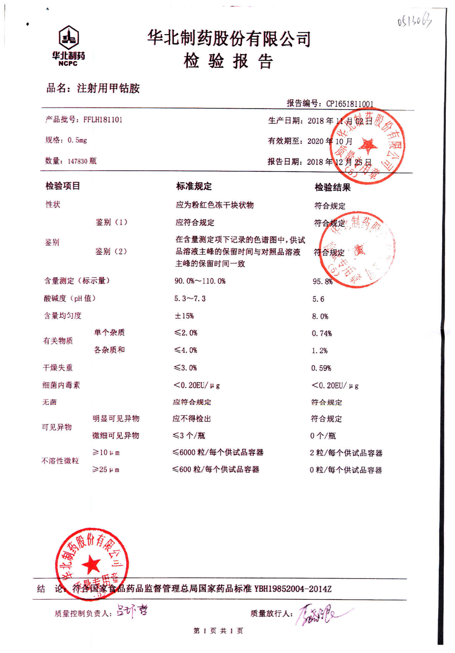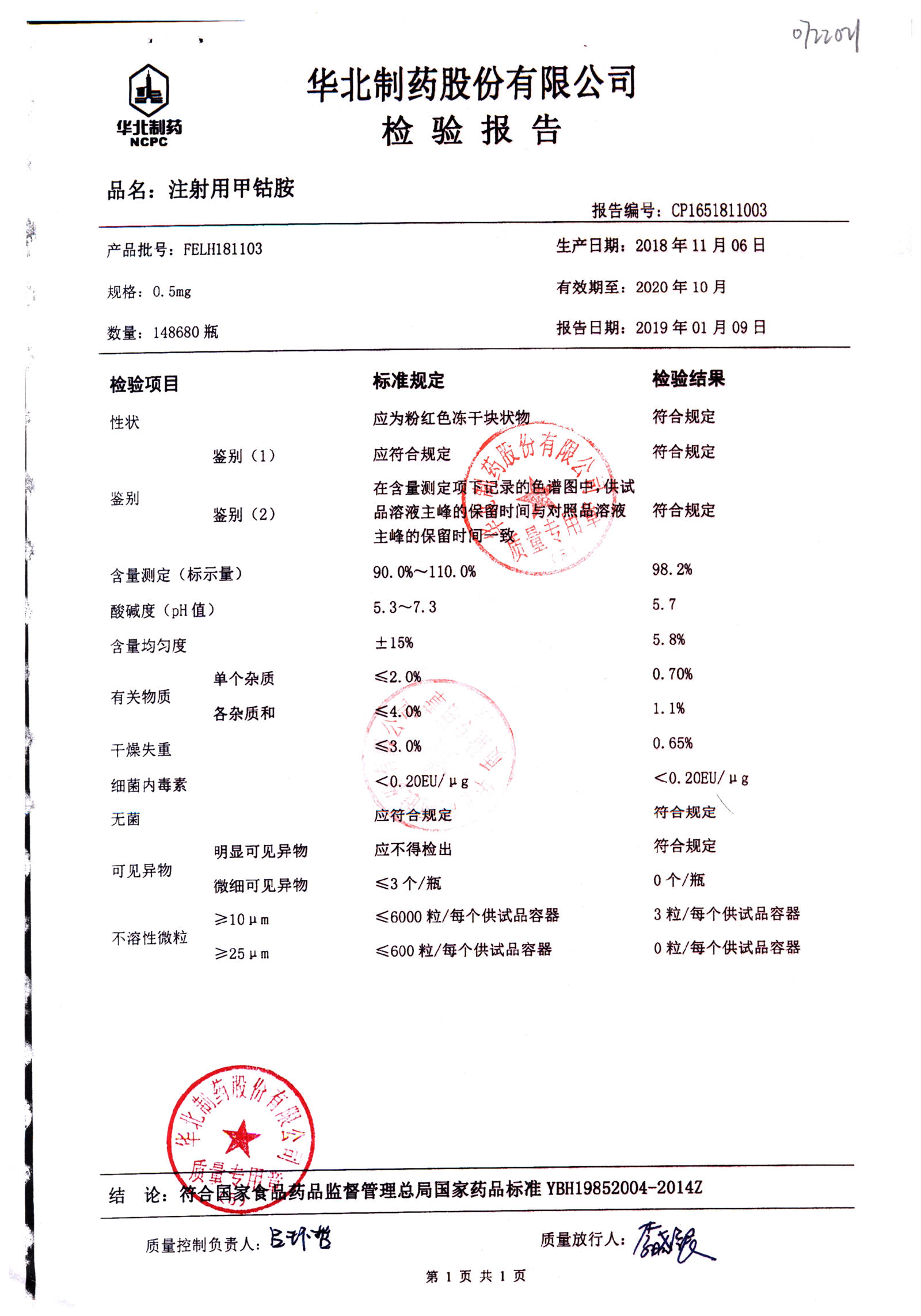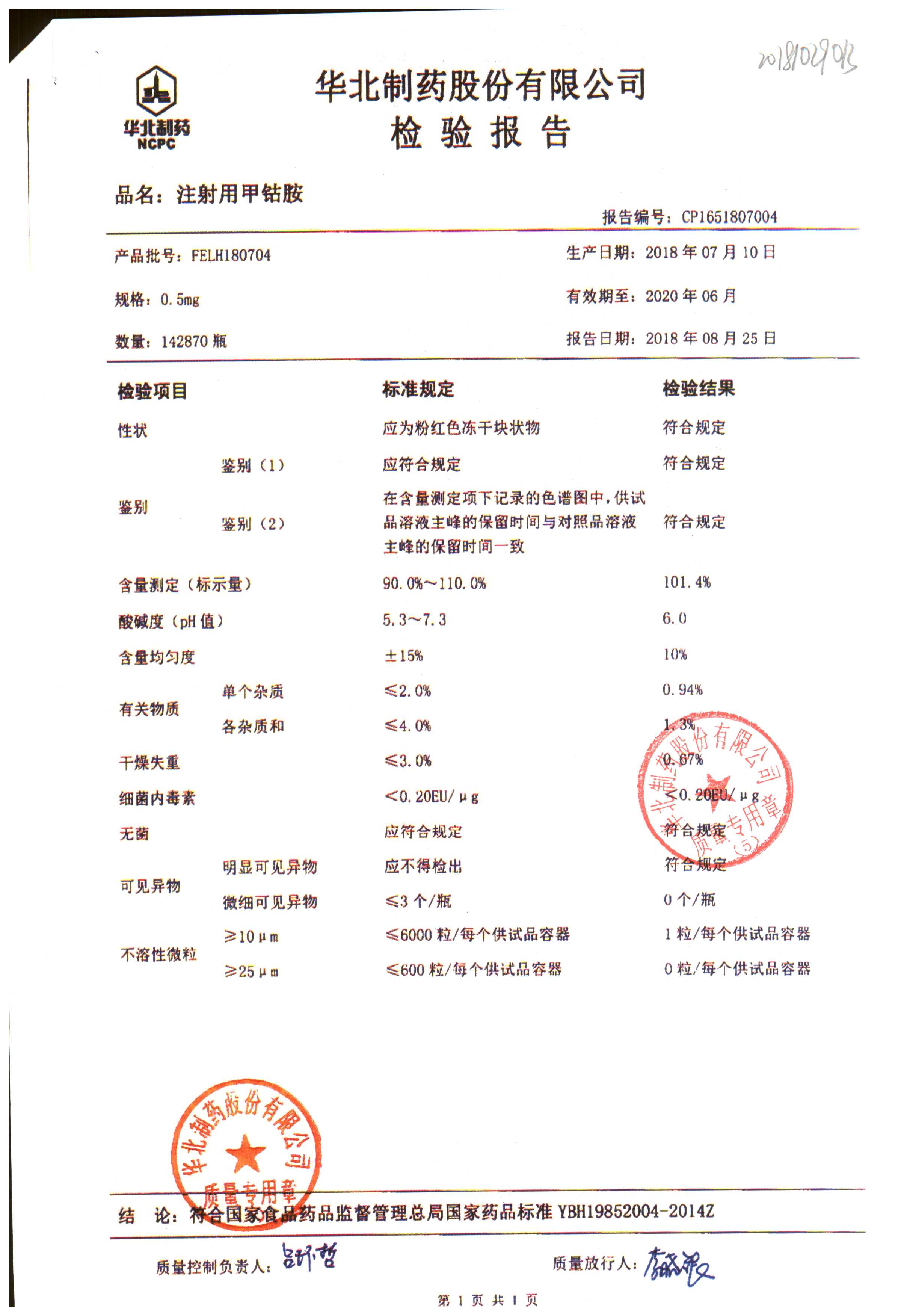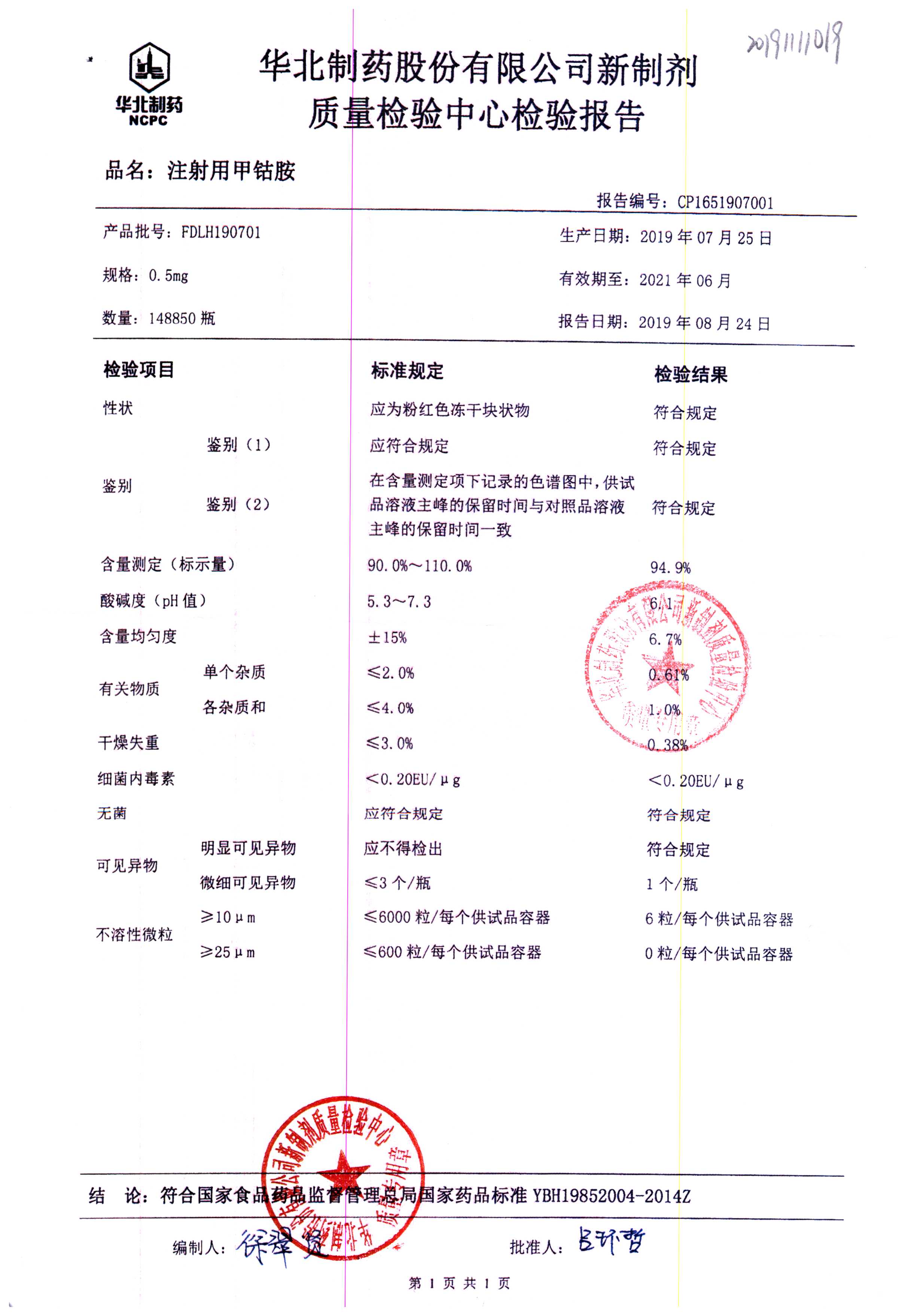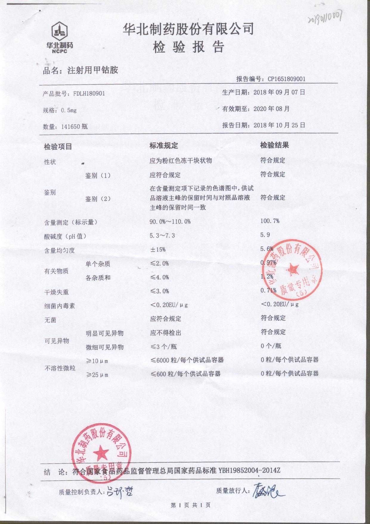 注射用甲钴胺 | 0.5mg | FDLH180901 | 查看详情 |