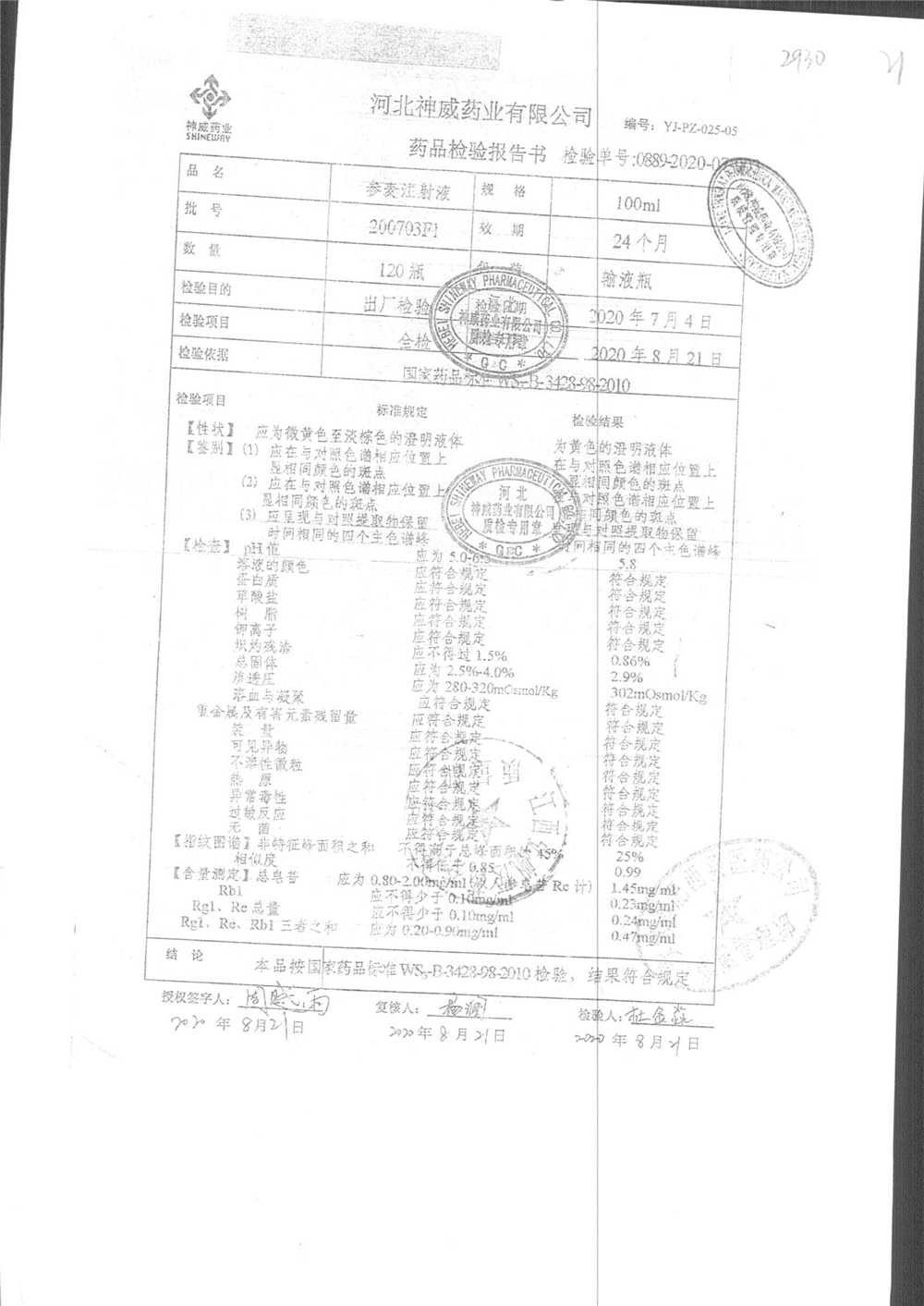 参麦注射液 | 100ml | 200706F1 | 查看详情 |
