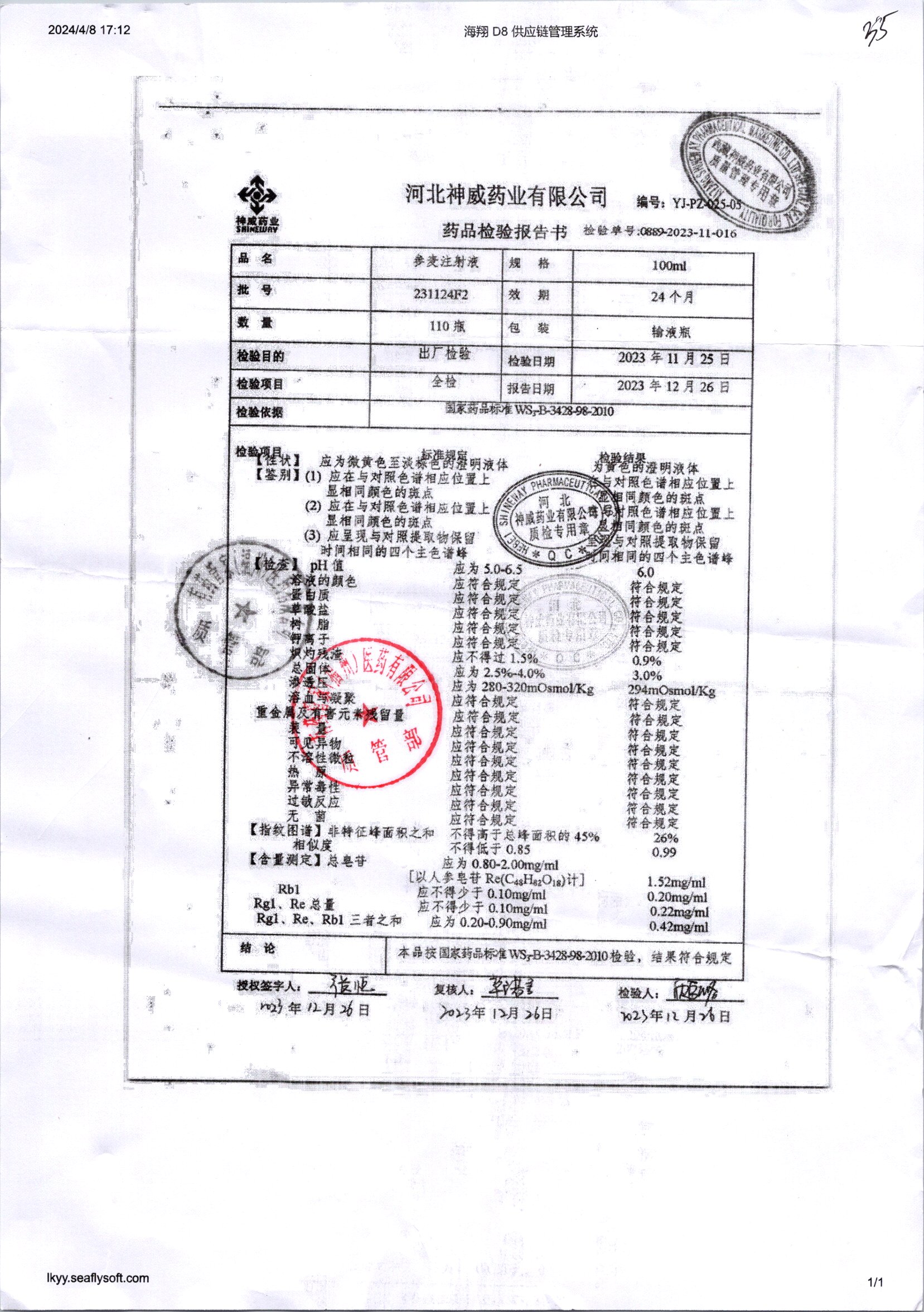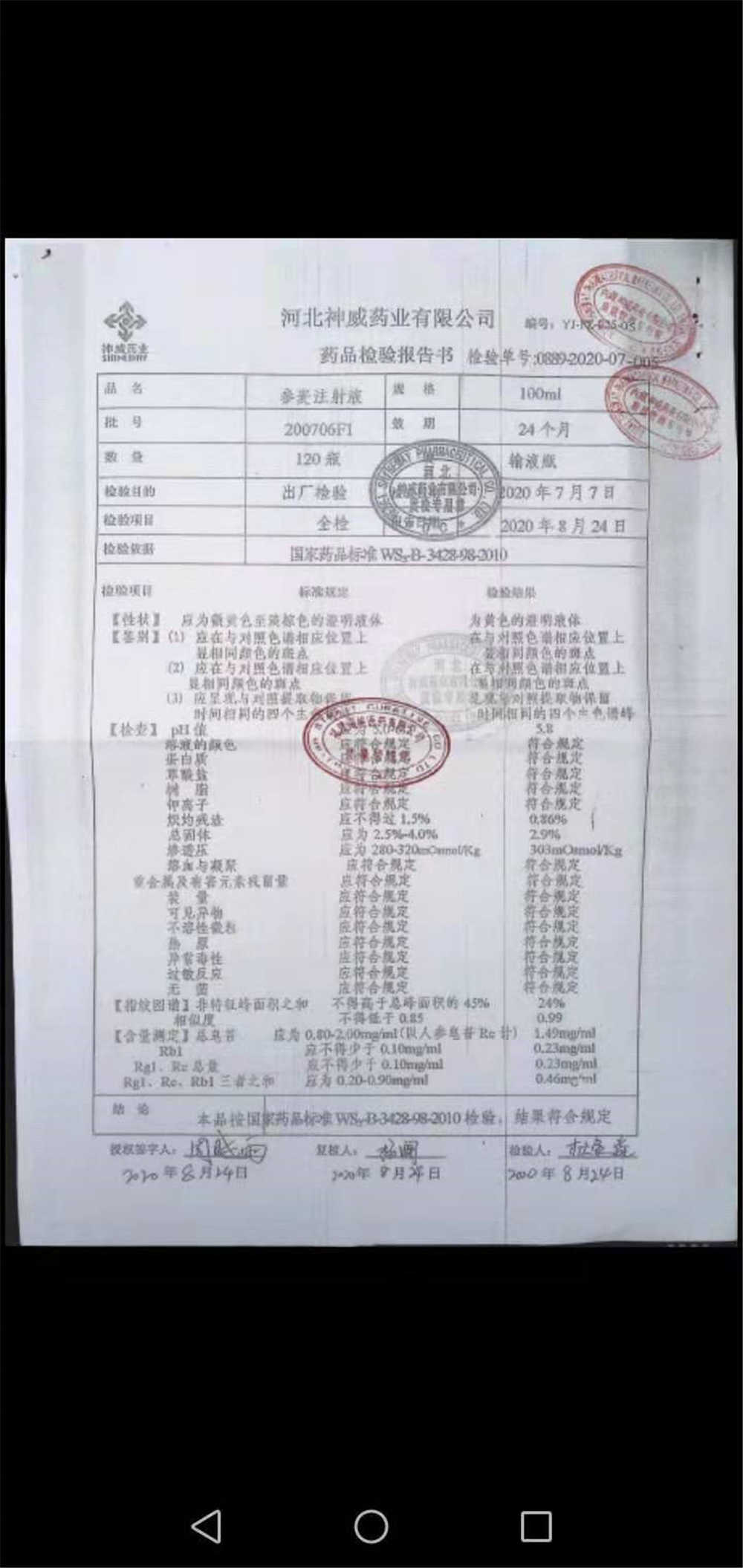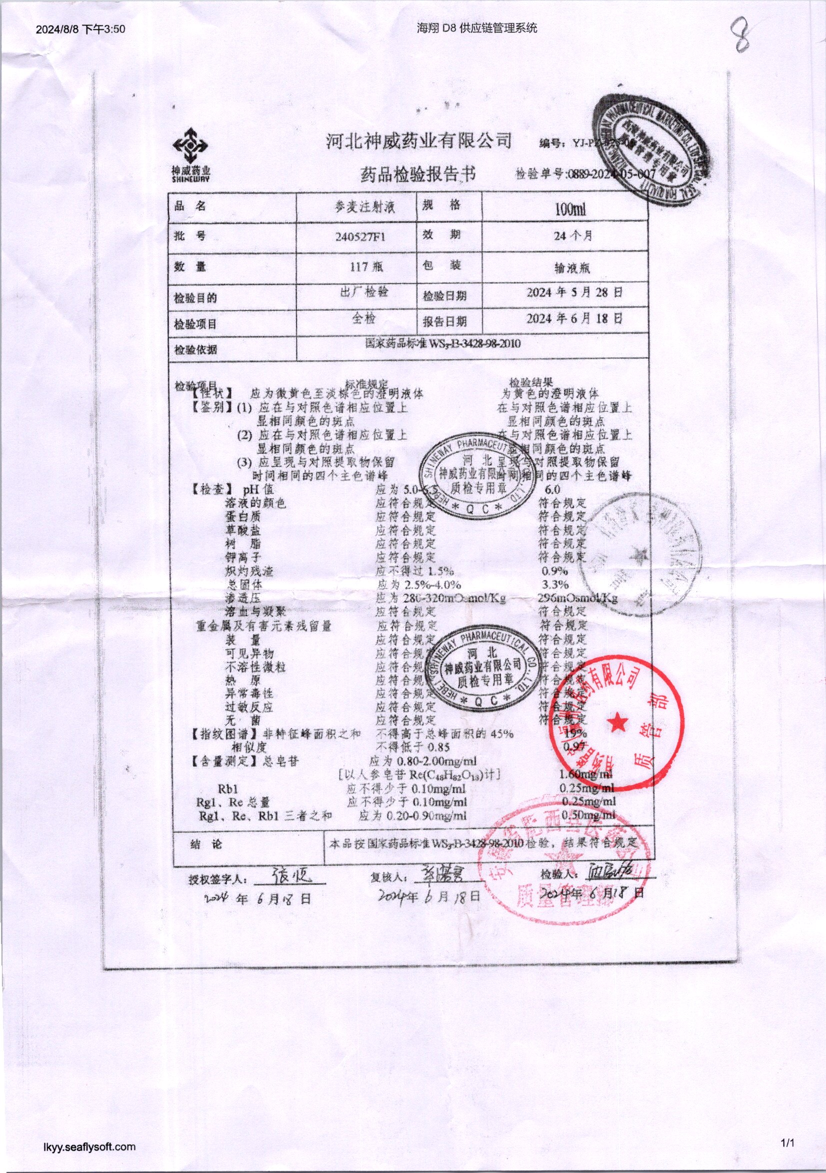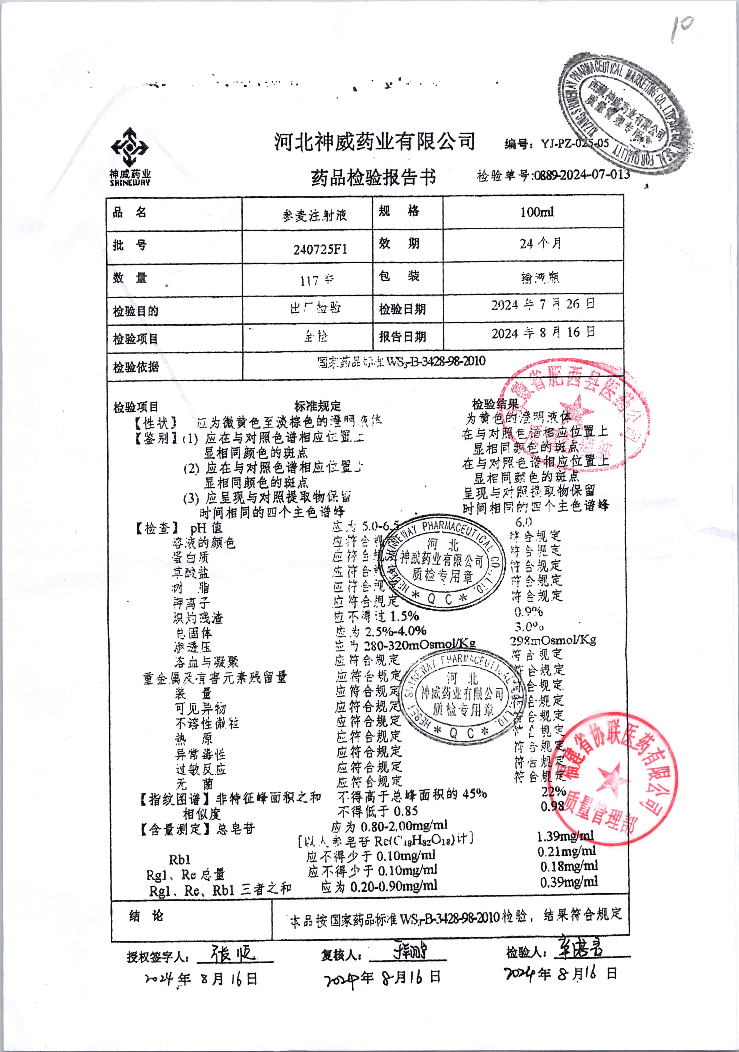 参麦注射液 | 100ml | 240725F1 | 查看详情 |