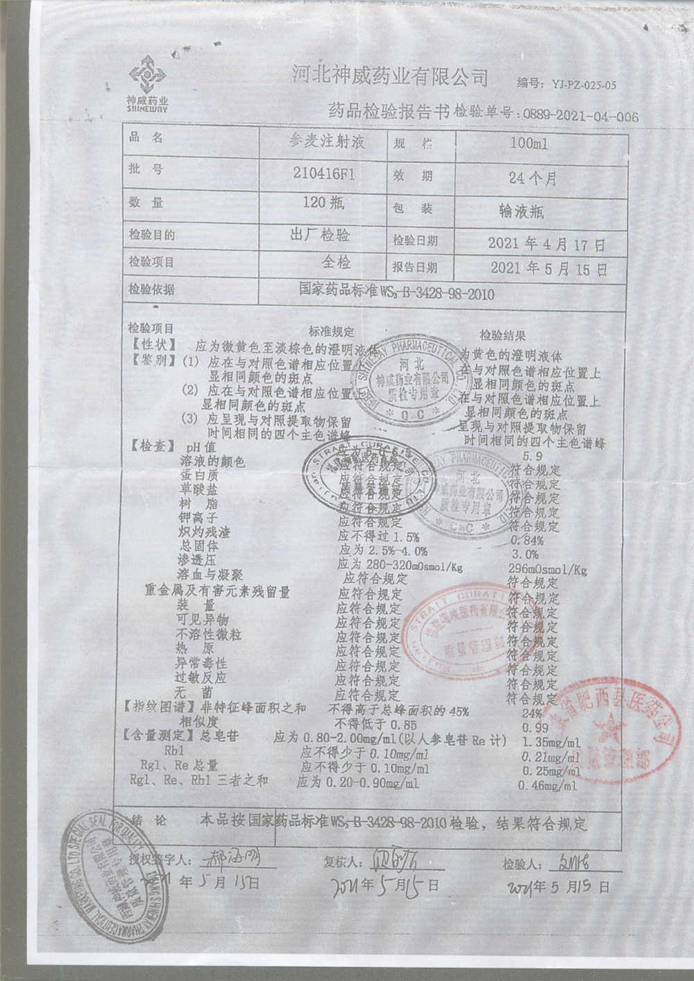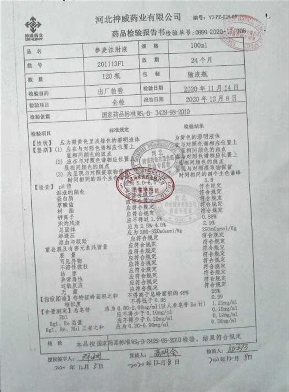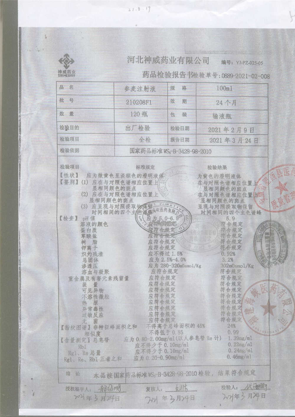 参麦注射液 | 100ml | 210418F1 | 查看详情 |