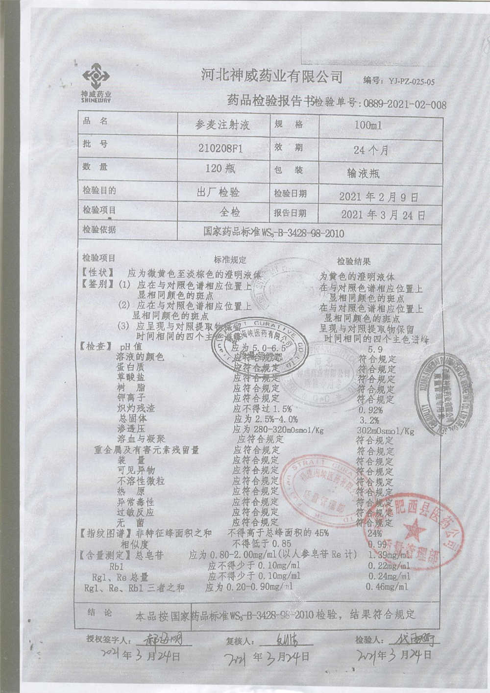 参麦注射液 | 100ml | 210208F1 | 查看详情 |