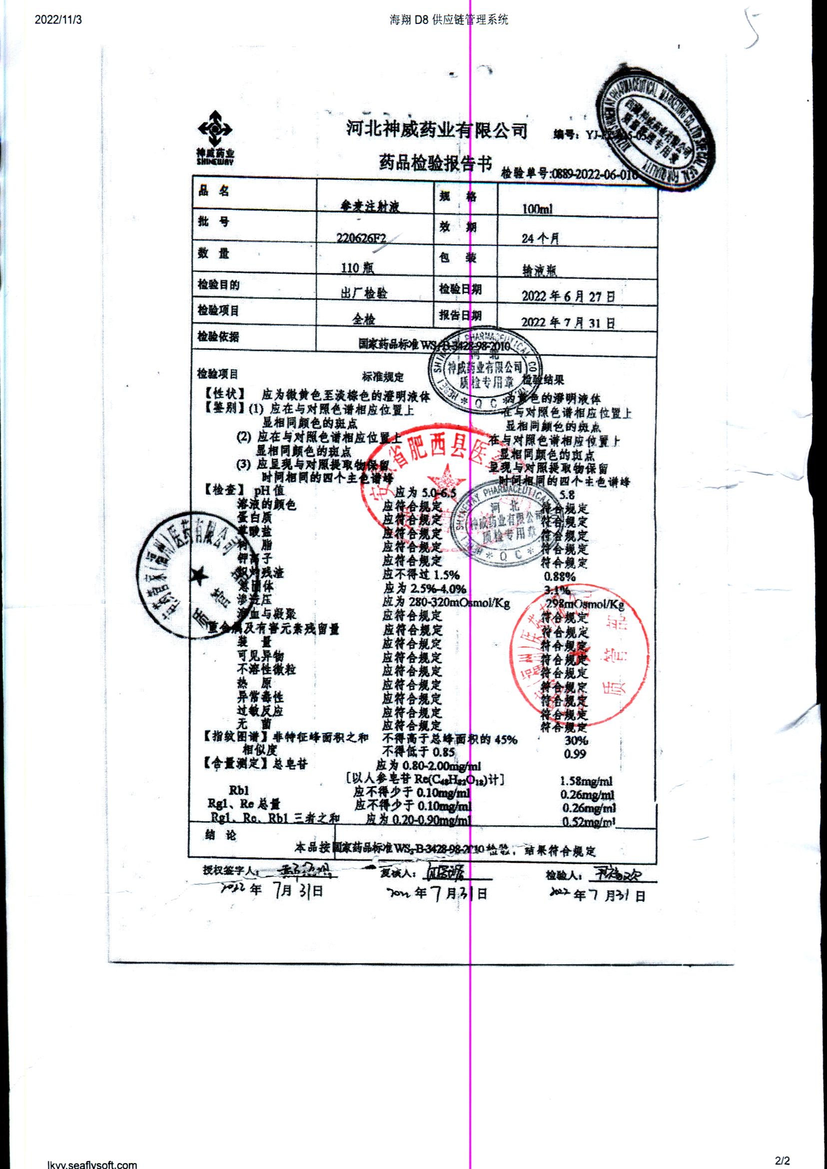 参麦注射液 | 100ml | 220626F2 | 查看详情 |