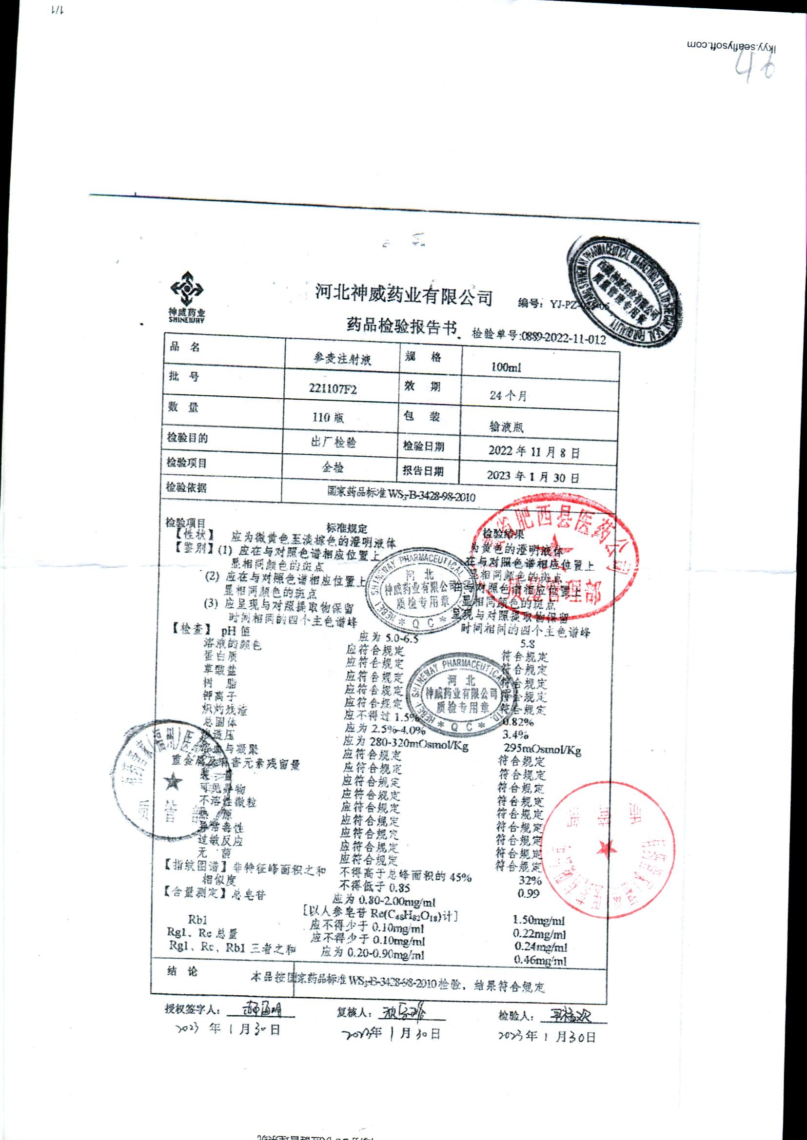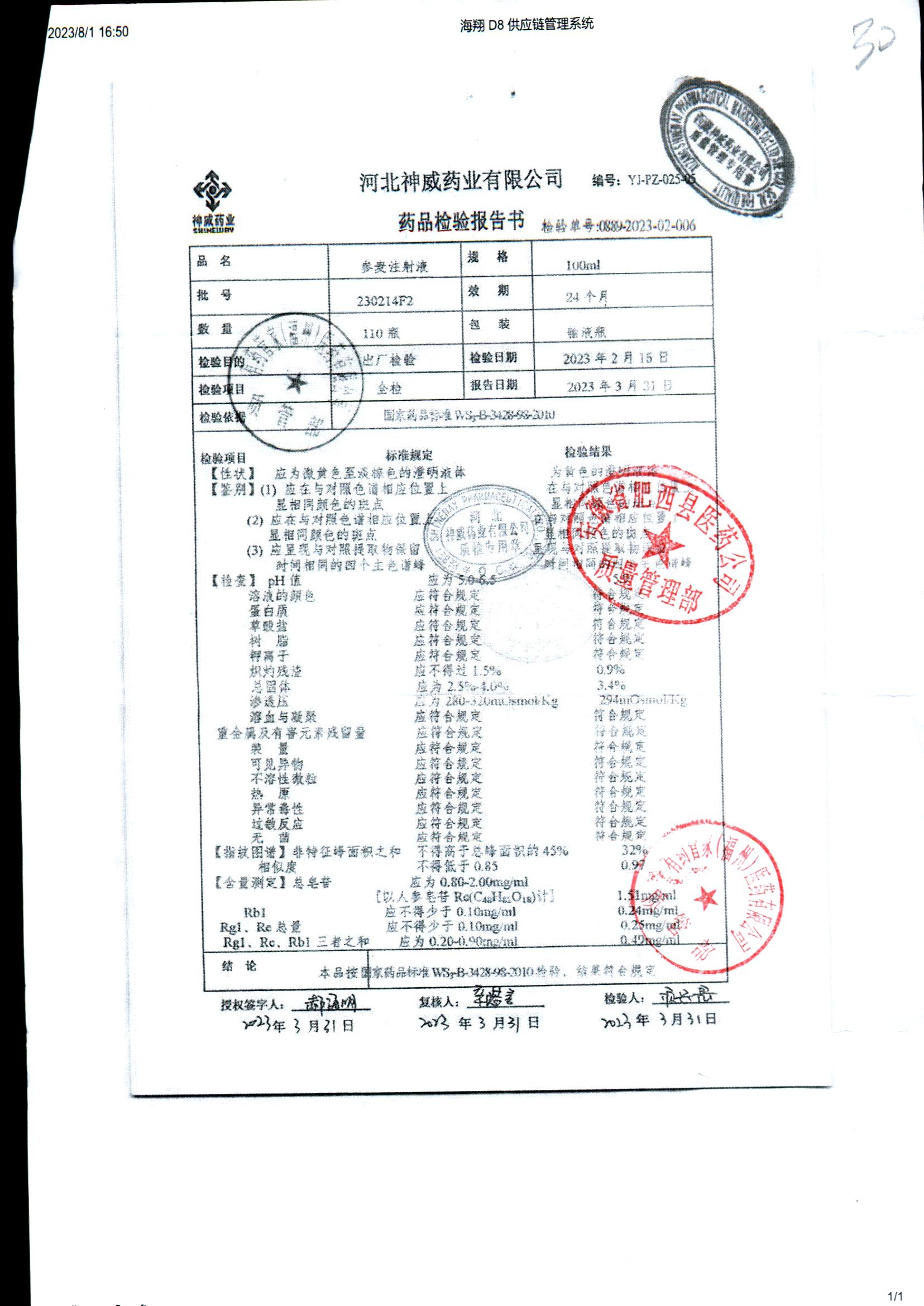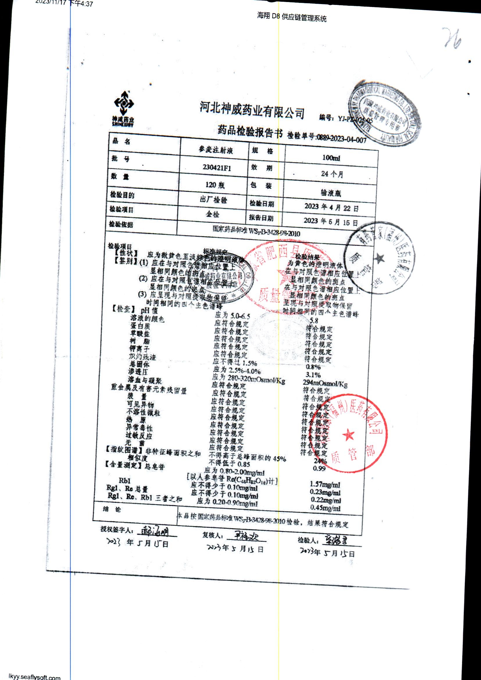 参麦注射液 | 100ml | 230421F1 | 查看详情 |
