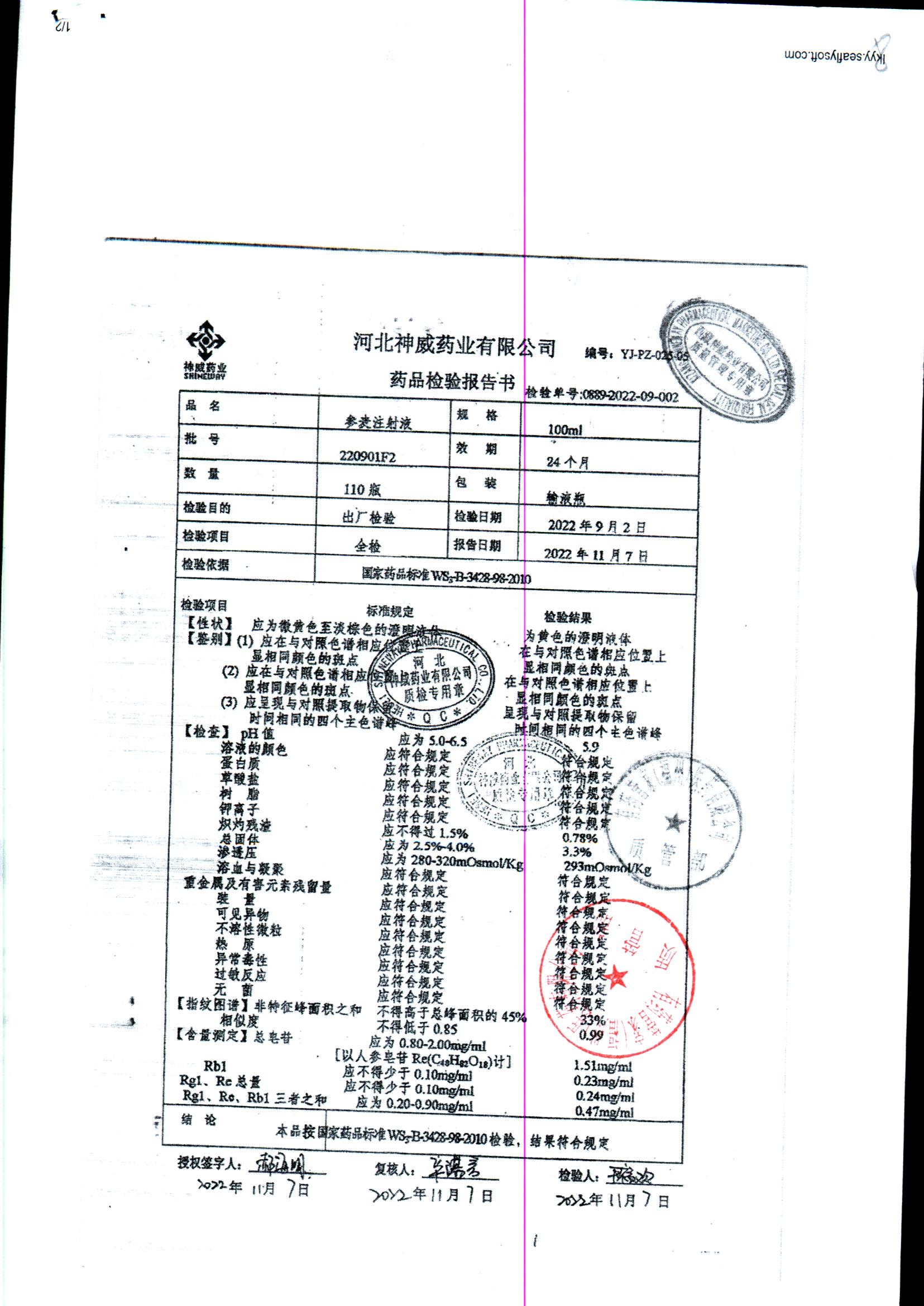 参麦注射液 | 100ml | 220901F2 | 查看详情 |