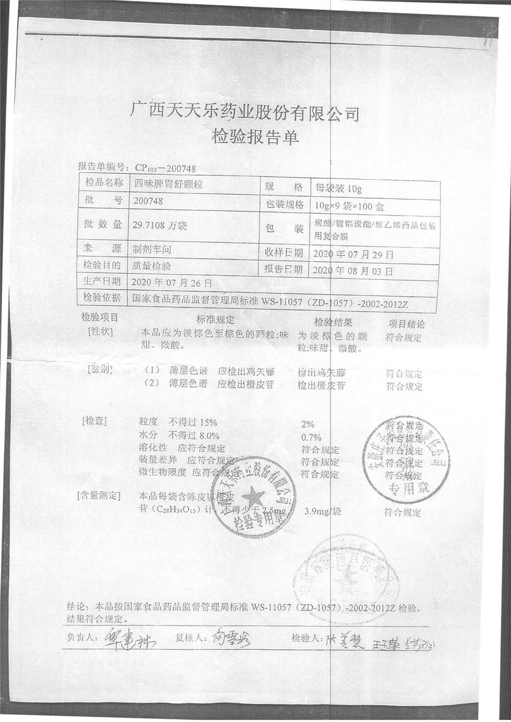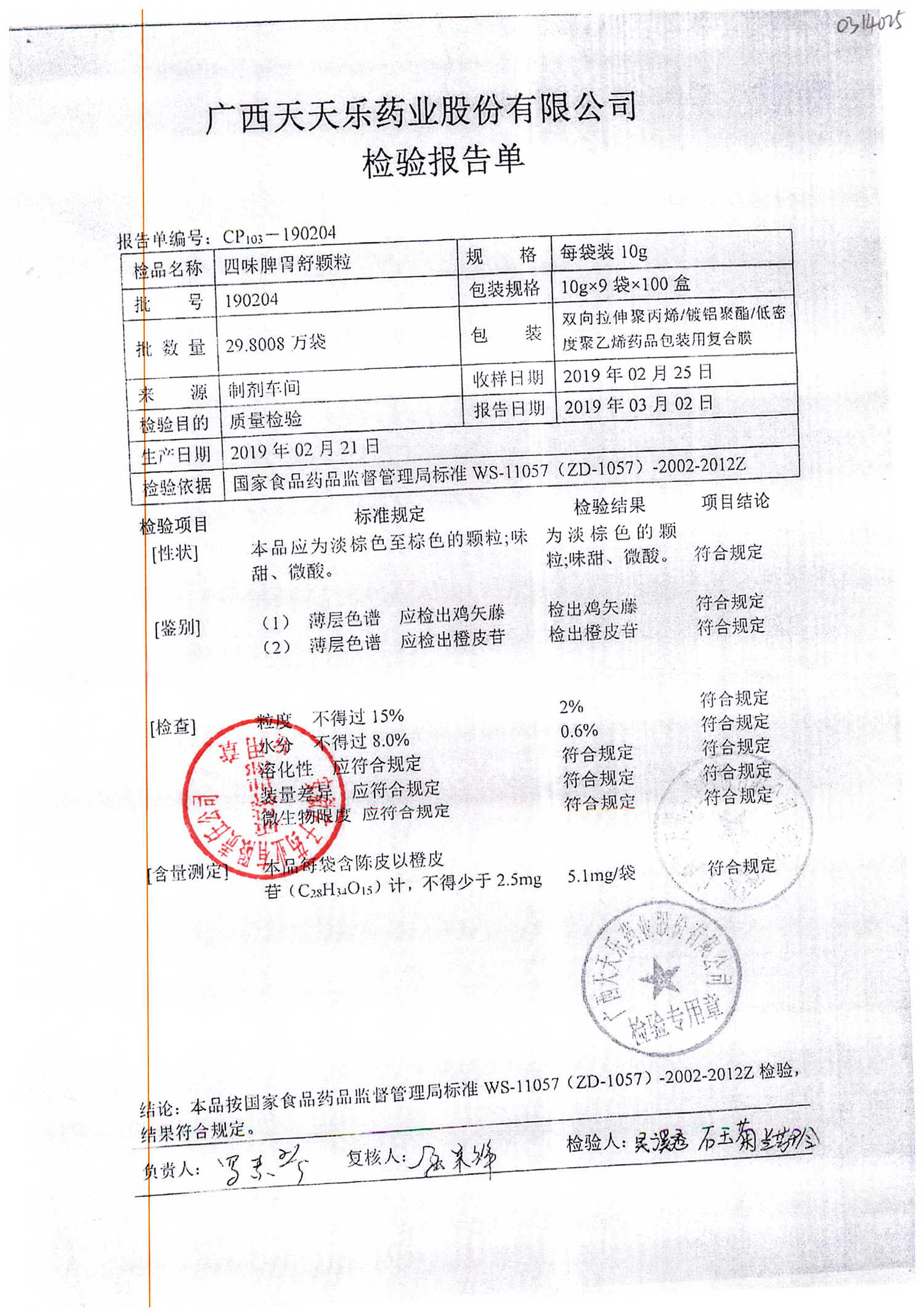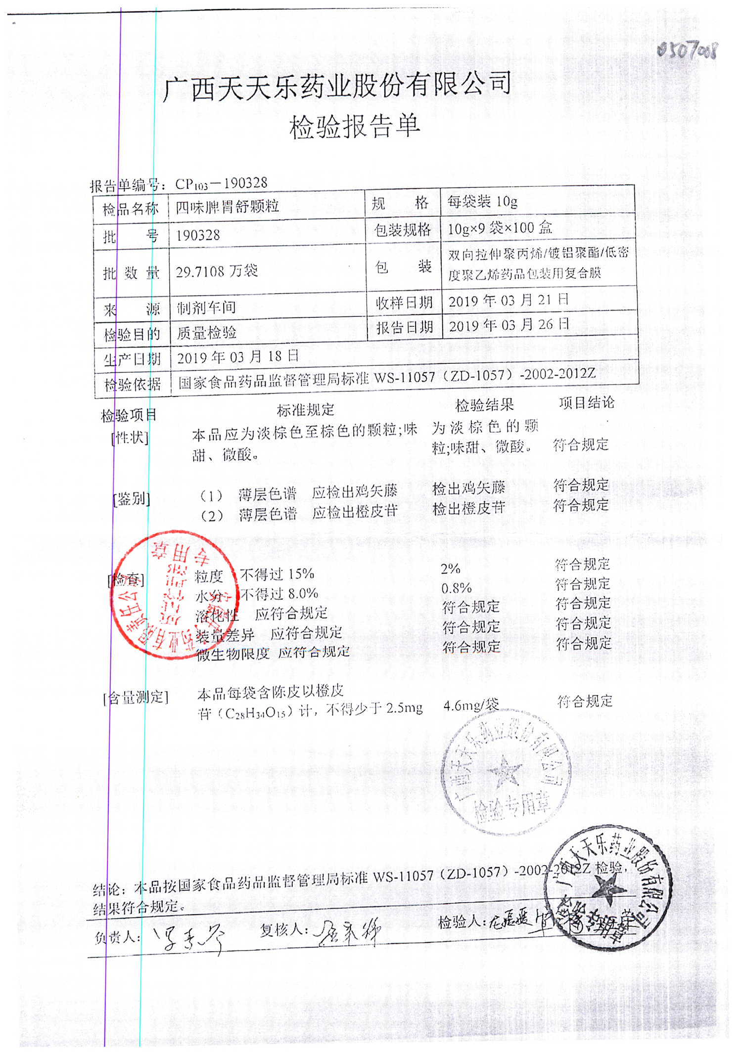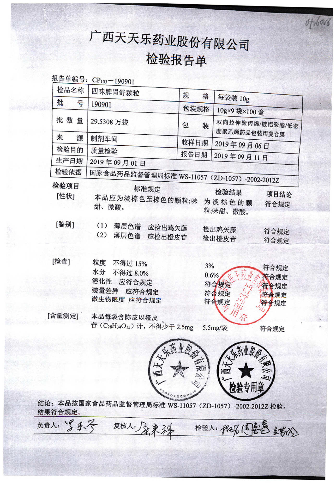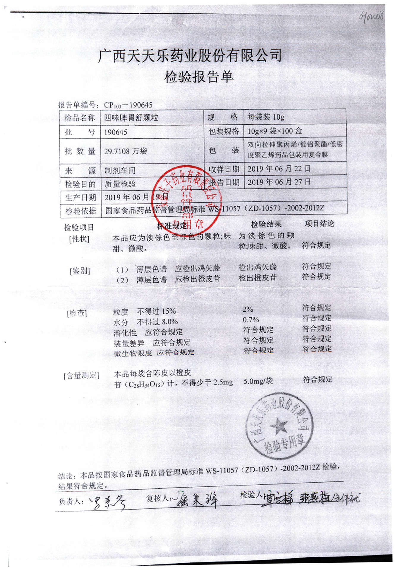 四味脾胃舒颗粒 | 10g*9袋 | 190828 | 查看详情 |
