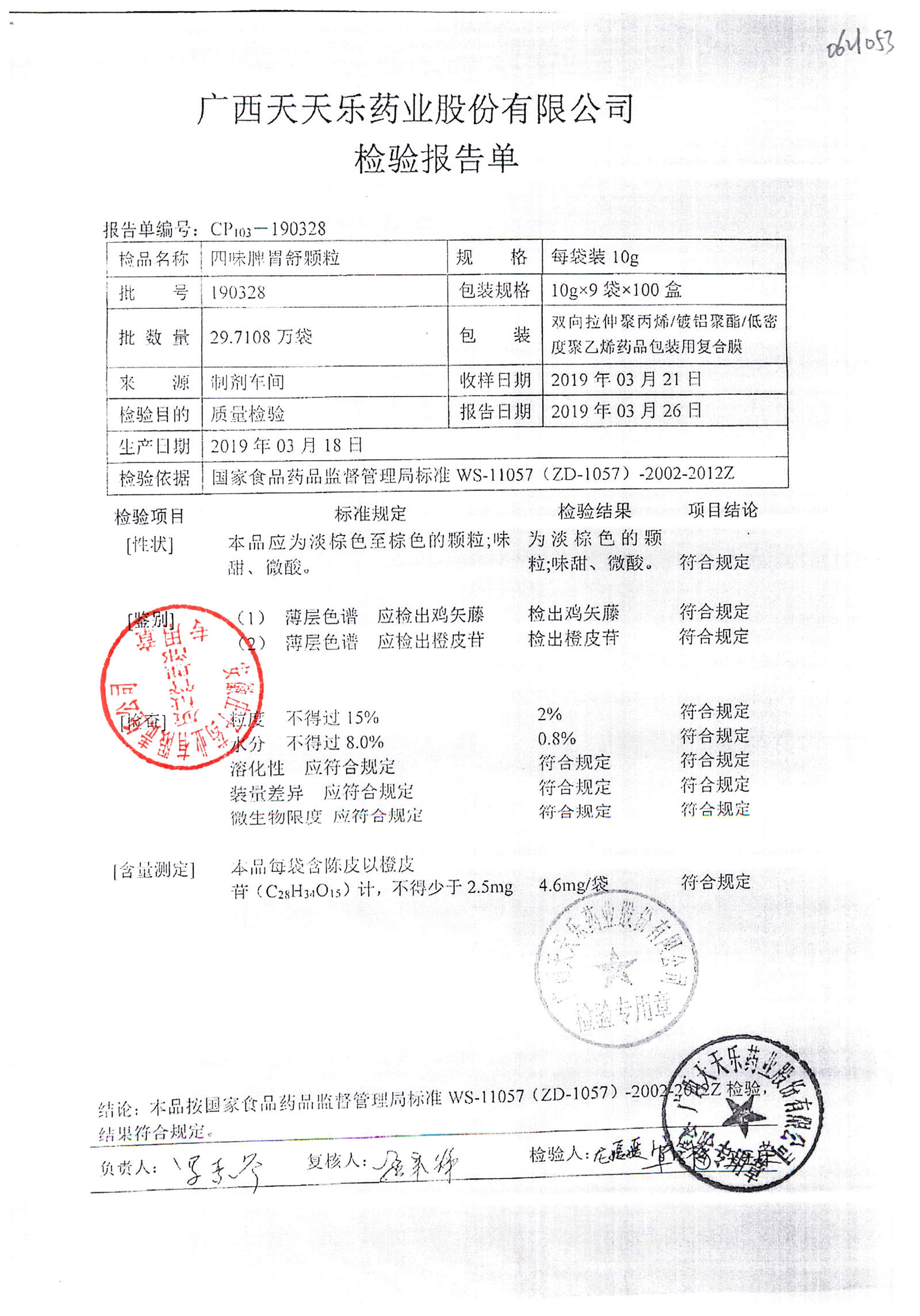 四味脾胃舒颗粒 | 10g*9袋 | 190328 | 查看详情 |
