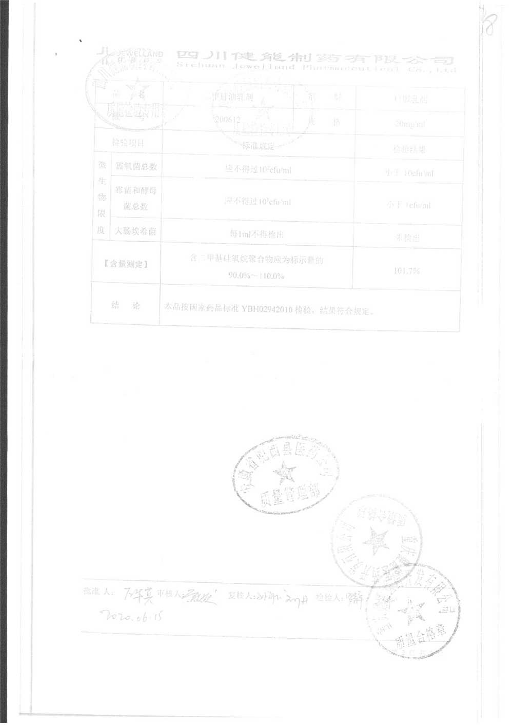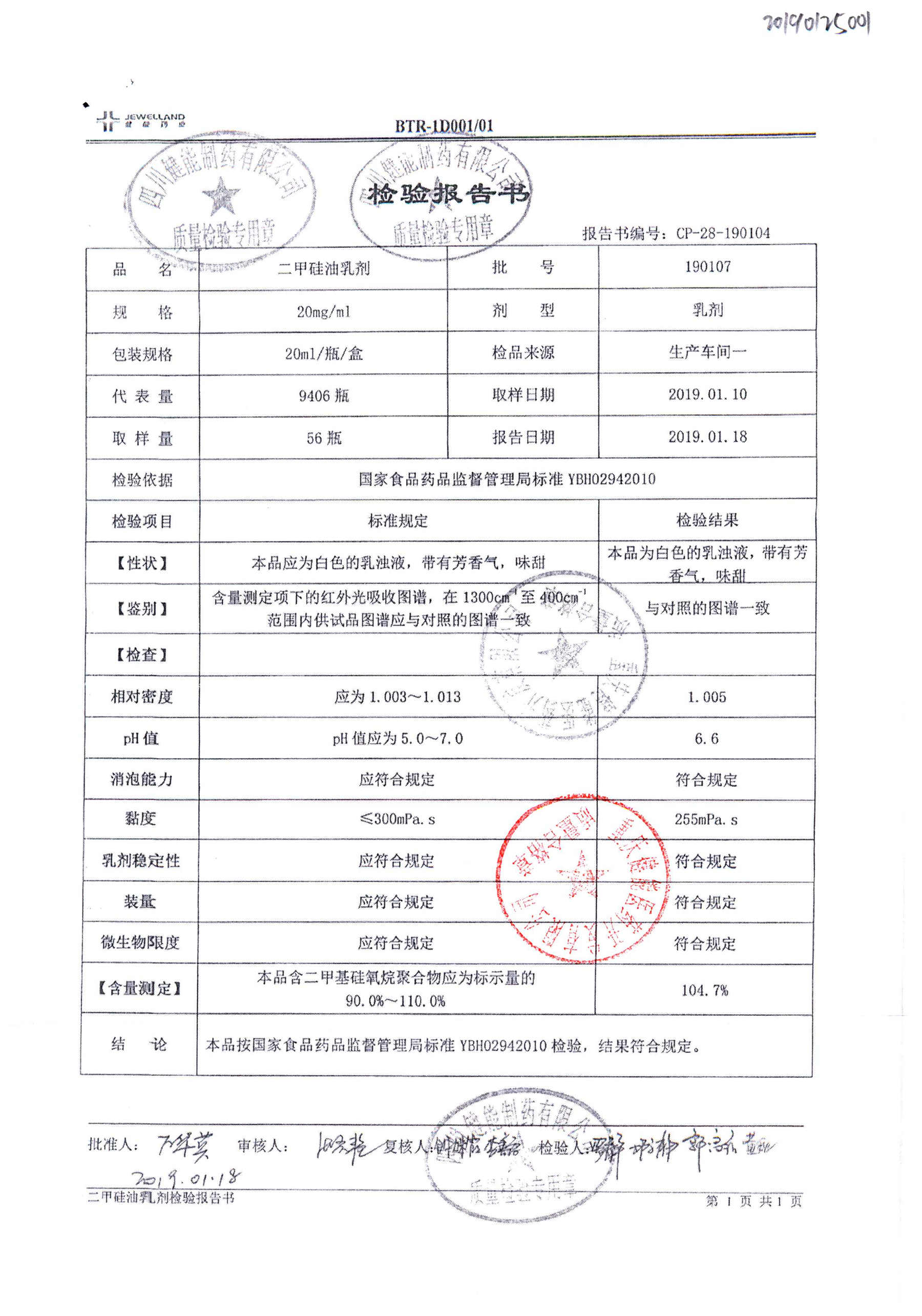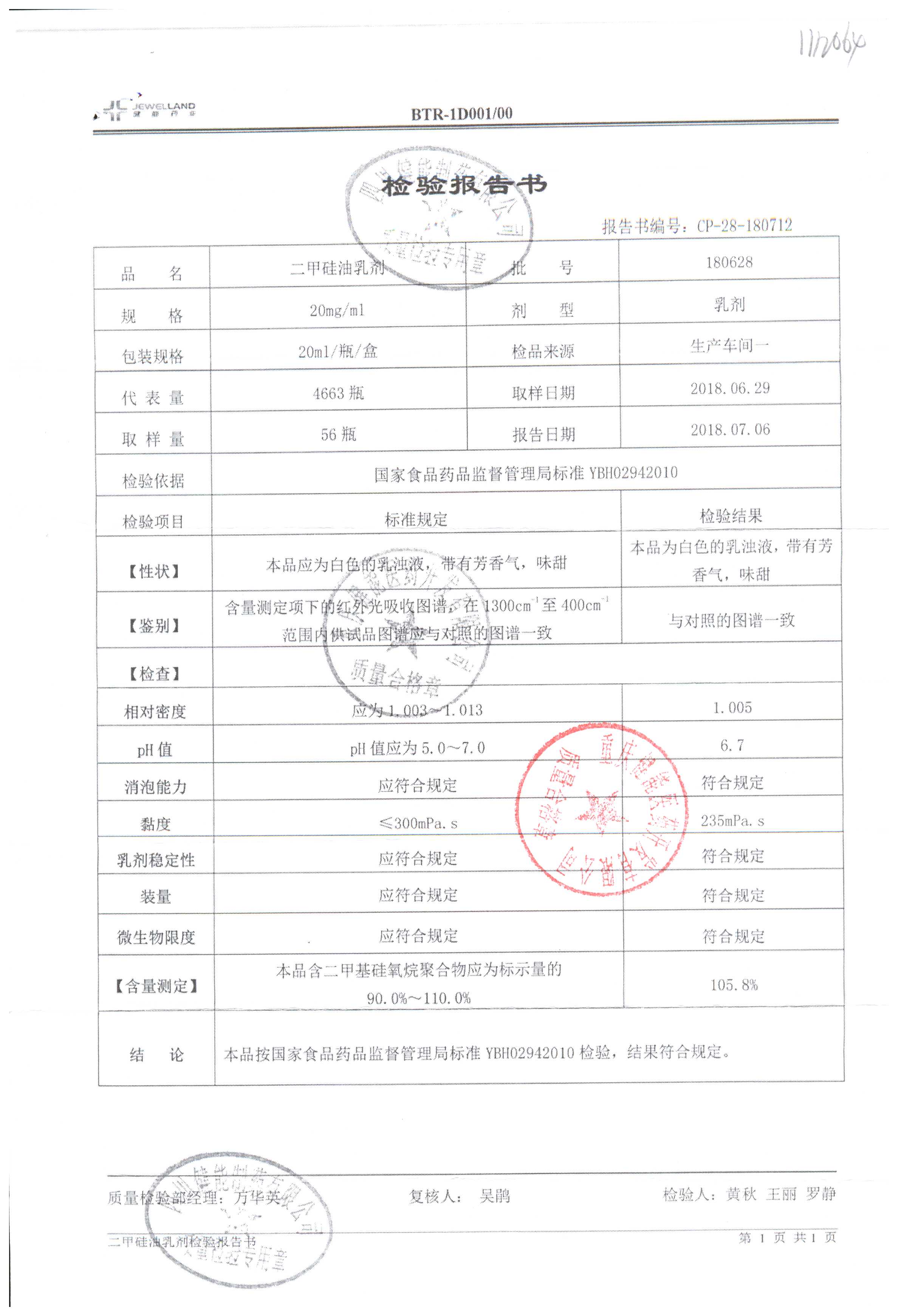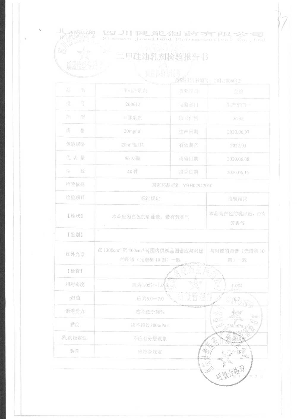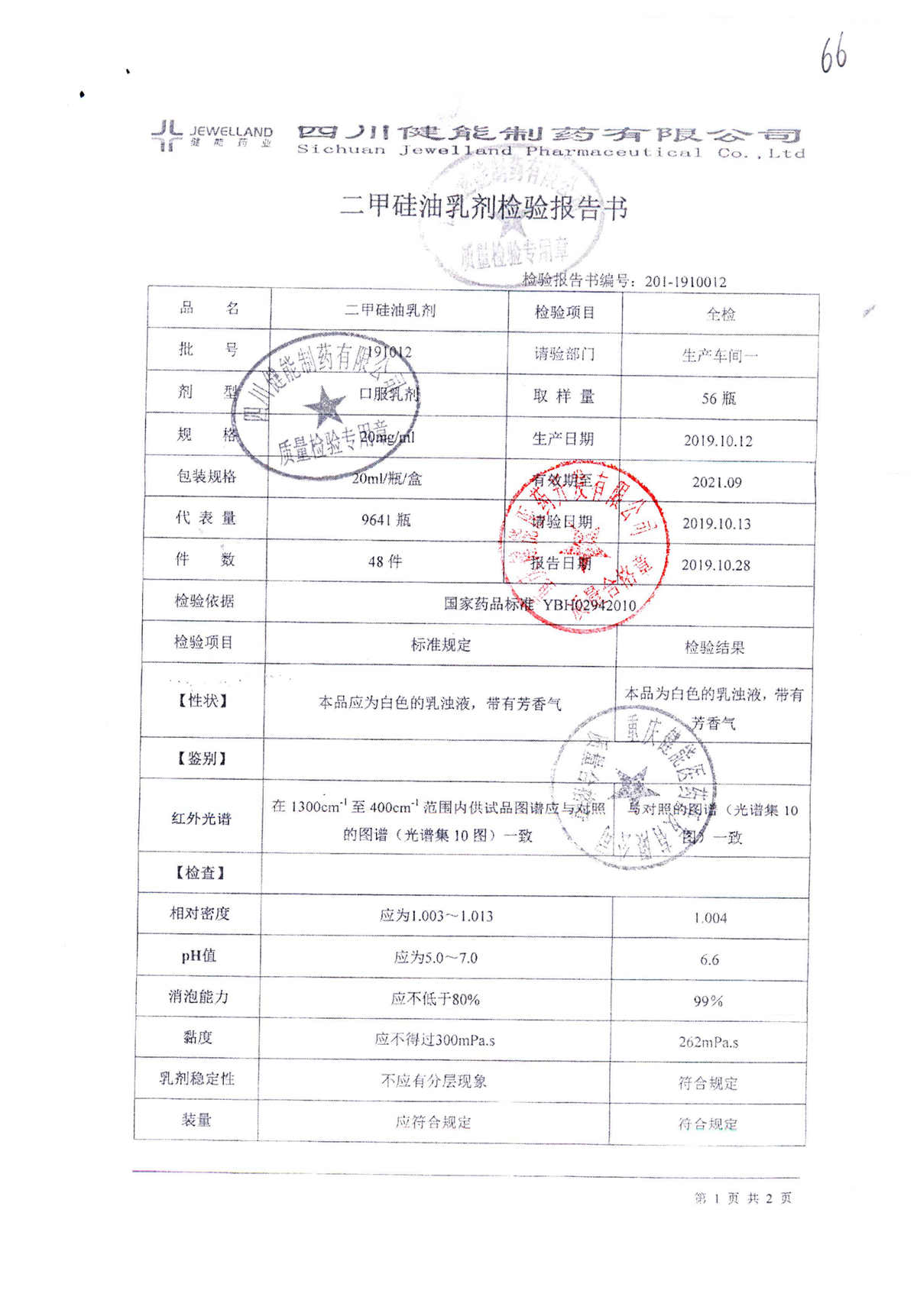 二甲硅油乳剂 | 20mg/ml*20ml | 191012(1/2) | 查看详情 |