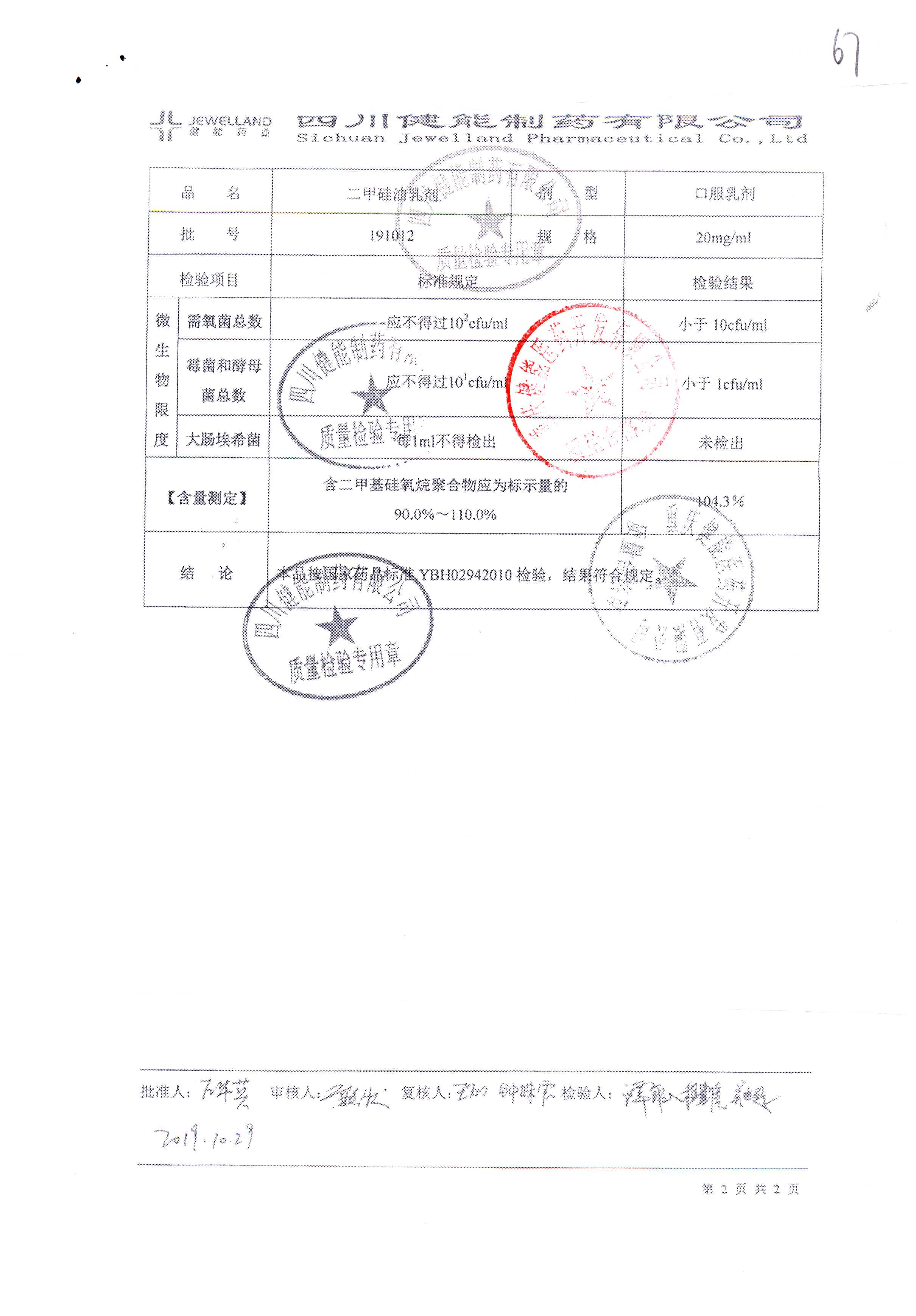 二甲硅油乳剂 | 20mg/ml*20ml | 191012(2/2) | 查看详情 |