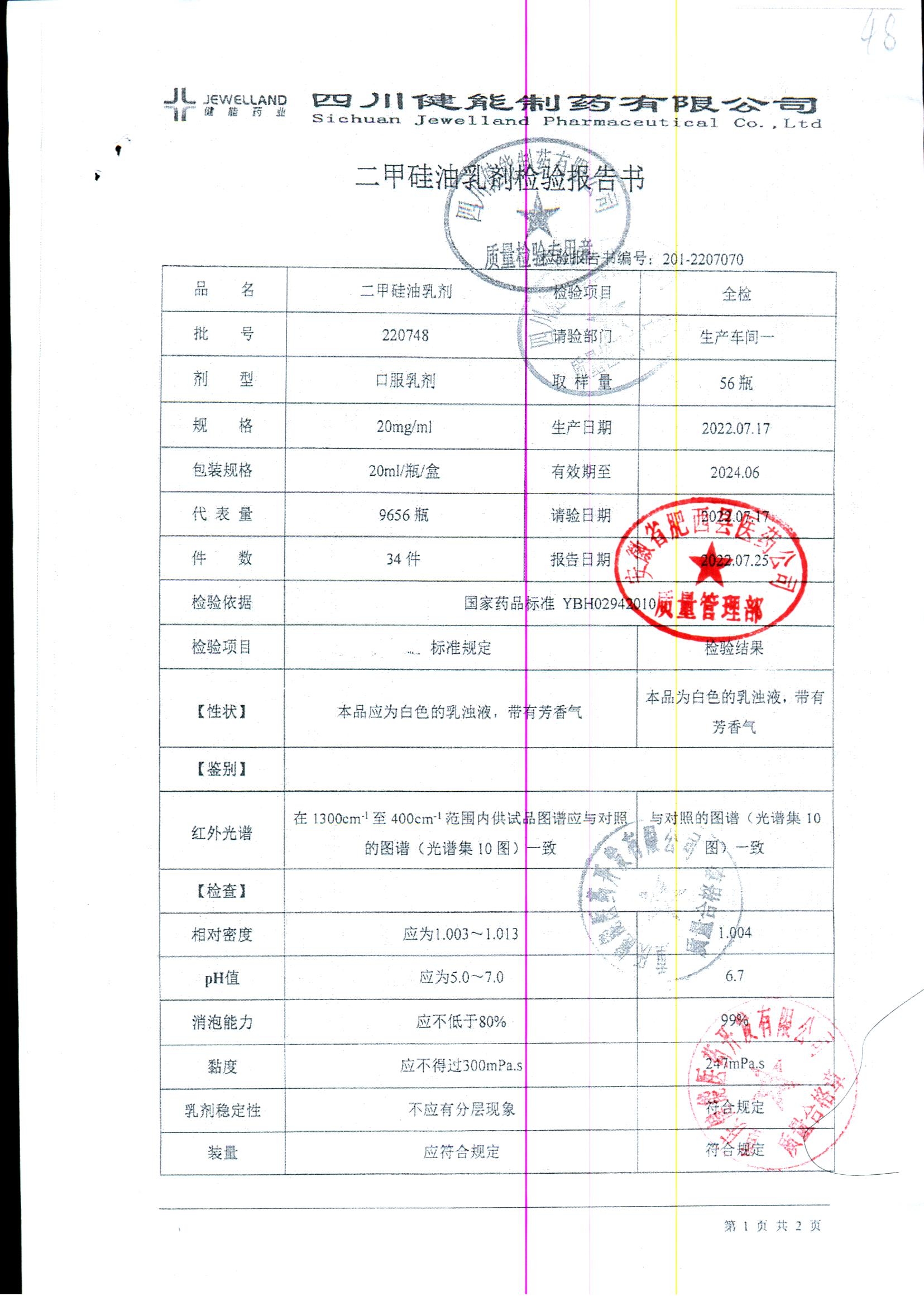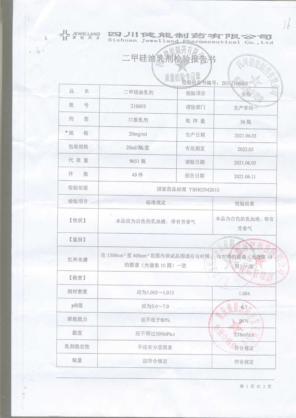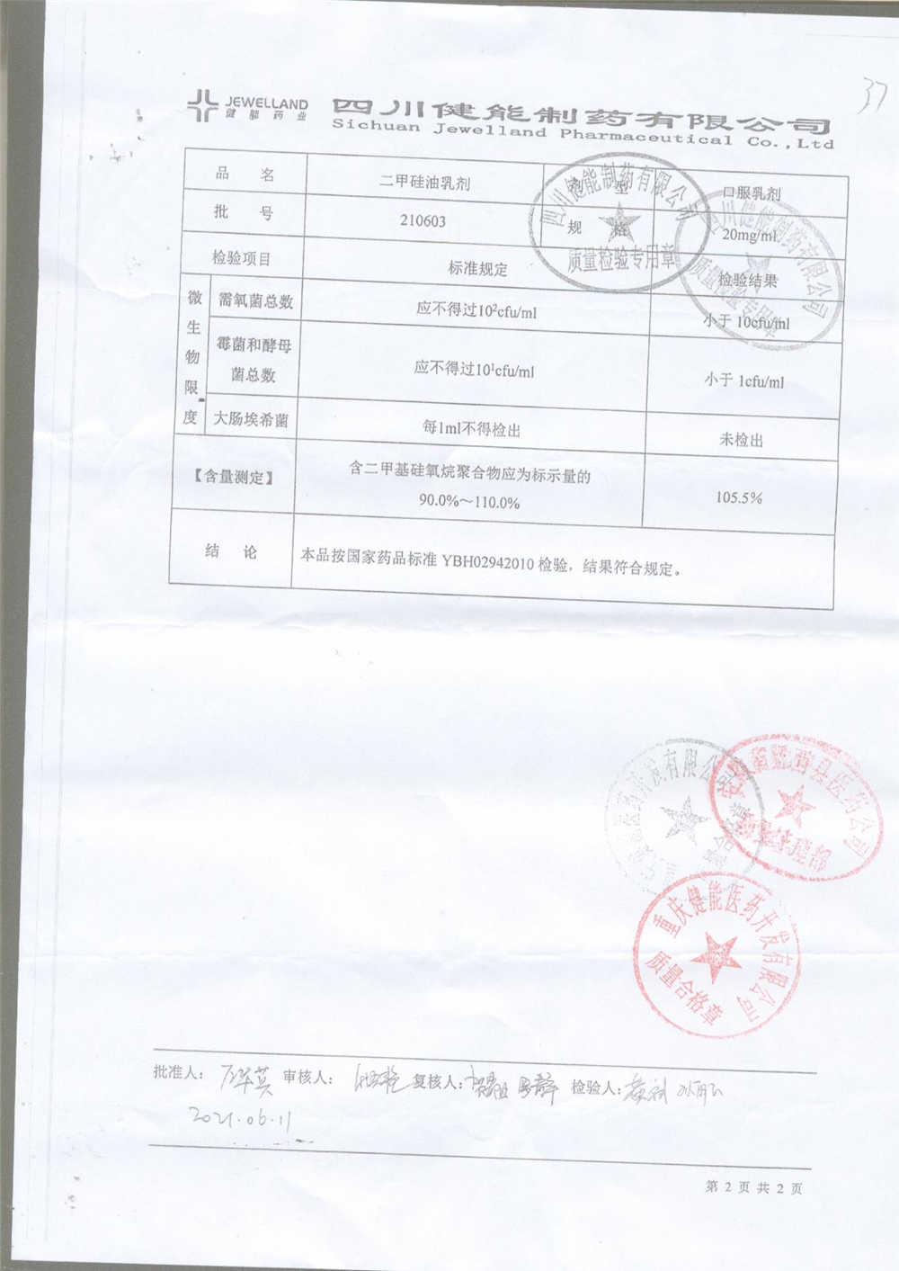 二甲硅油乳剂 | 20mg/ml*20ml | 210603(1/2) | 查看详情 |