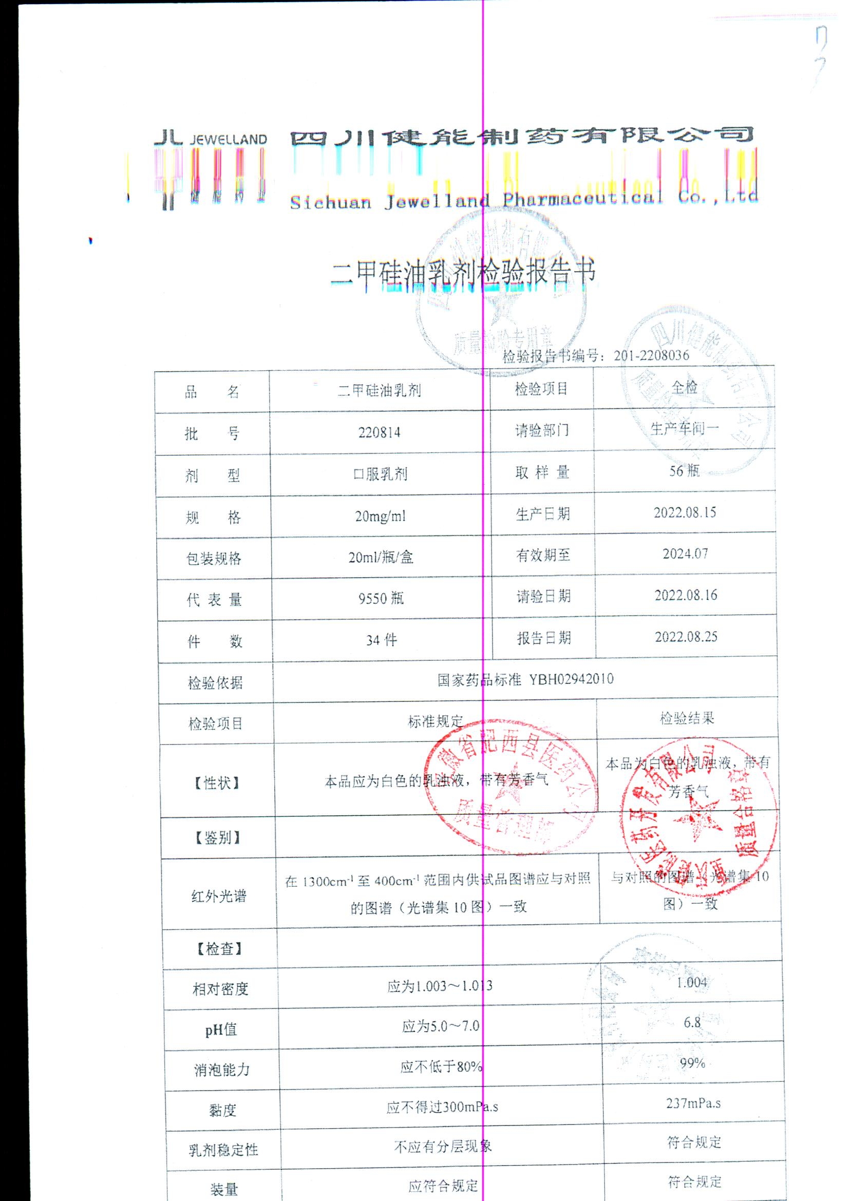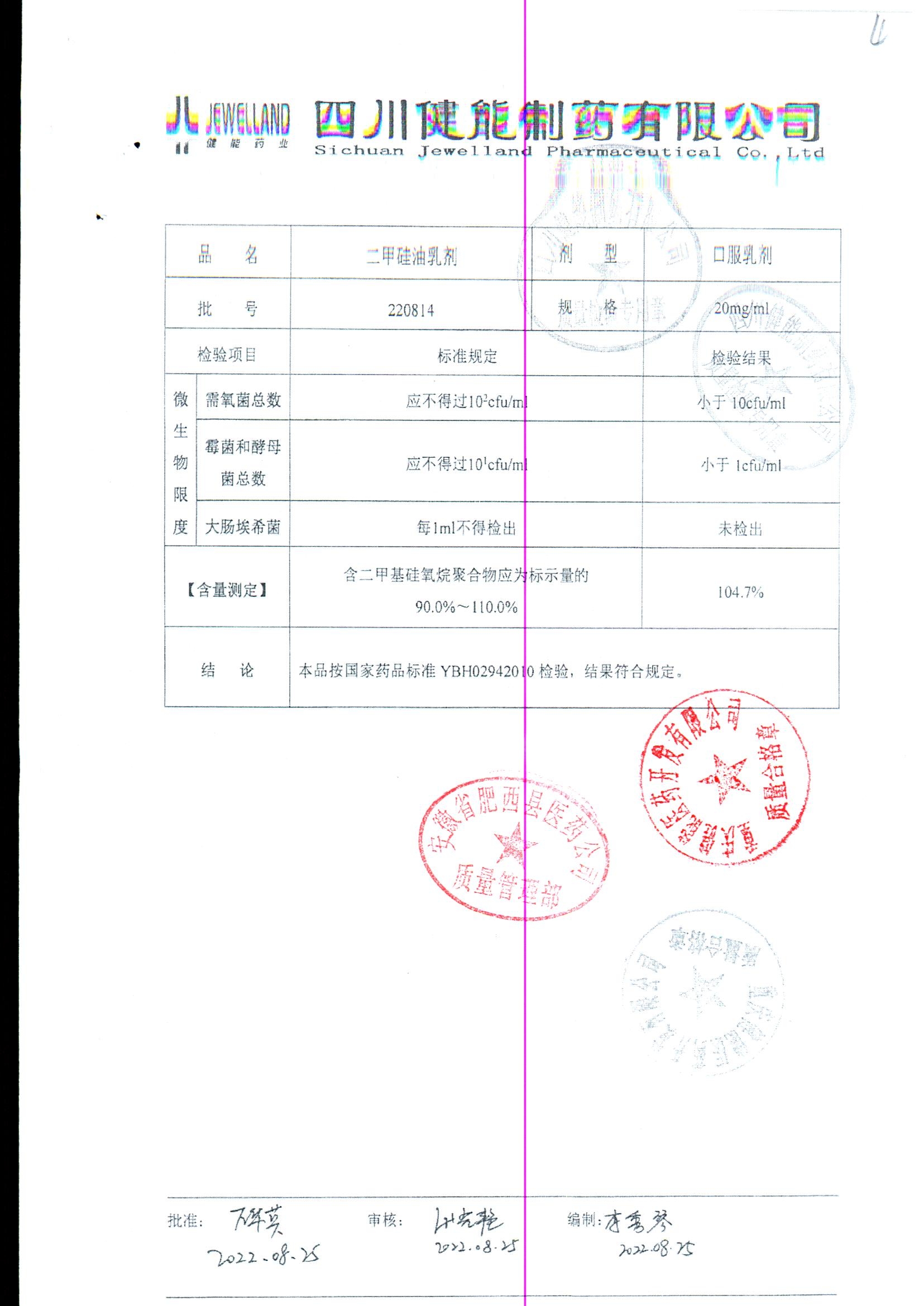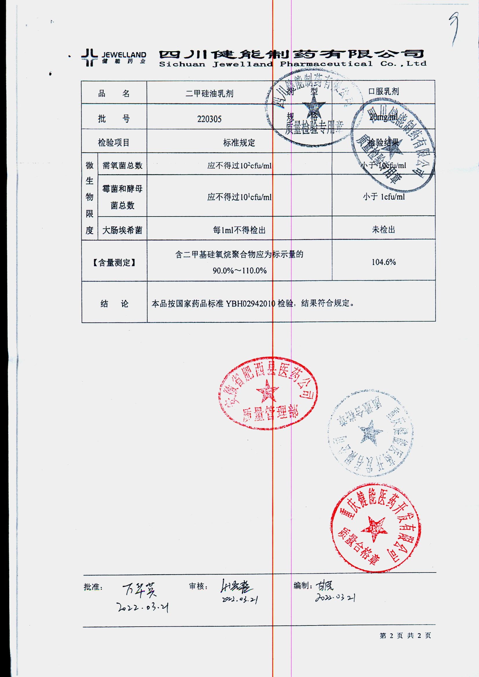二甲硅油乳剂 | 20mg/ml*20ml | 210603(1/2) | 查看详情 |