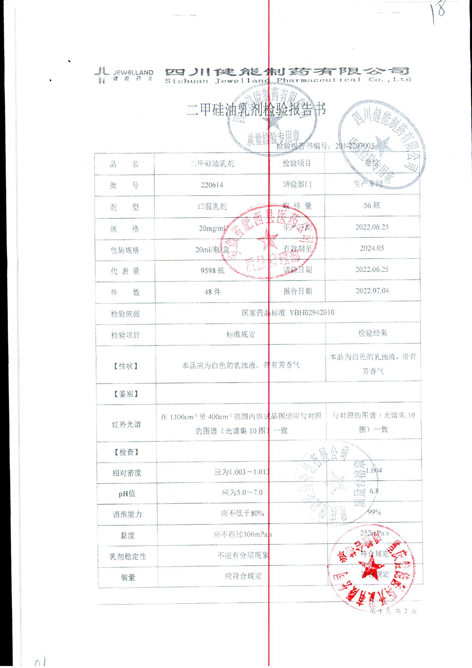 二甲硅油乳剂 | 20mg/ml*20ml | 210603(2/2) | 查看详情 |