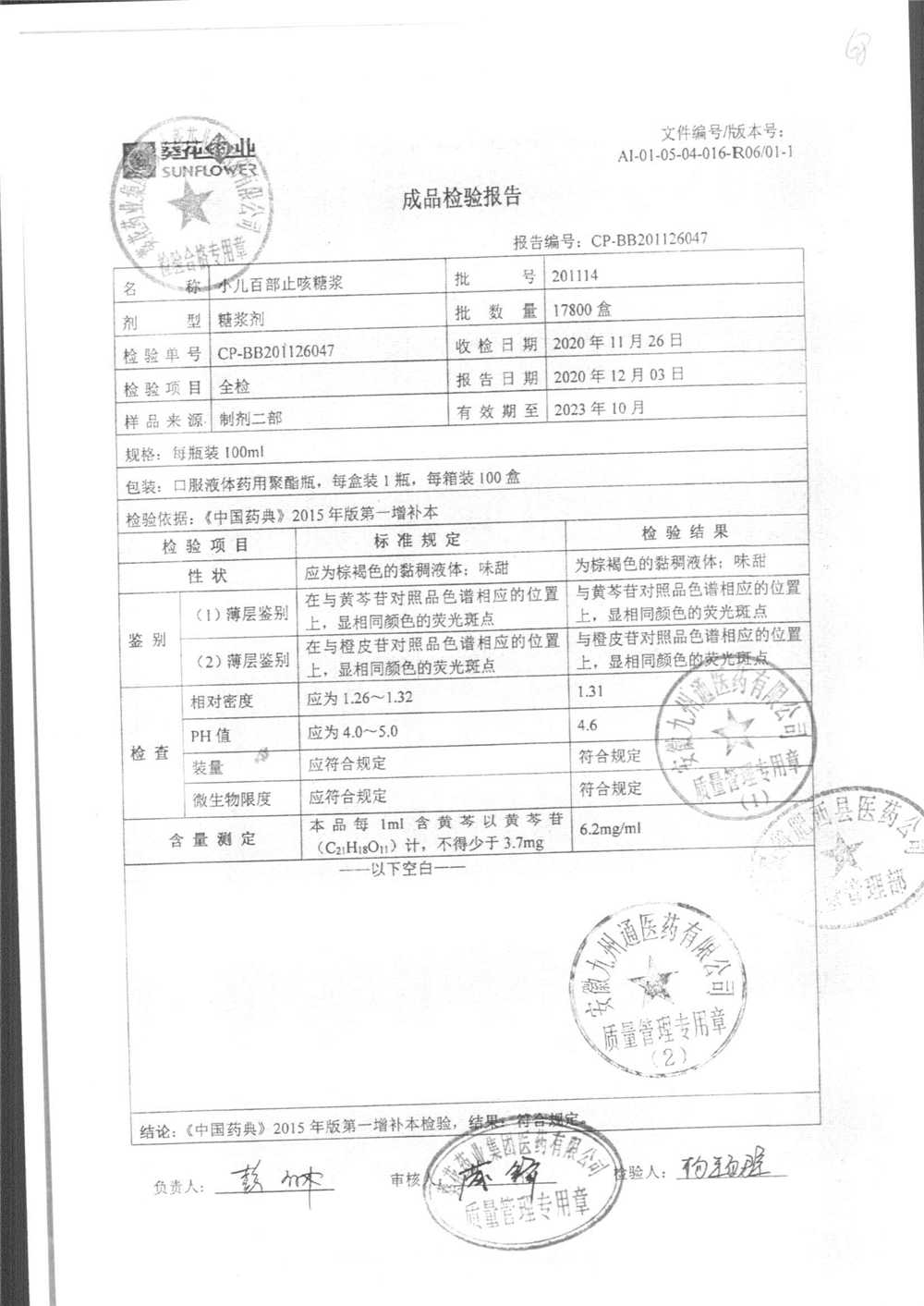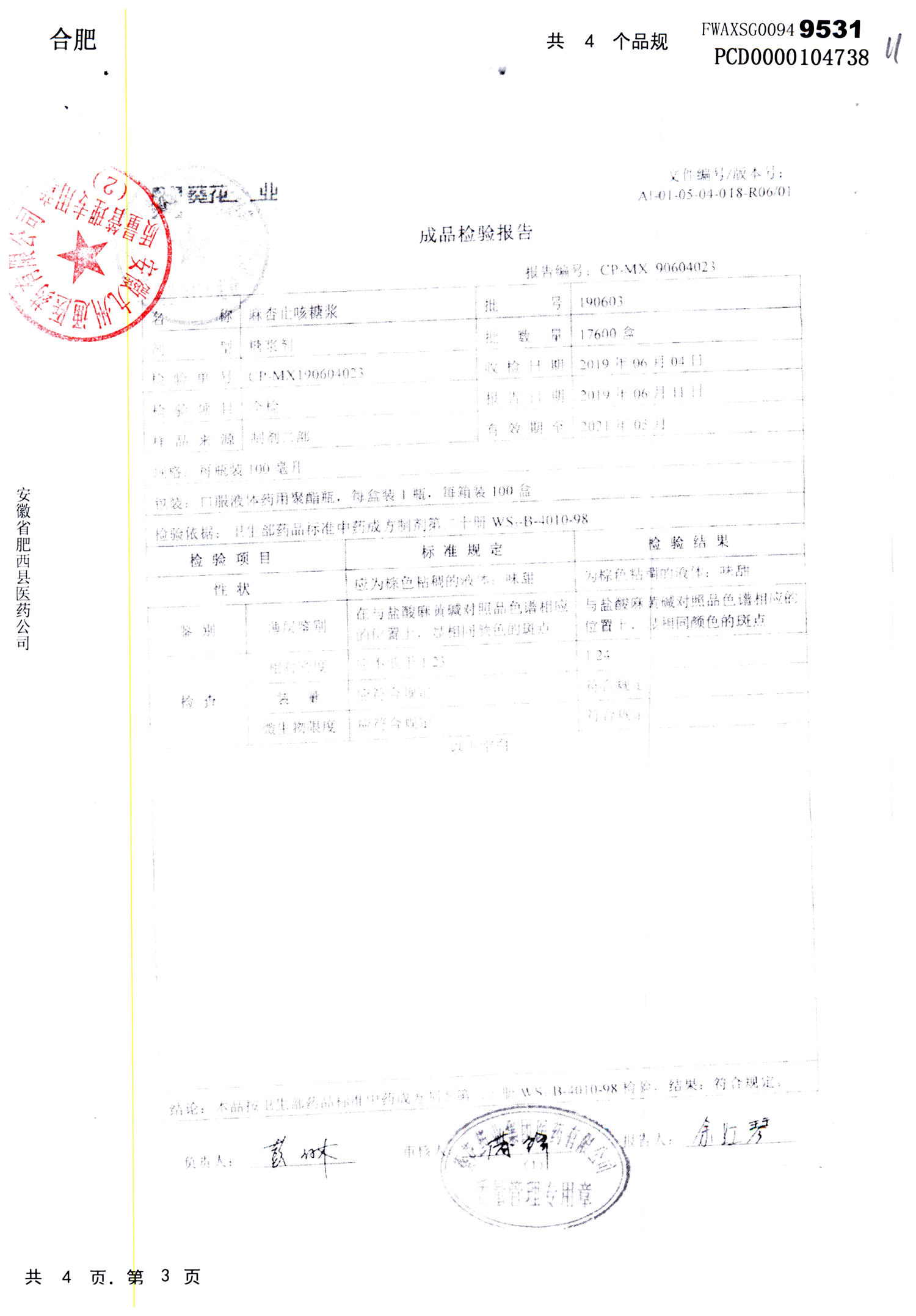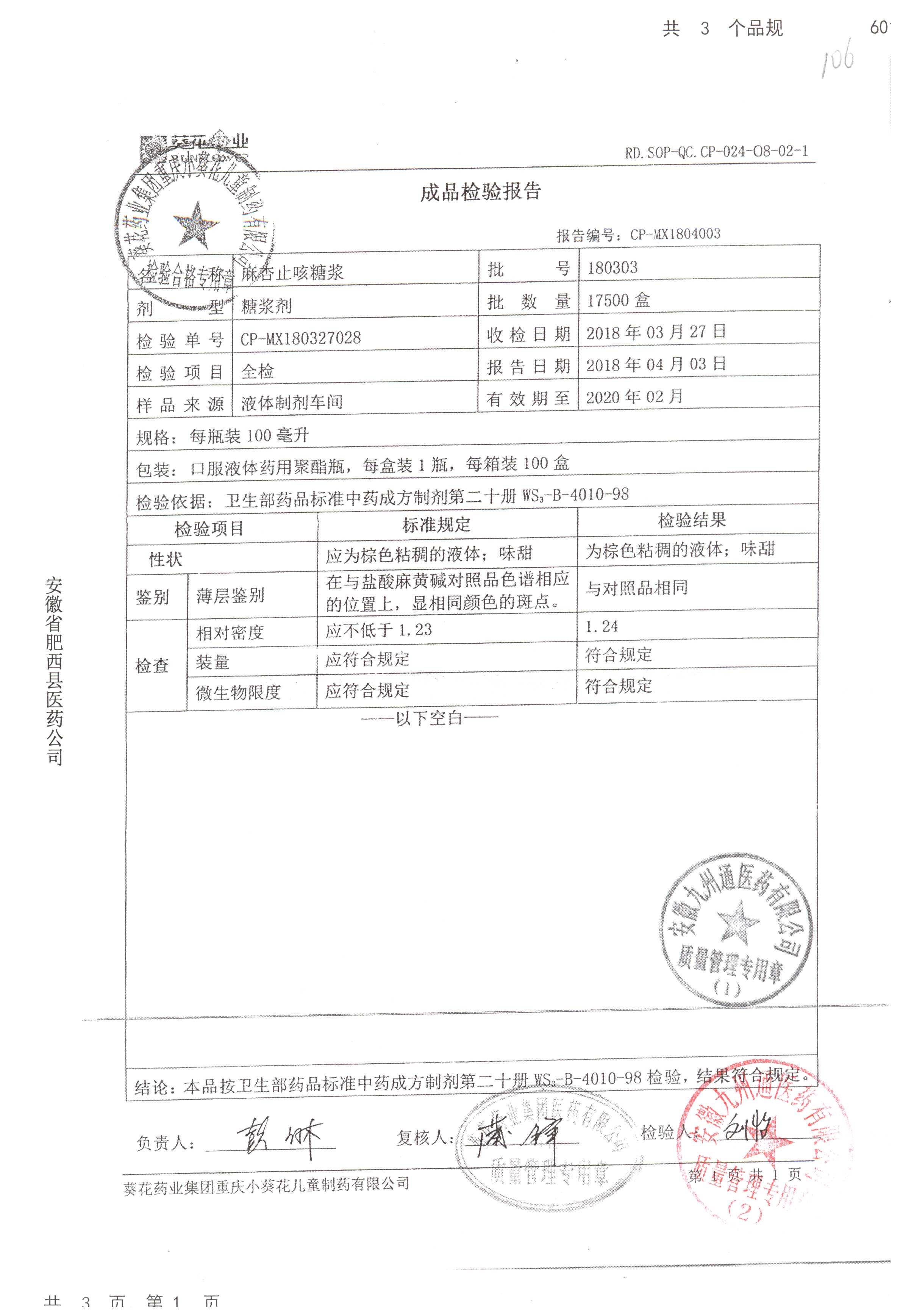 麻杏止咳糖浆 | 100ml | 190603 | 查看详情 |