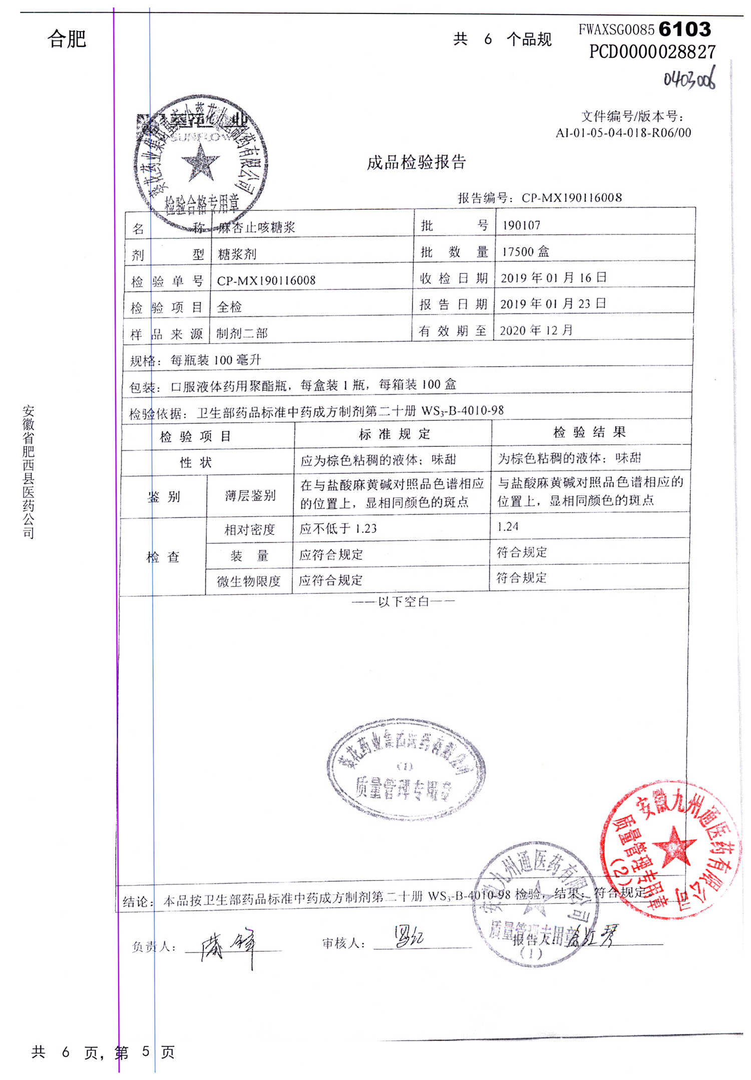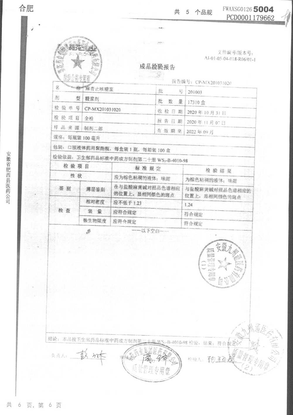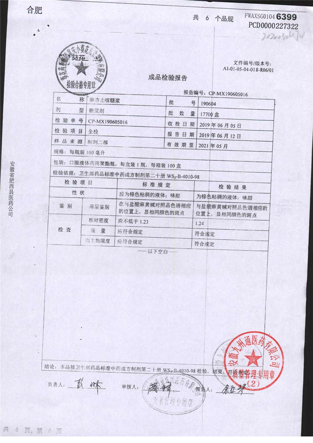 麻杏止咳糖浆 | 100ml | 190604 | 查看详情 |
