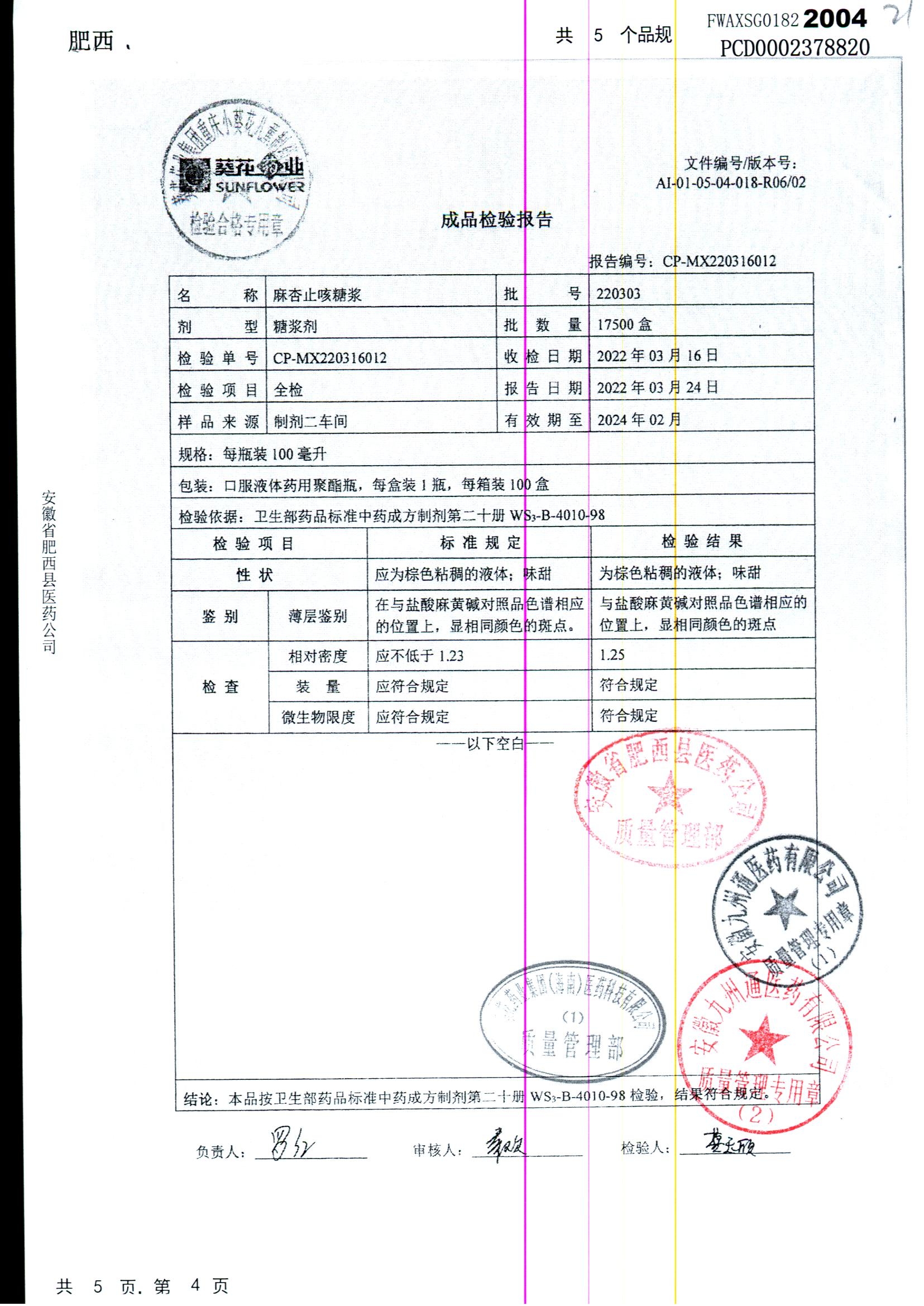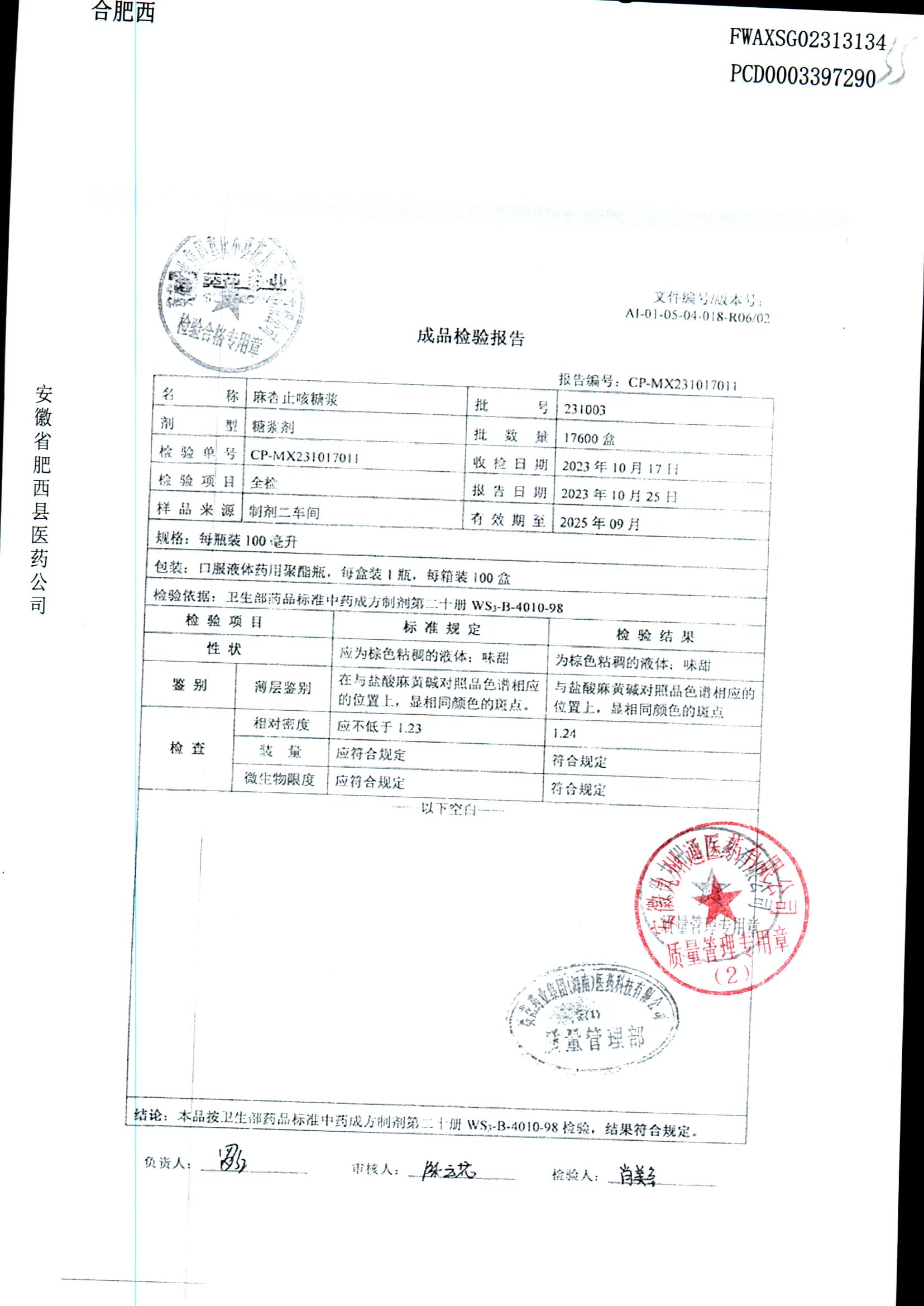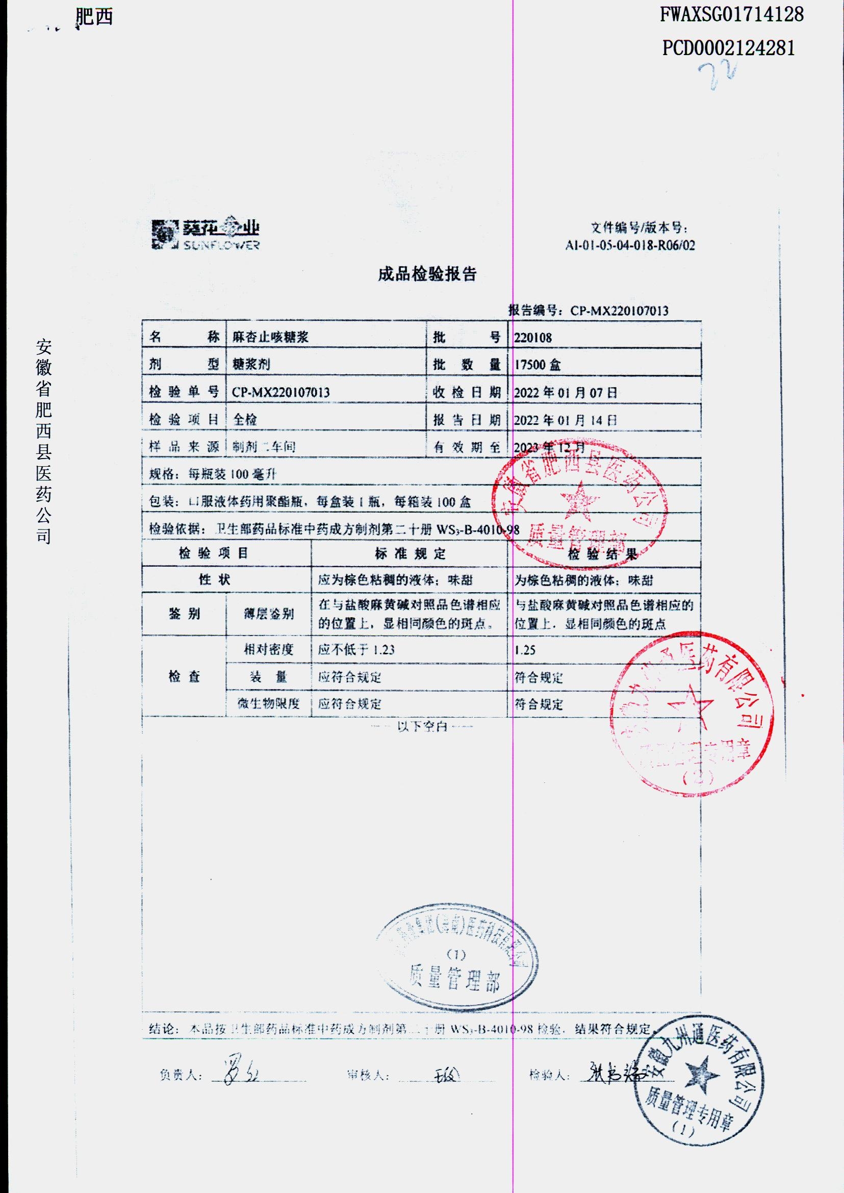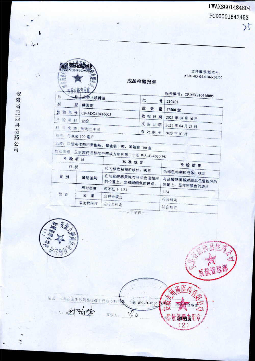 麻杏止咳糖浆 | 100ml | 210401 | 查看详情 |