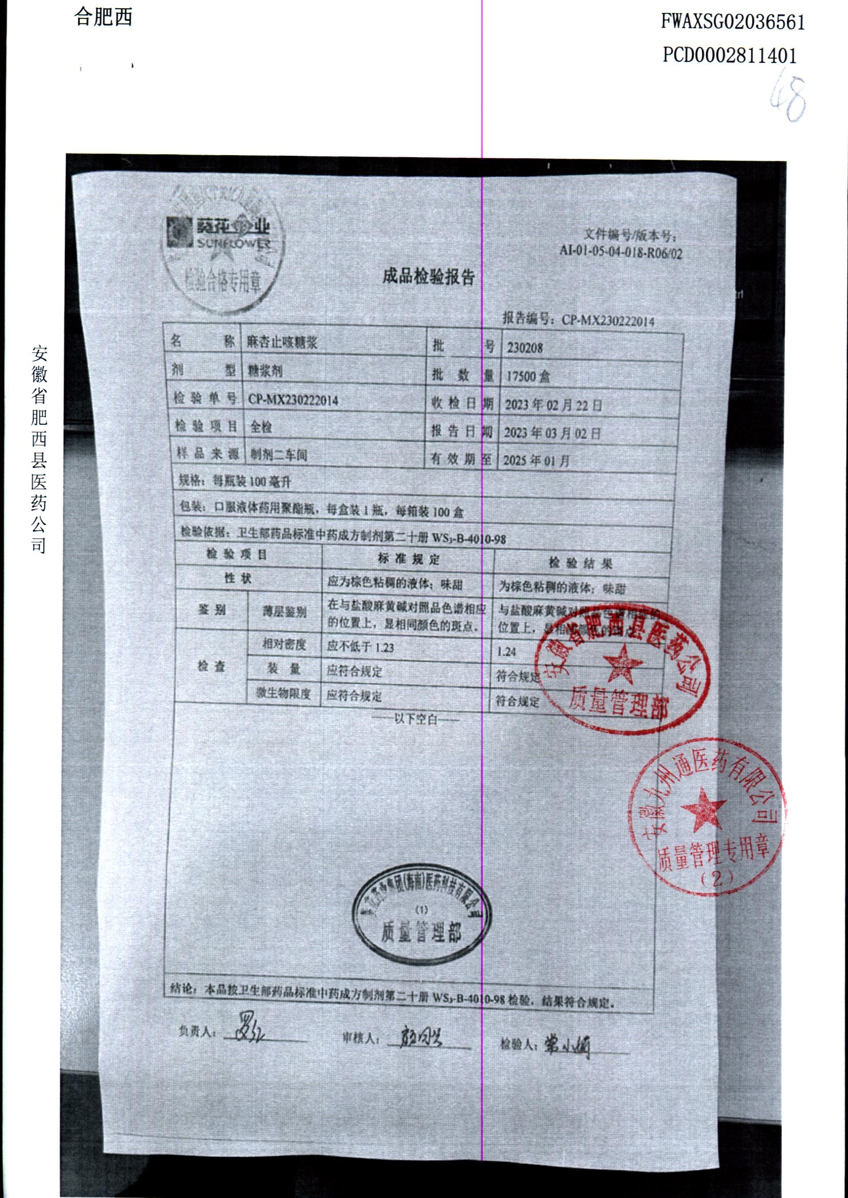 麻杏止咳糖浆 | 100ml | 230208 | 查看详情 |