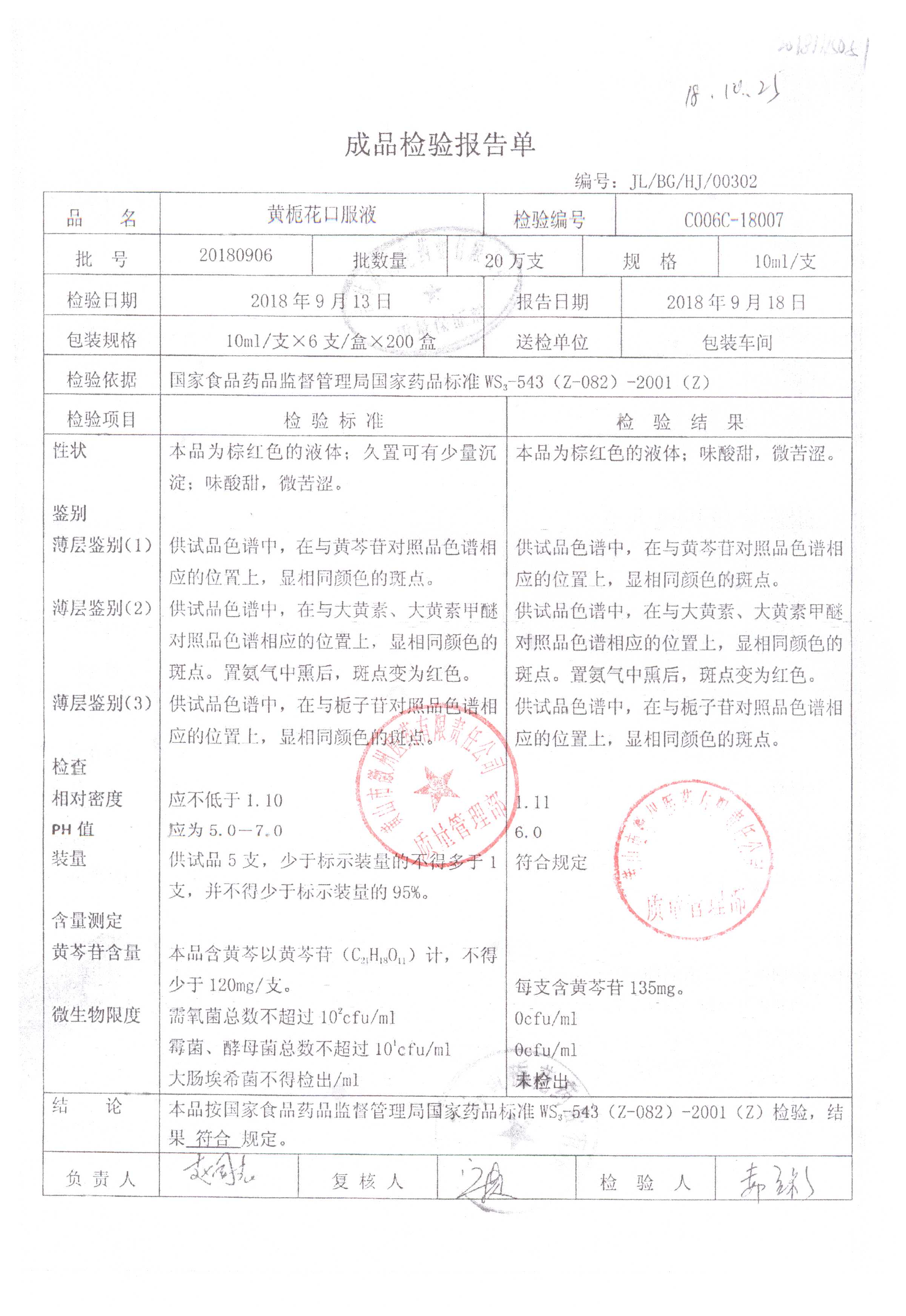 药检报告