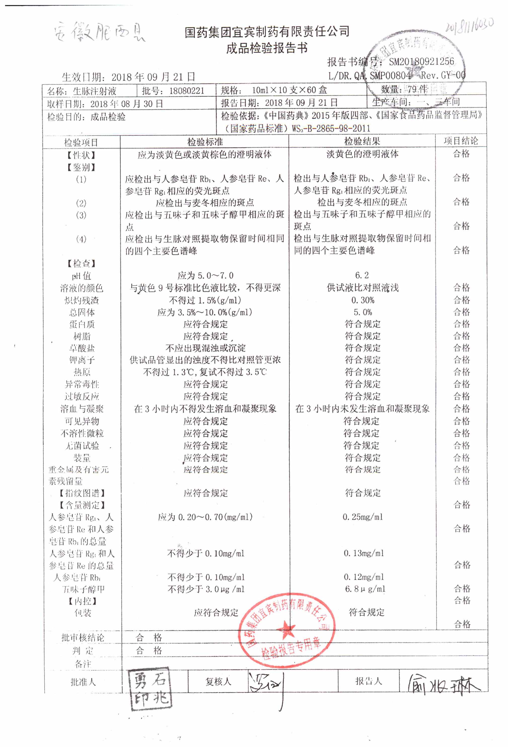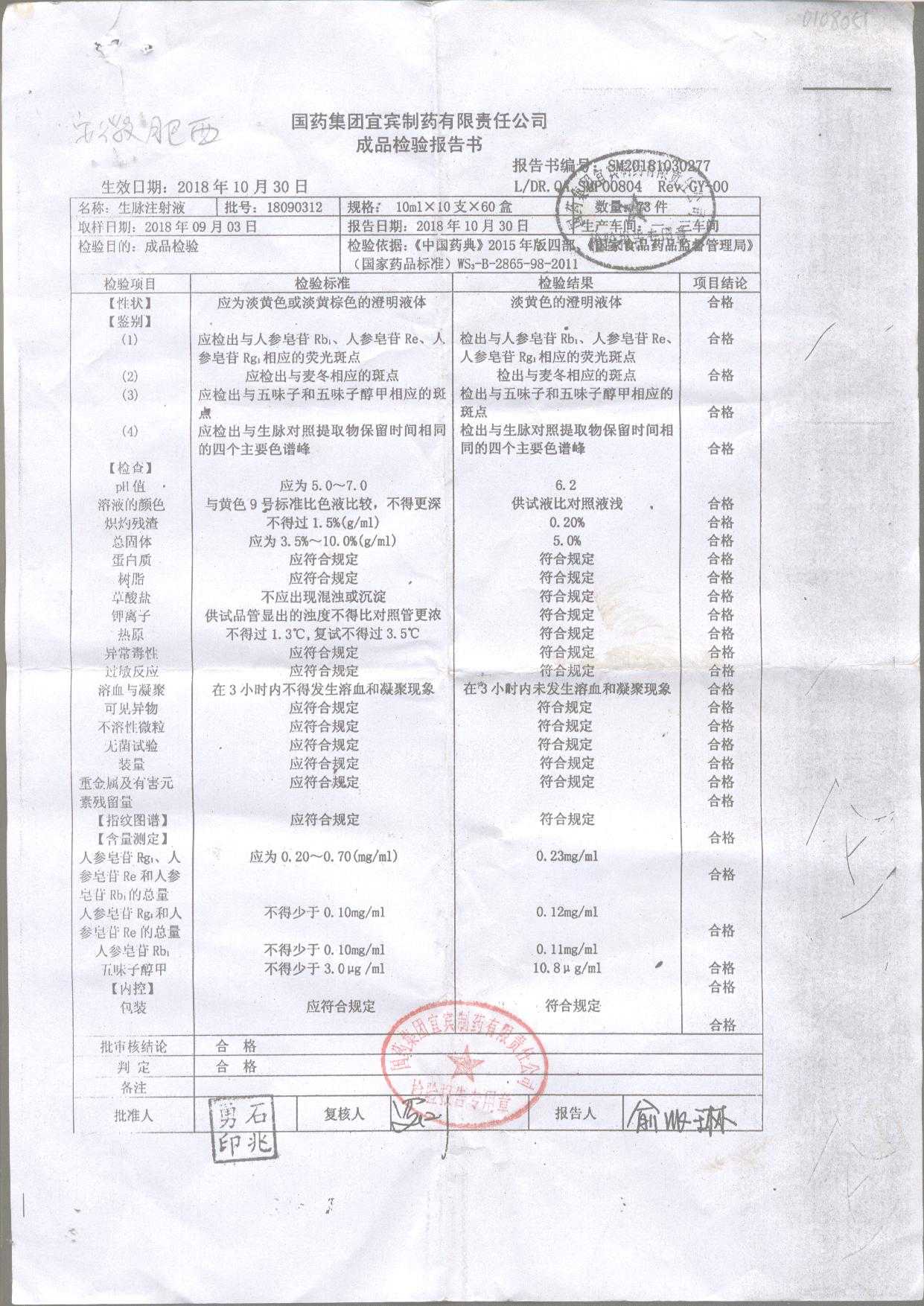 生脉注射液 | 10ml*10支 | 18080221 | 查看详情 |