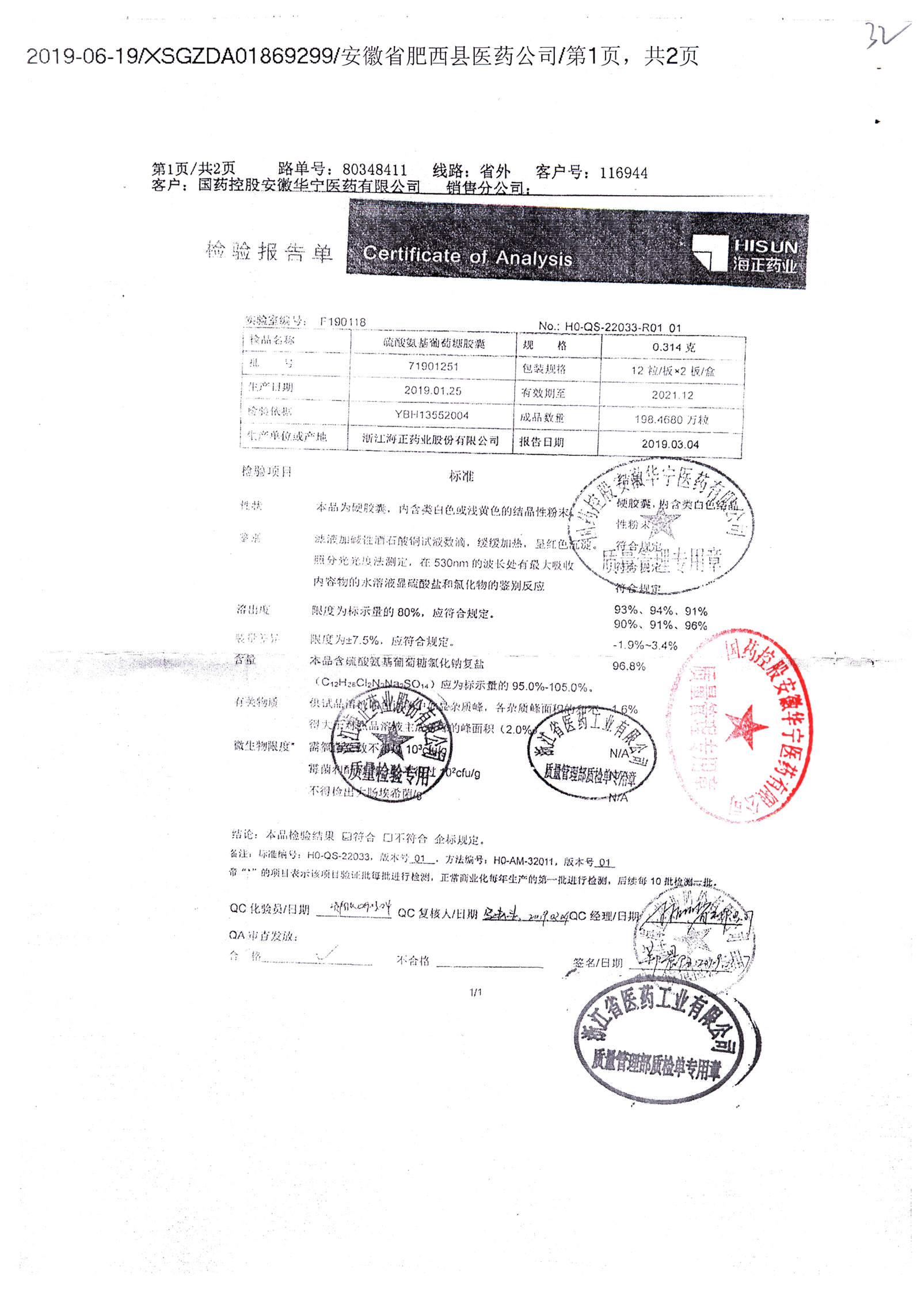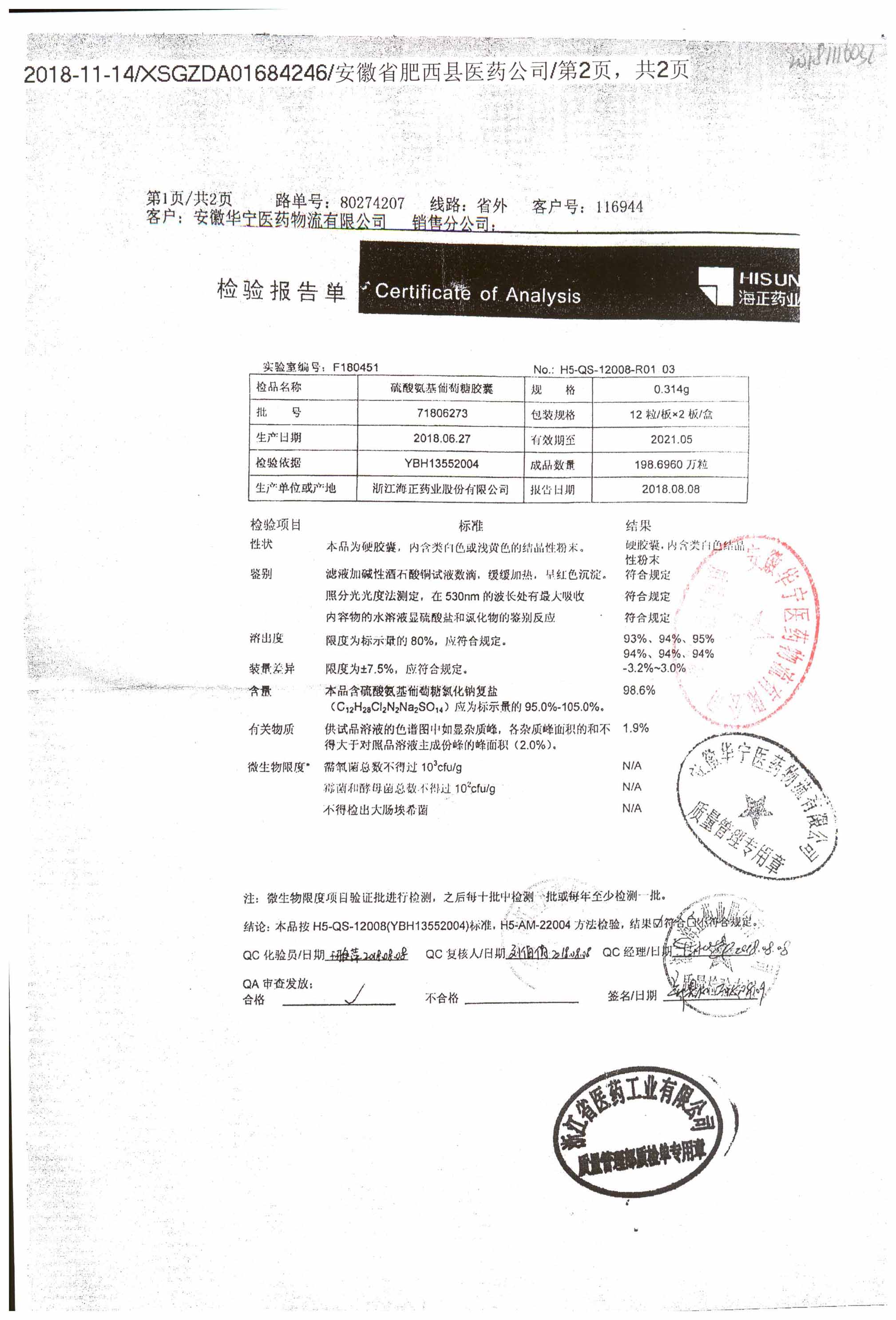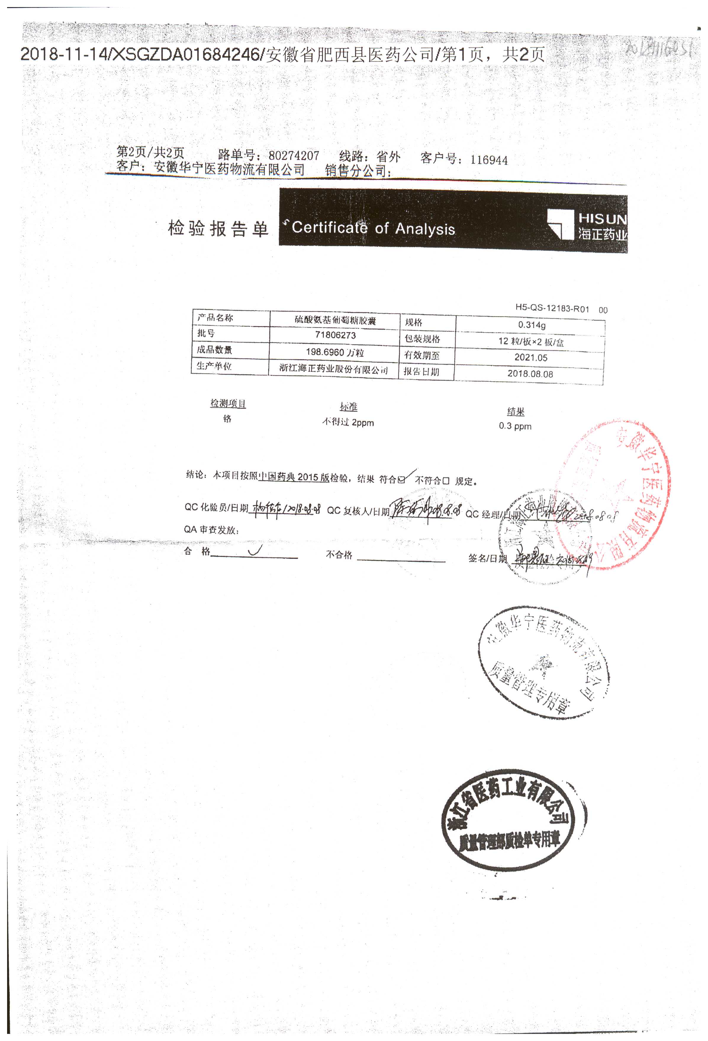 硫酸氨基葡萄糖胶囊 | 0.314g*24粒 | 72407233/2 | 查看详情 |