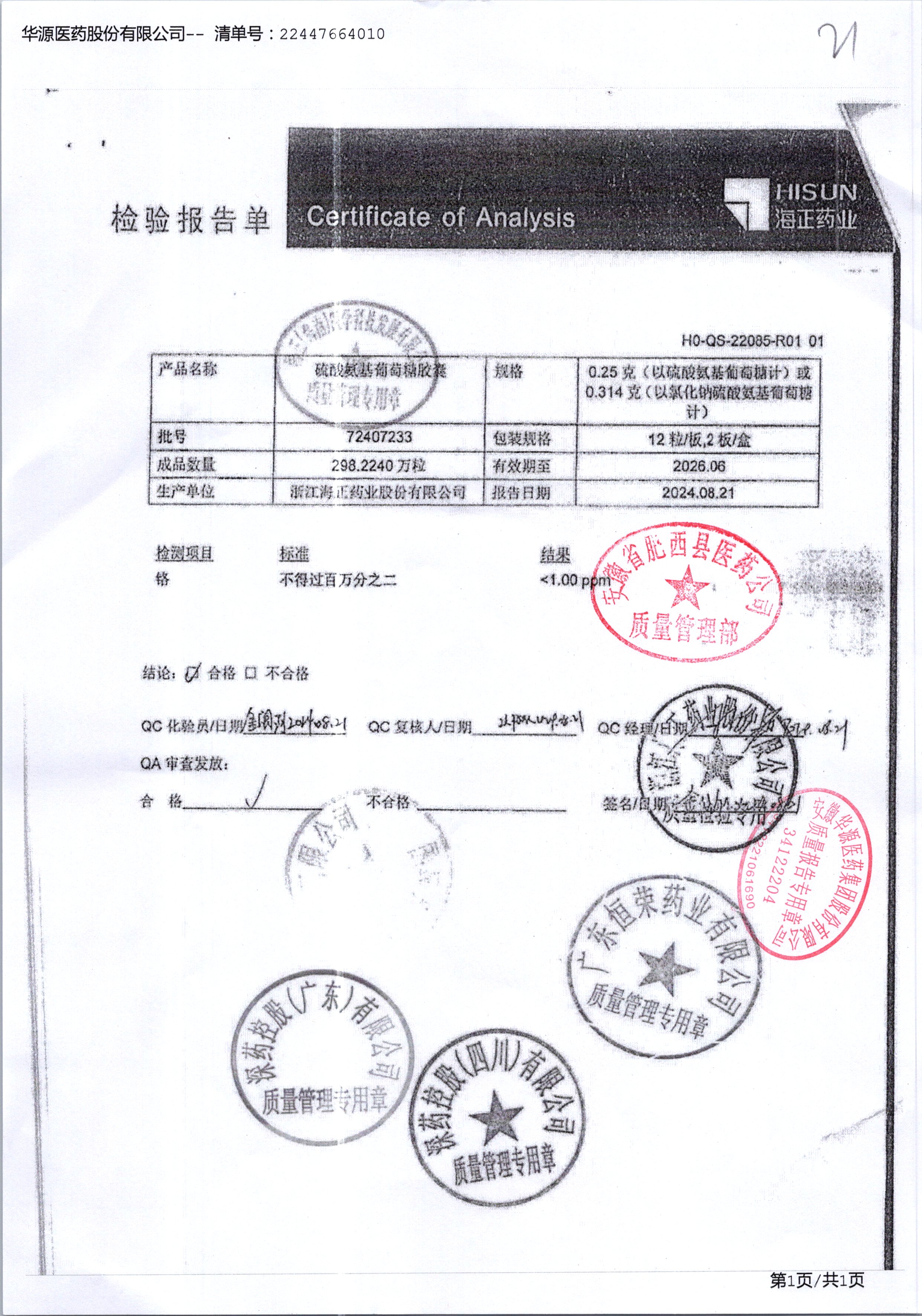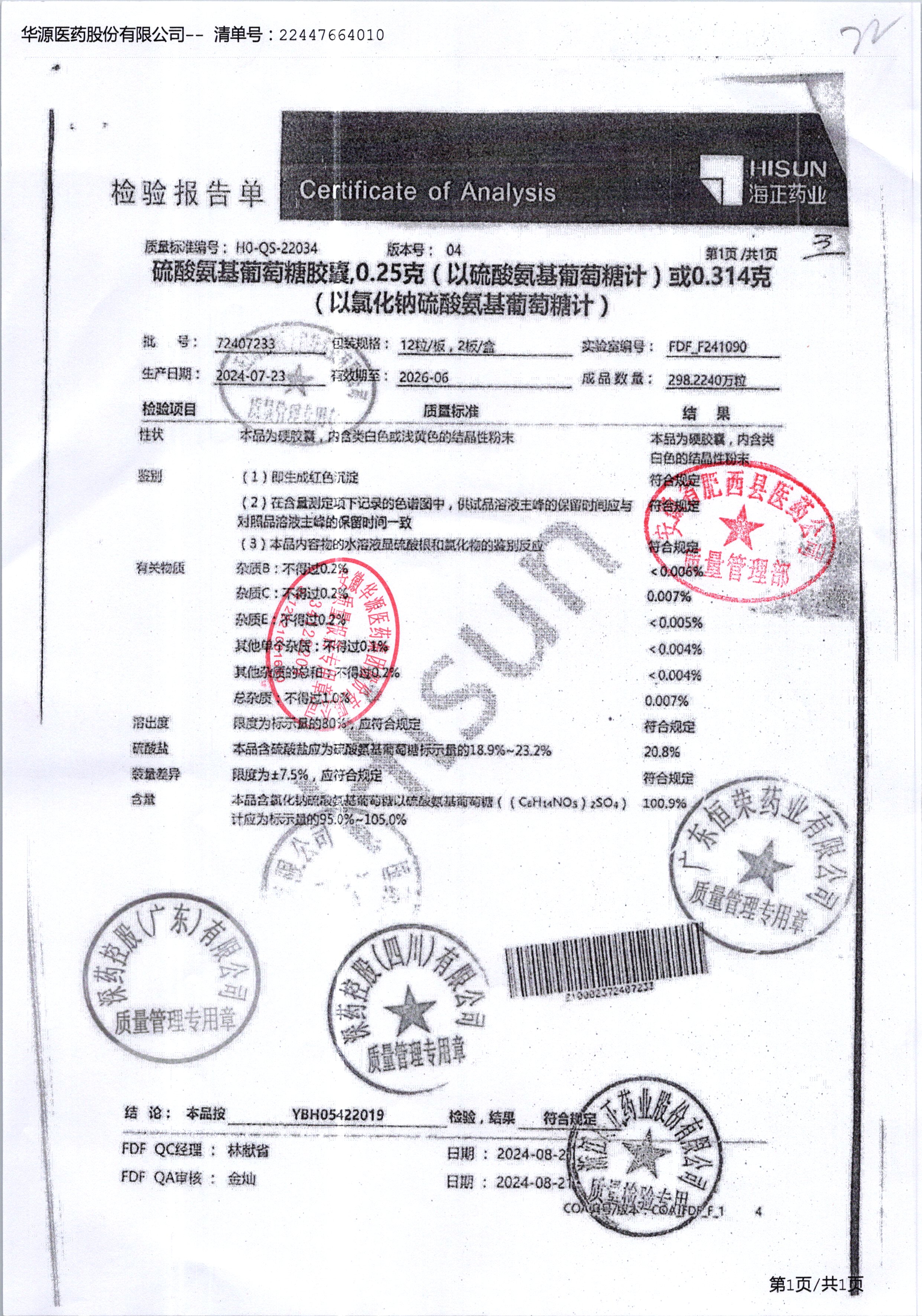 硫酸氨基葡萄糖胶囊 | 0.314g*24粒 | 72407233/1 | 查看详情 |