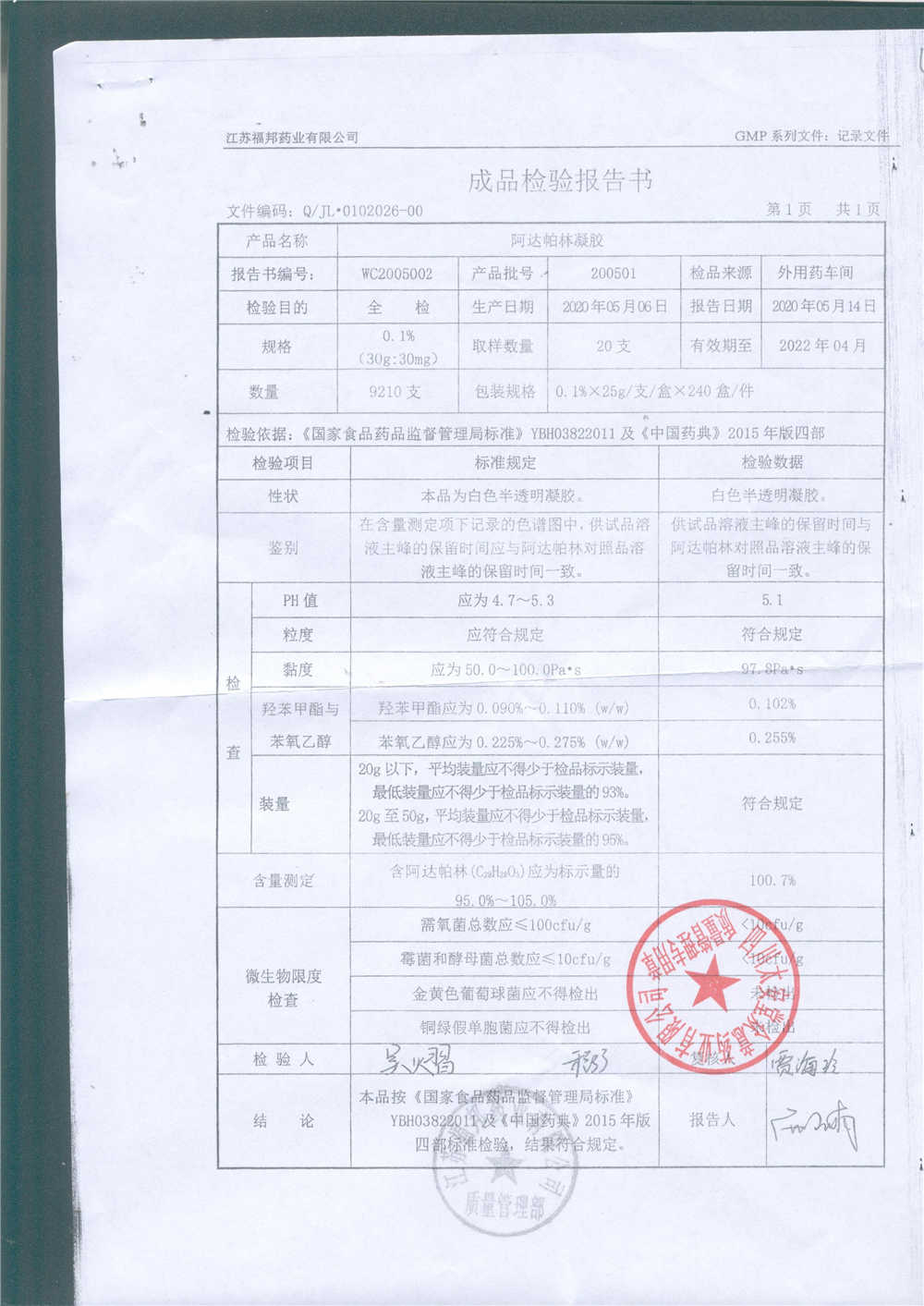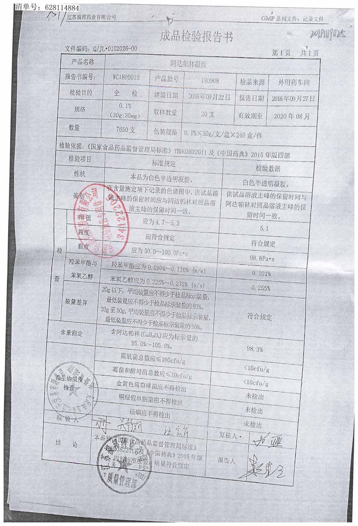 阿达帕林凝胶 | 30g:30mg | 181024 | 查看详情 |
