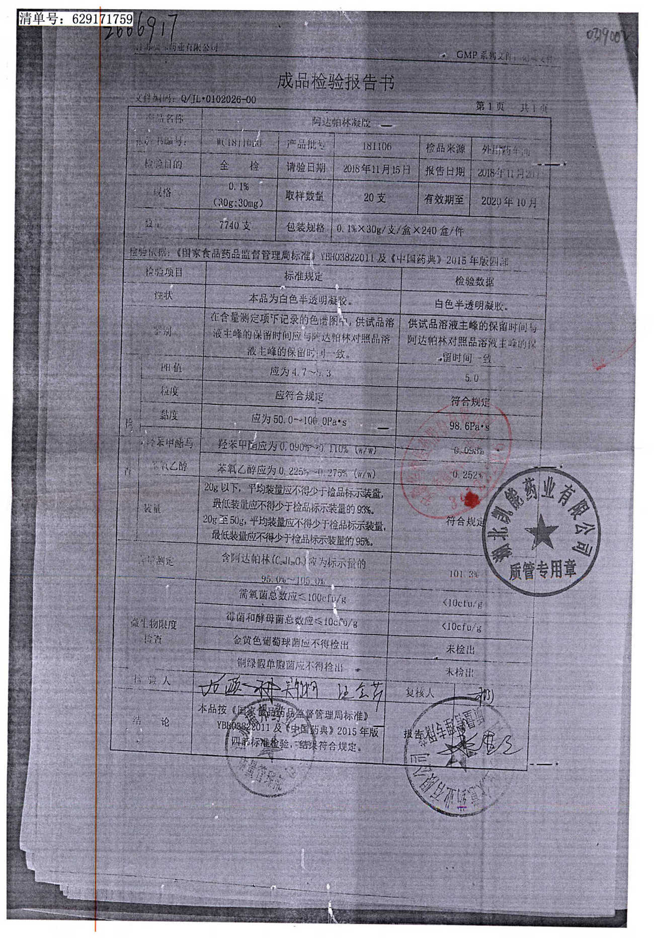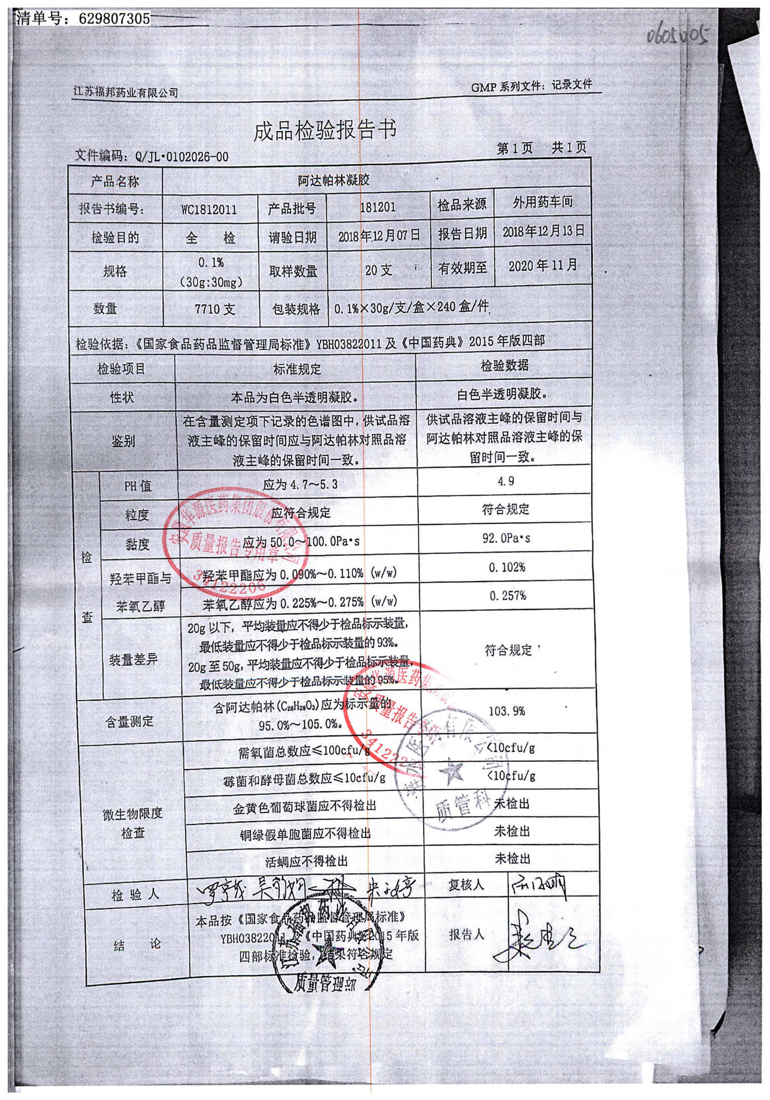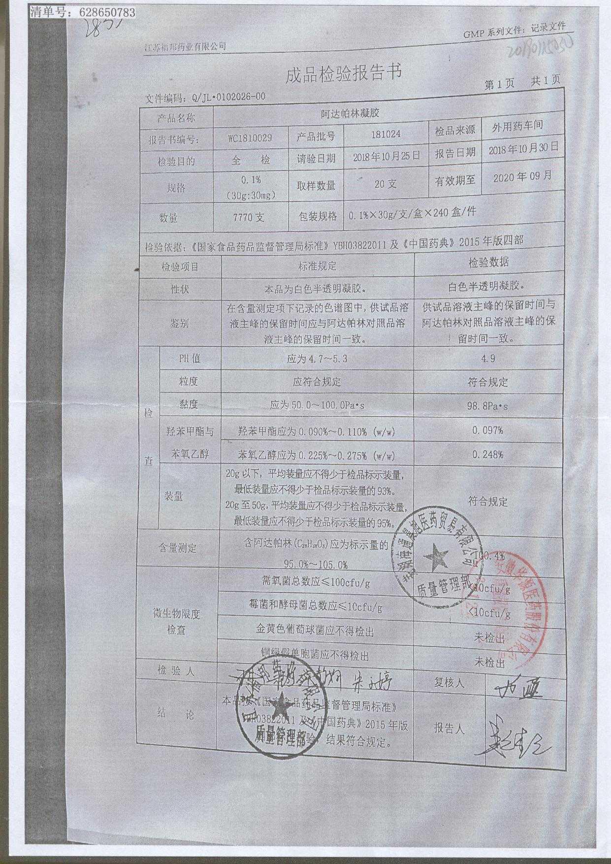 阿达帕林凝胶 | 30g:30mg | 181106 | 查看详情 |