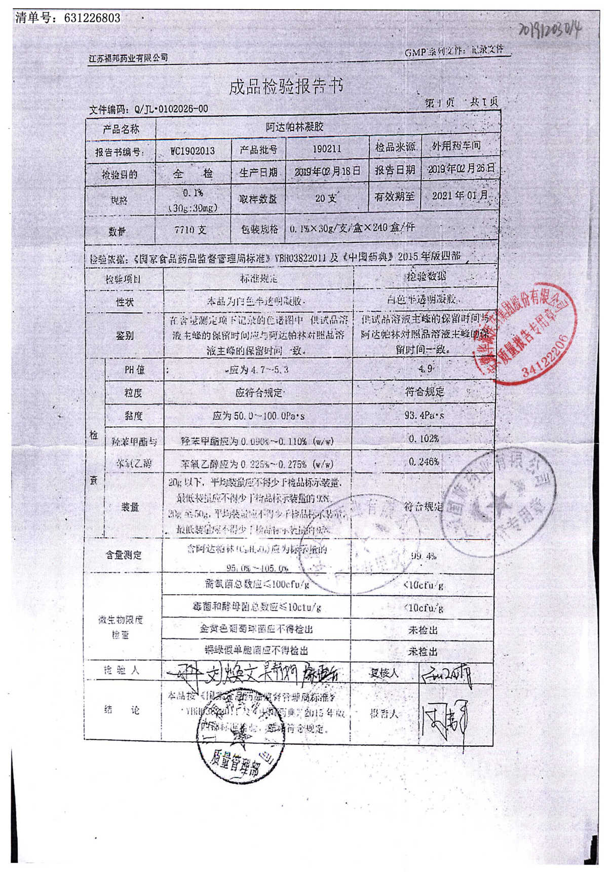 阿达帕林凝胶 | 30g:30mg | 190211 | 查看详情 |