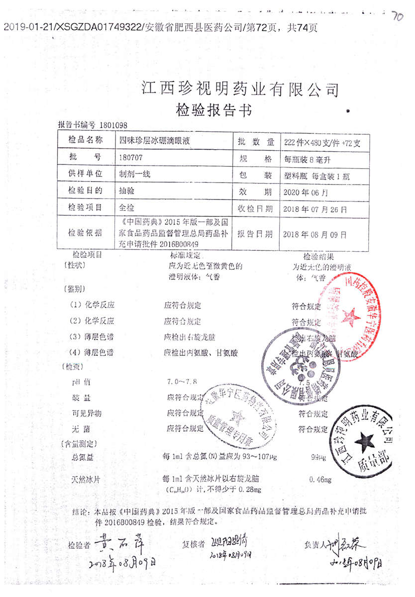 四味珍层冰硼滴眼液 | 8ml | 180707 | 查看详情 |