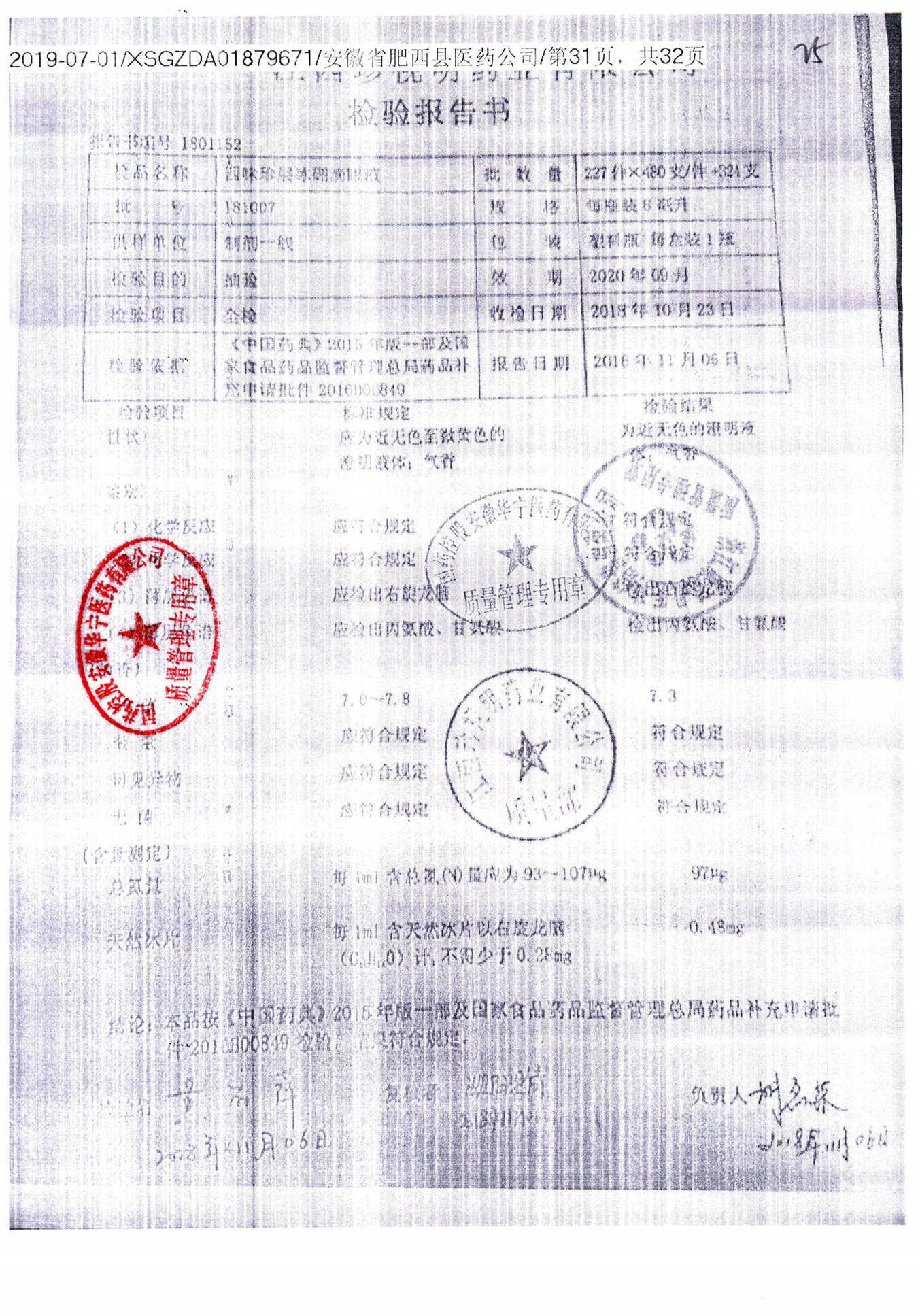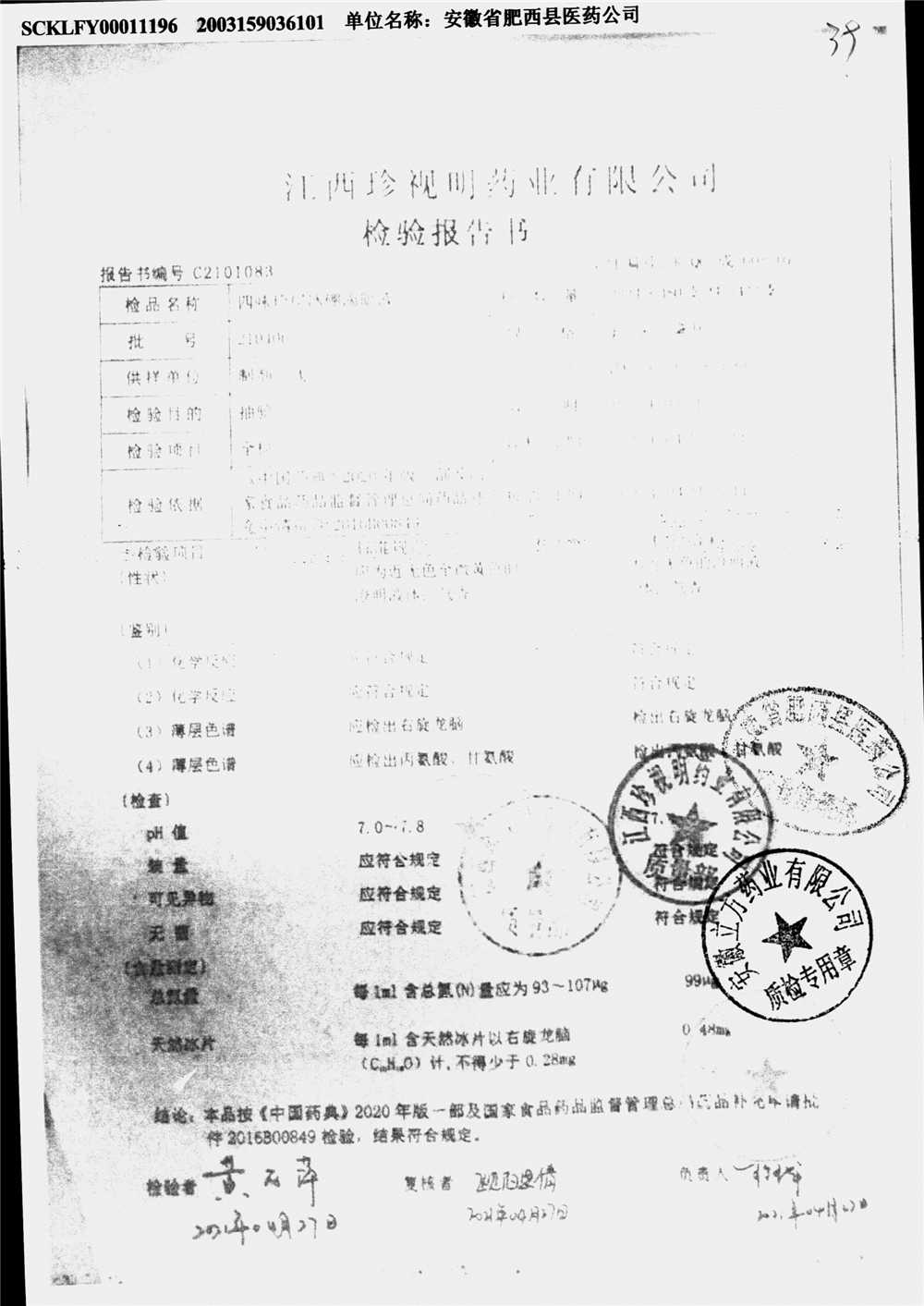 名称 | 规格 | 批号 | 药检报告 |