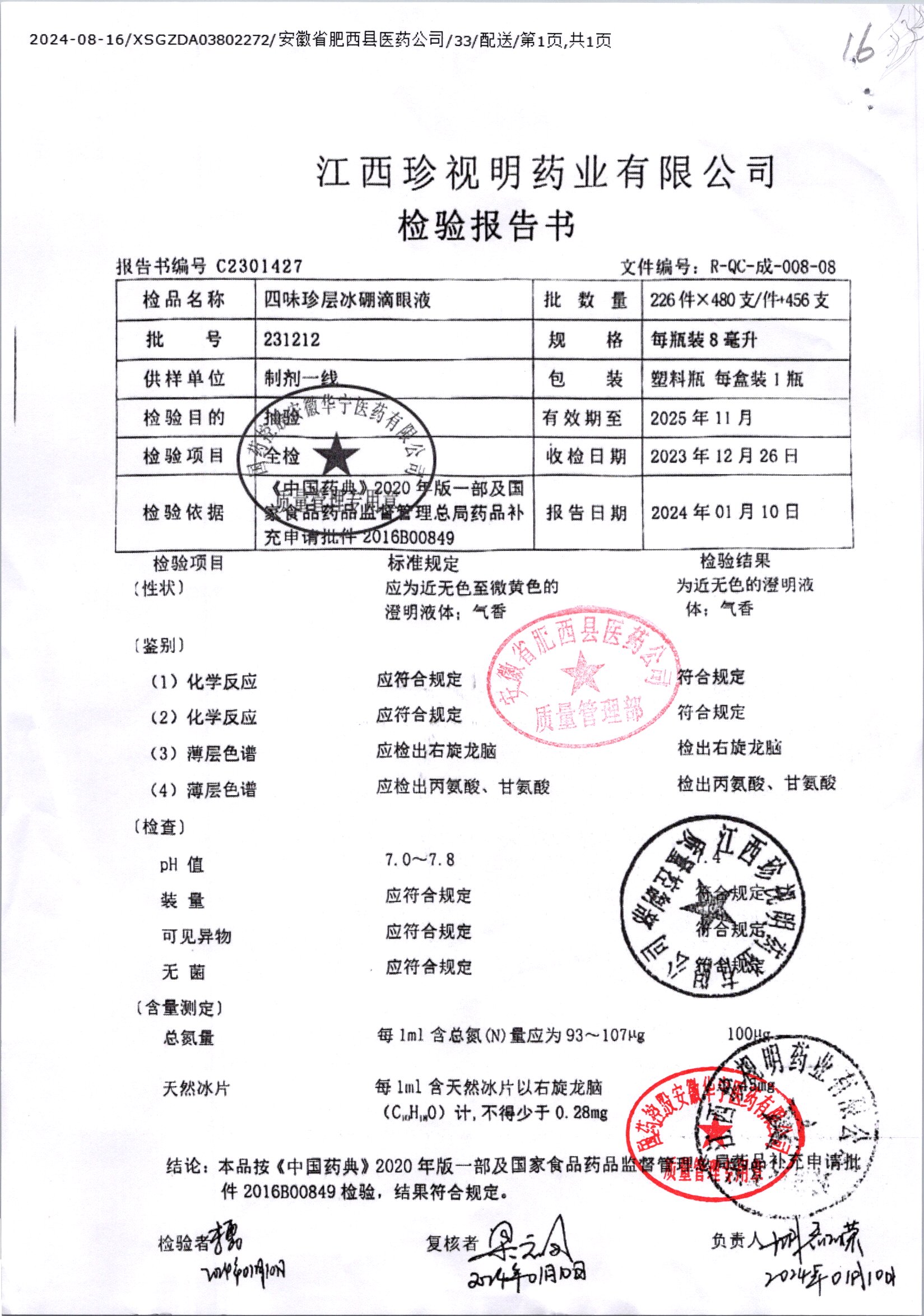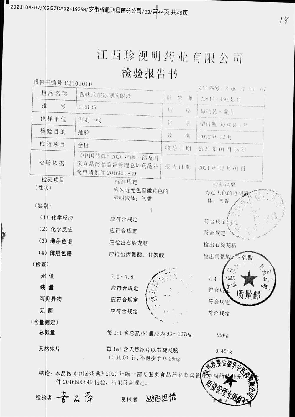 四味珍层冰硼滴眼液 | 8ml | 210105 | 查看详情 |