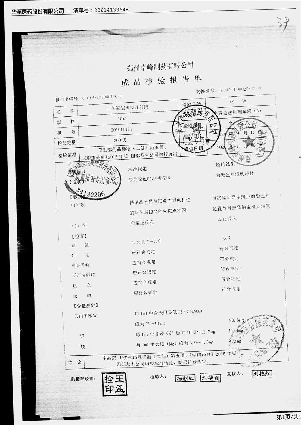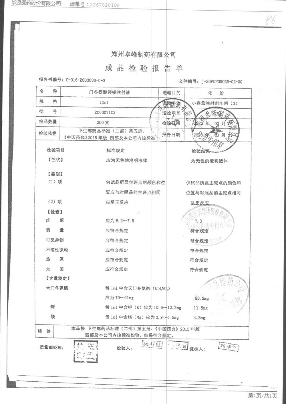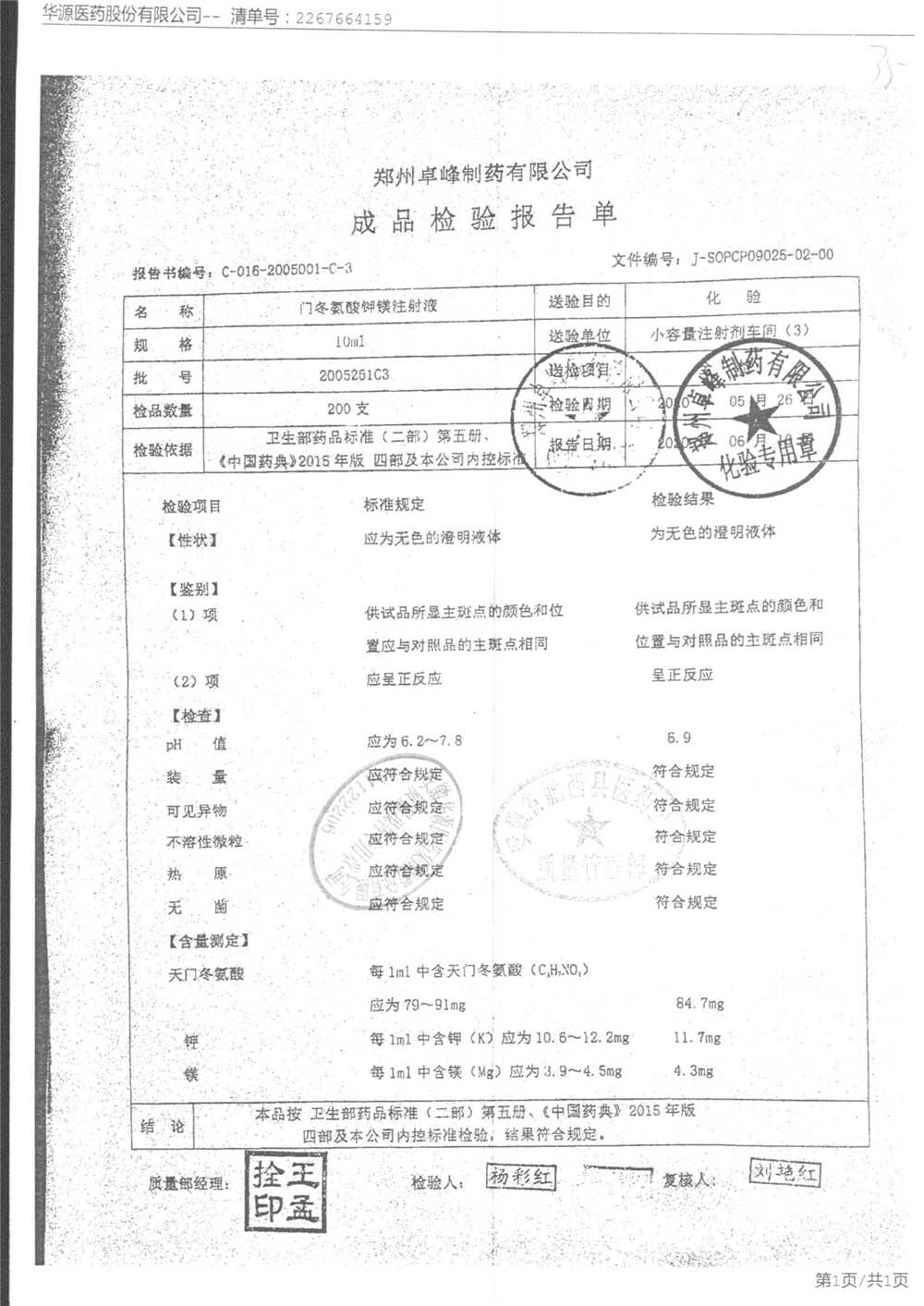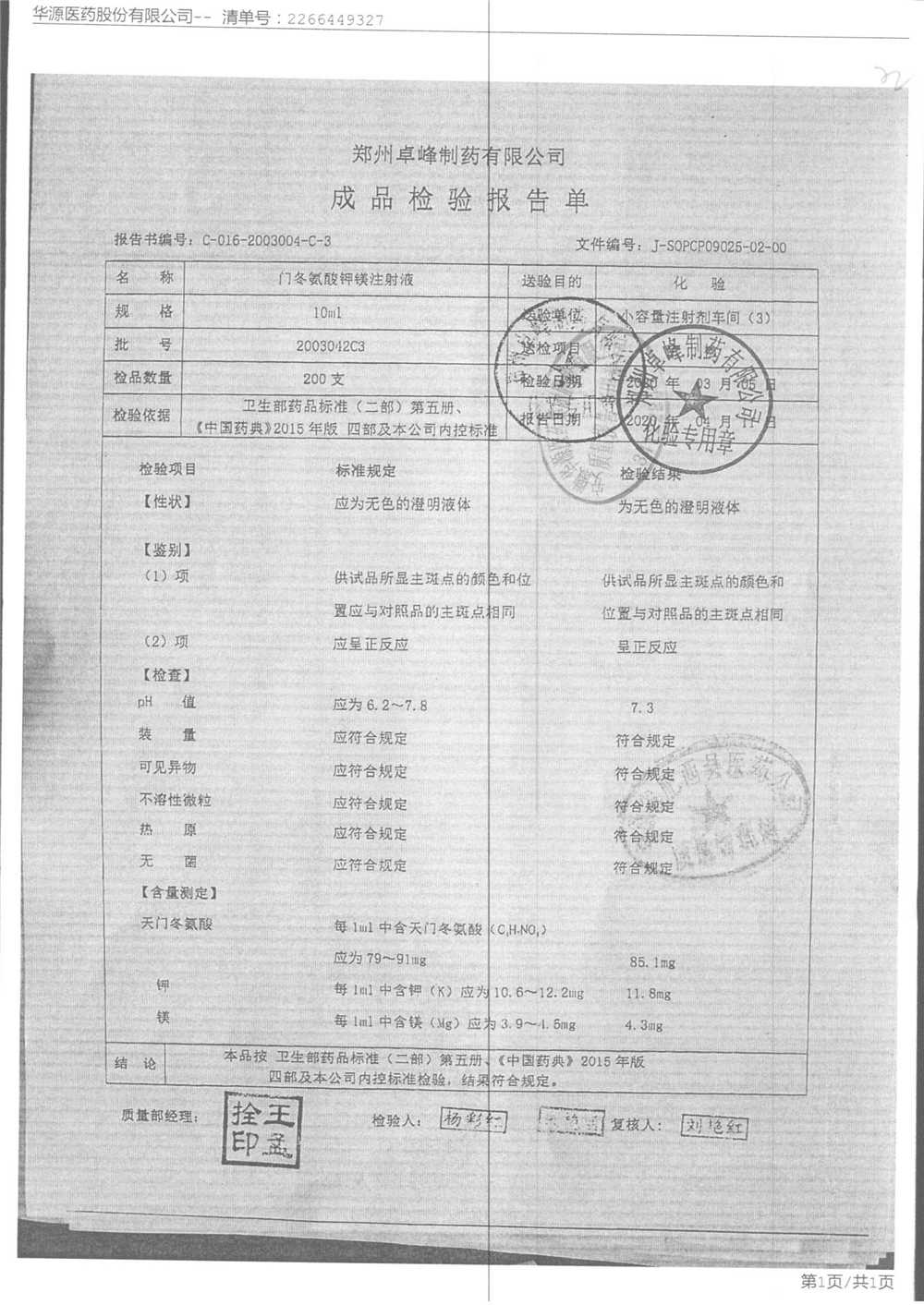 门冬氨酸钾镁注射液 | 10ml | 2010161C1 | 查看详情 |