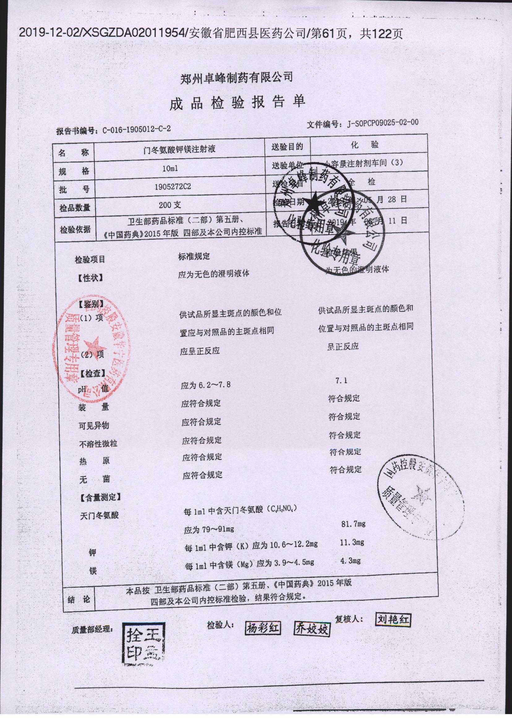 门冬氨酸钾镁注射液 | 10ml | 1912111C2 | 查看详情 |