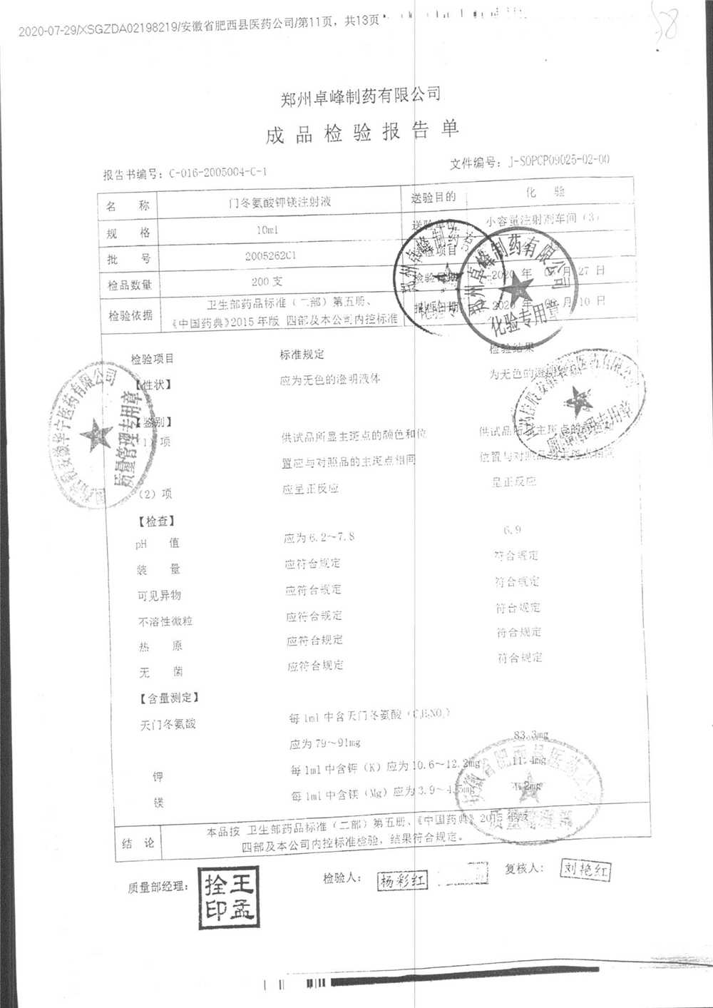 门冬氨酸钾镁注射液 | 10ml | 2006021C2 | 查看详情 |