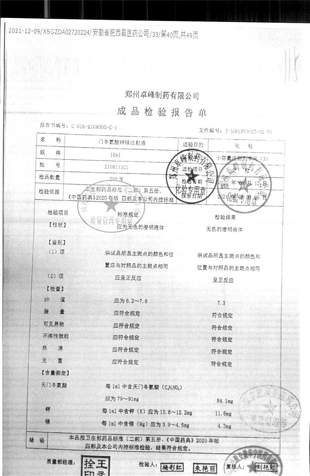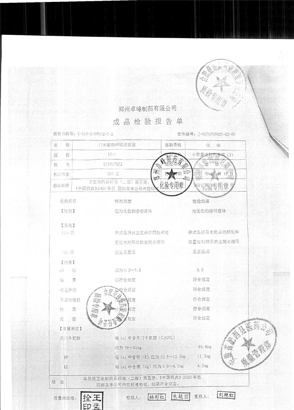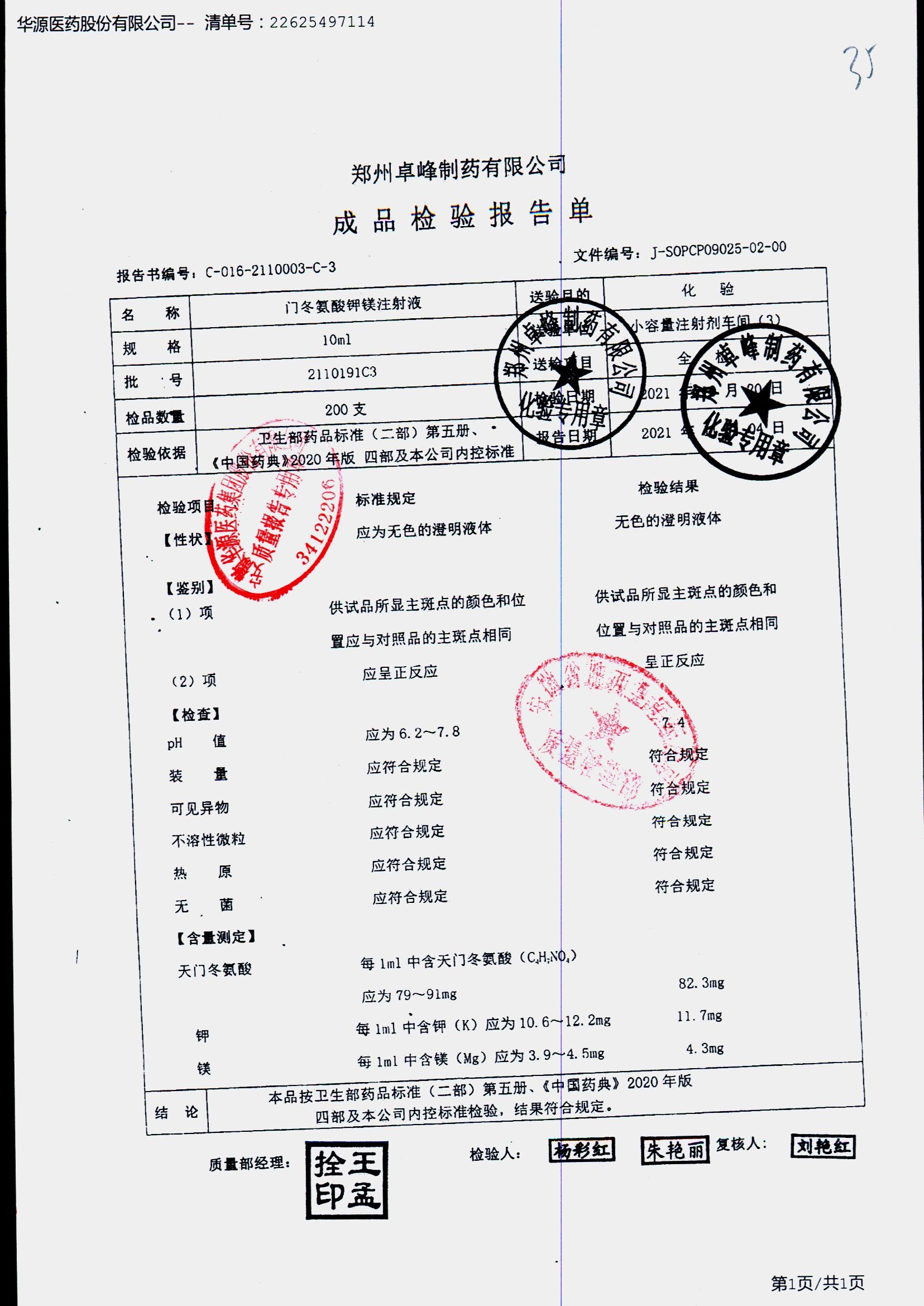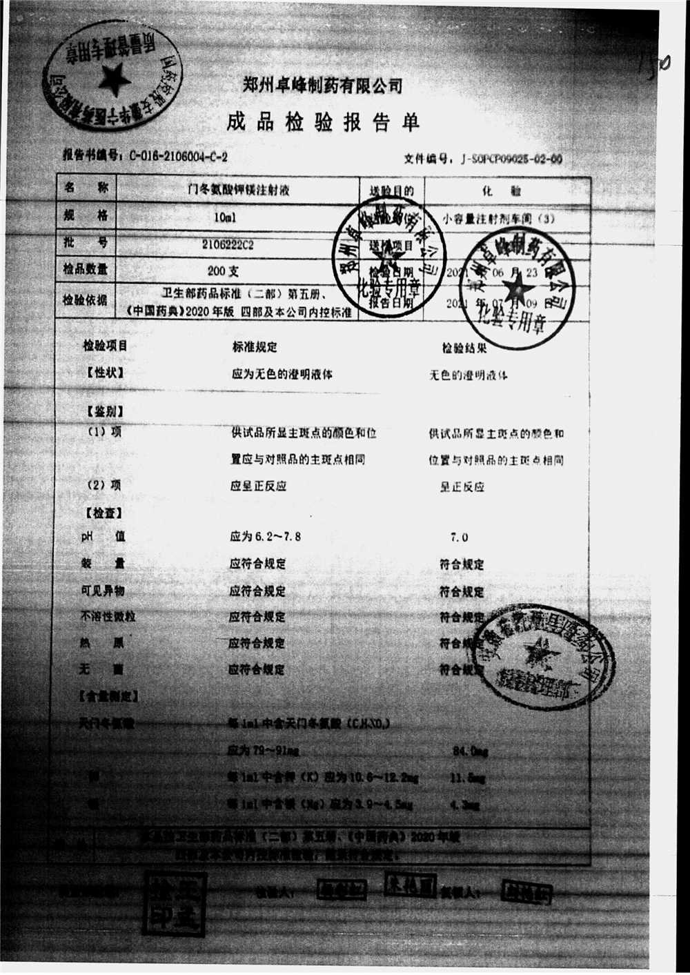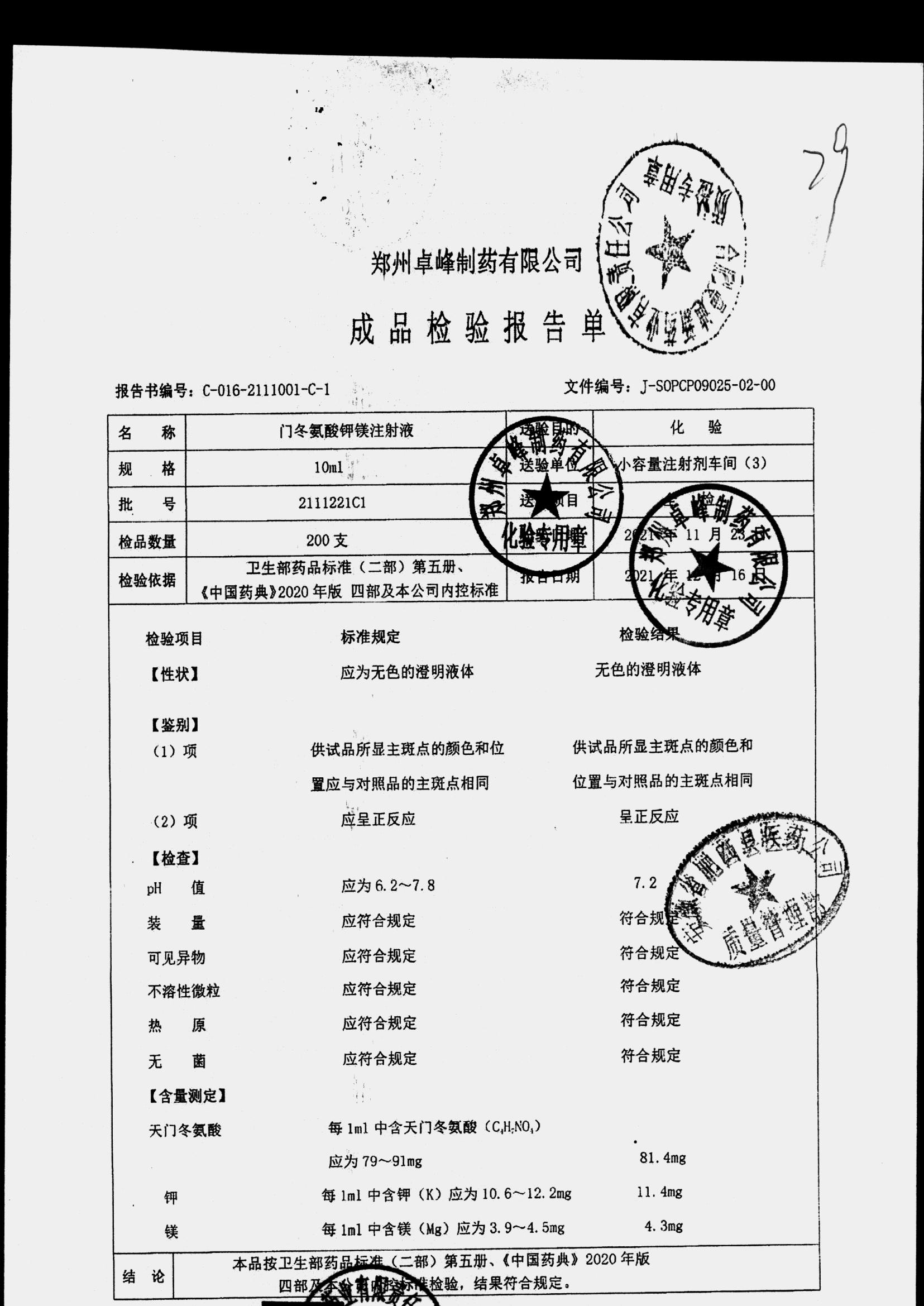 门冬氨酸钾镁注射液 | 10ml | 2111221C1 | 查看详情 |