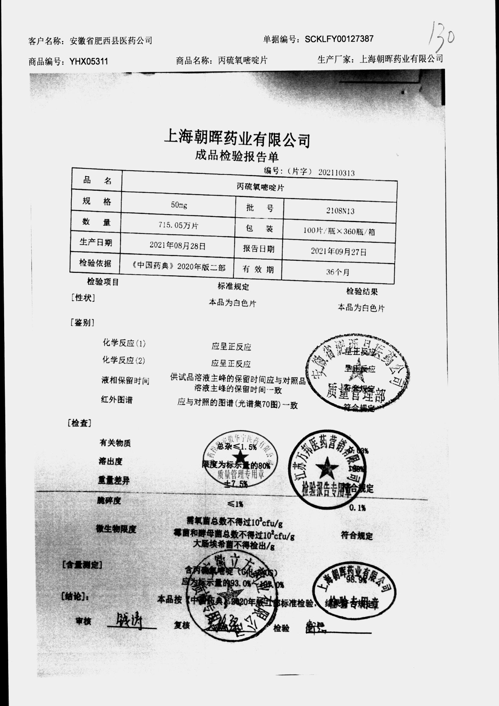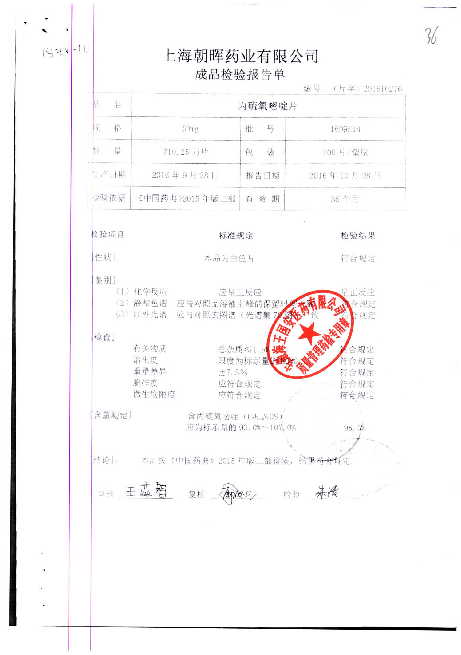 丙硫氧嘧啶片 | 50mg | 2108N13 | 查看详情 |