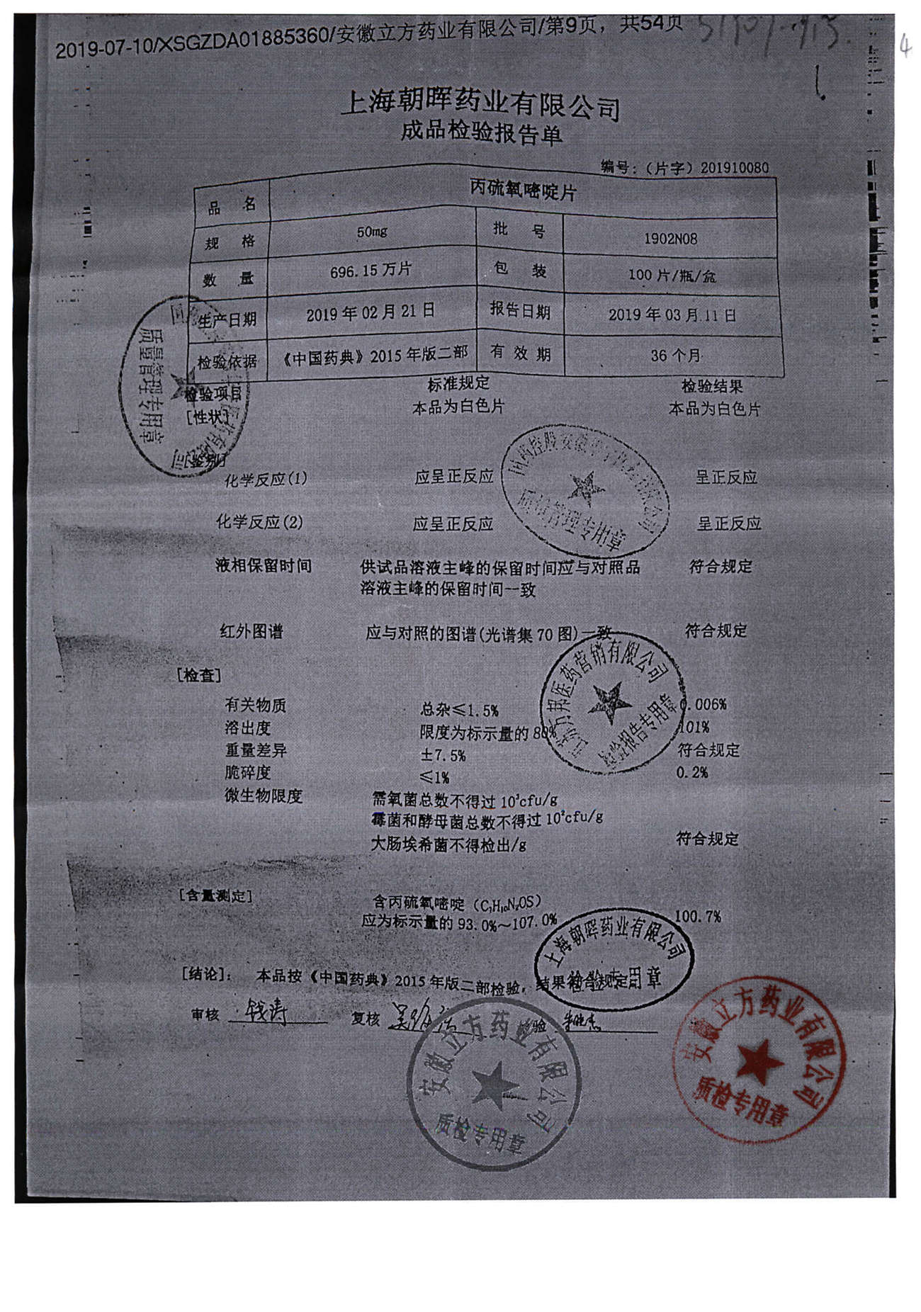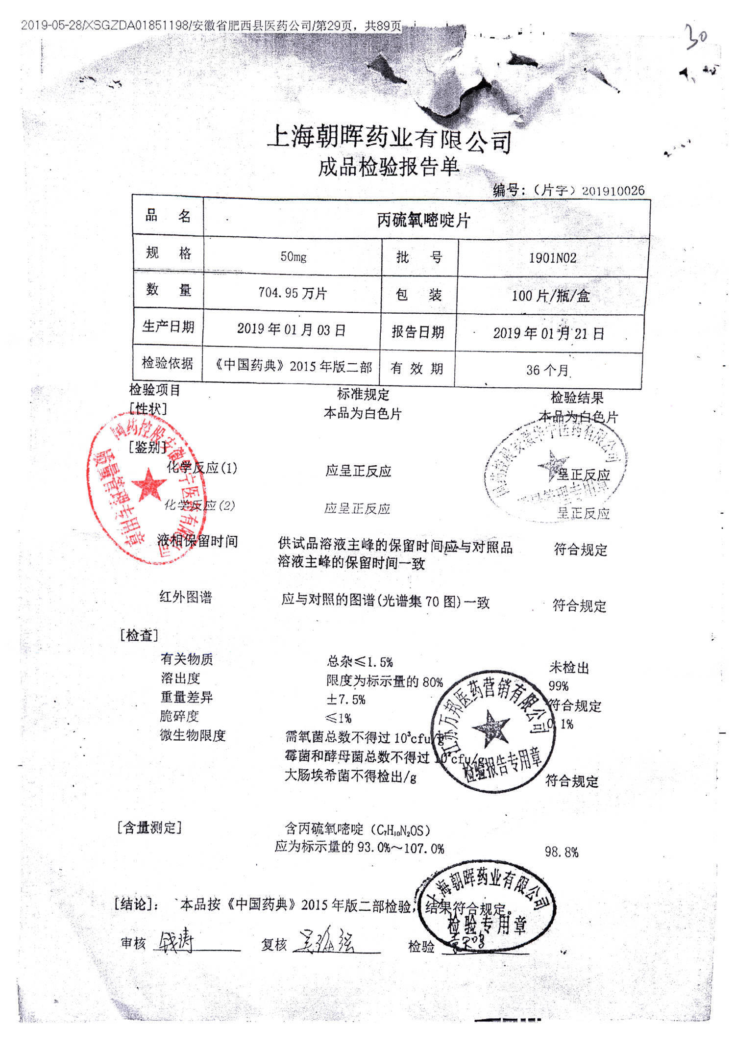 丙硫氧嘧啶片 | 50mg | 1901N02 | 查看详情 |