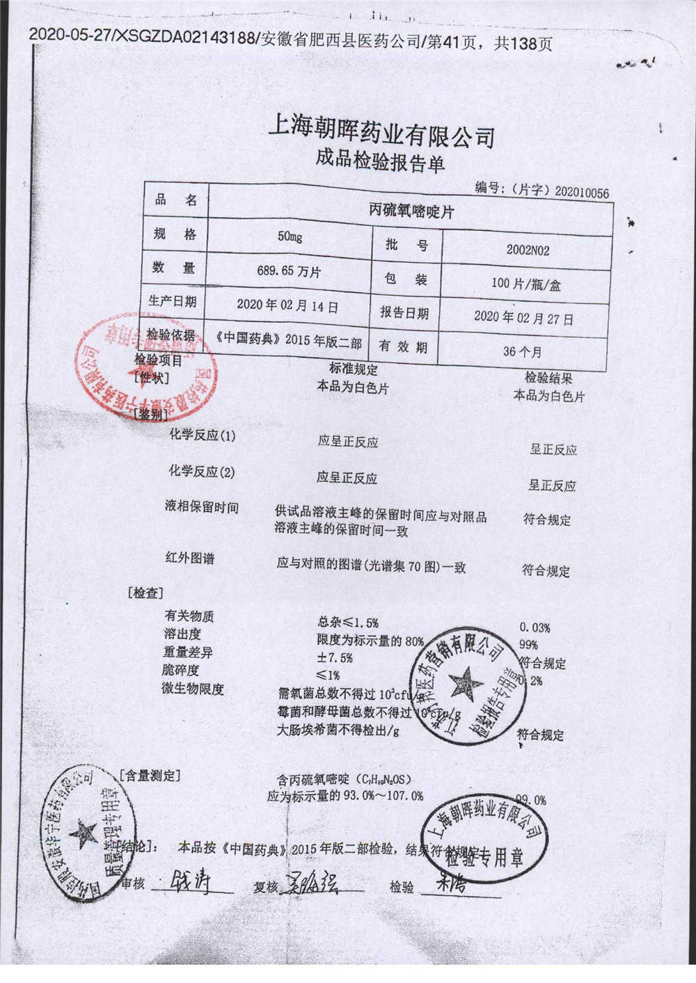 丙硫氧嘧啶片 | 50mg | 2002N02 | 查看详情 |